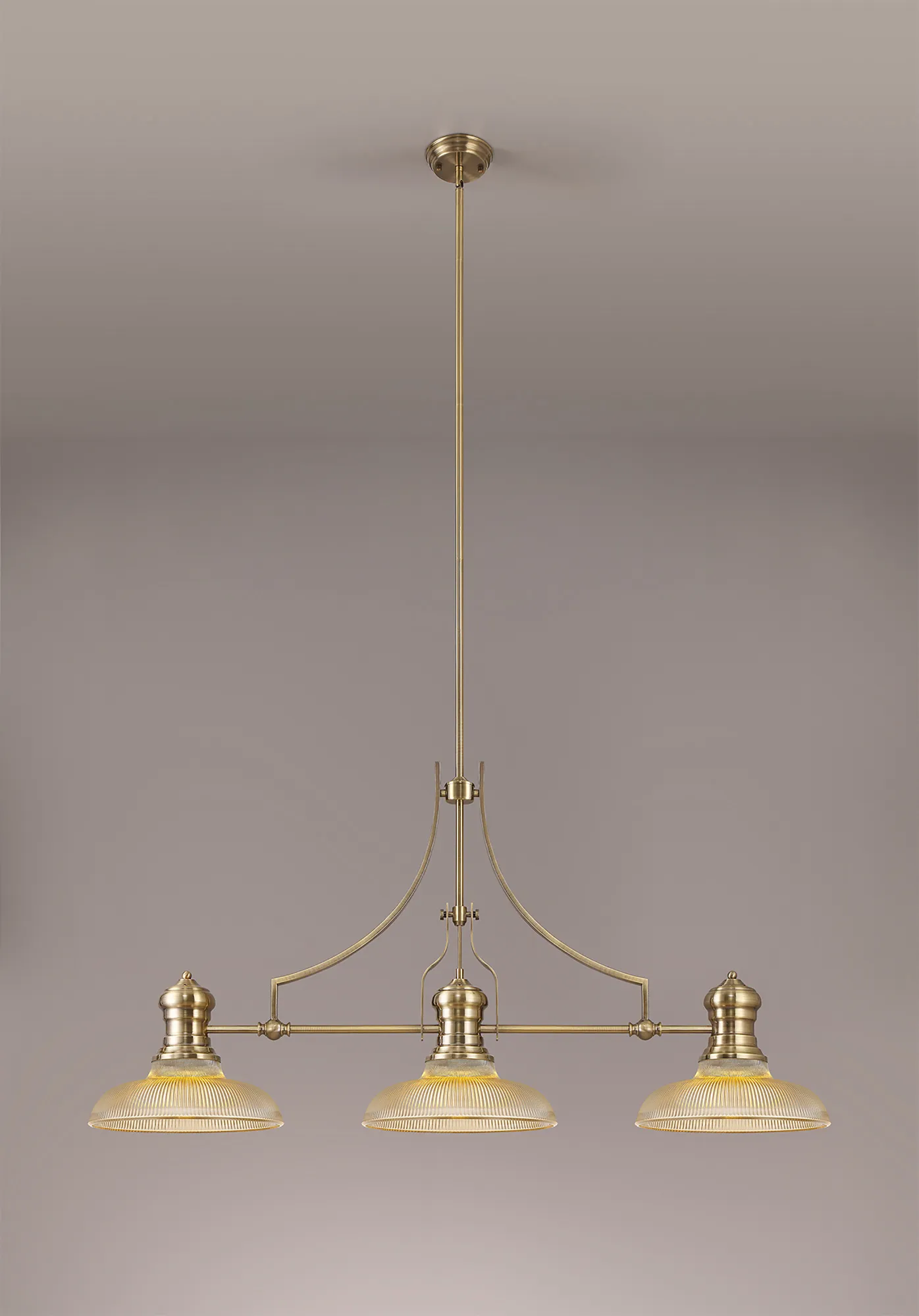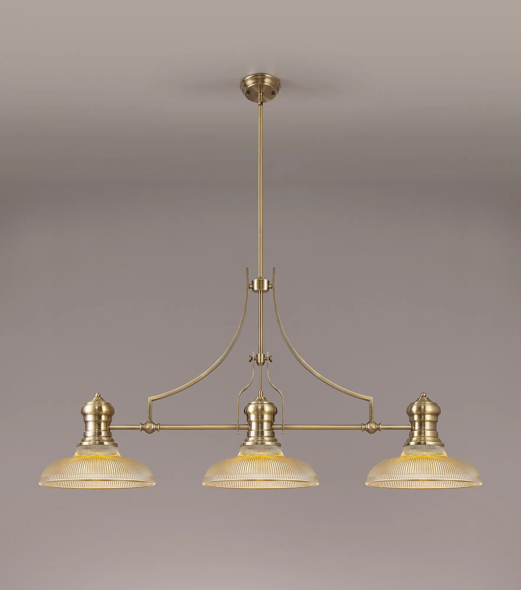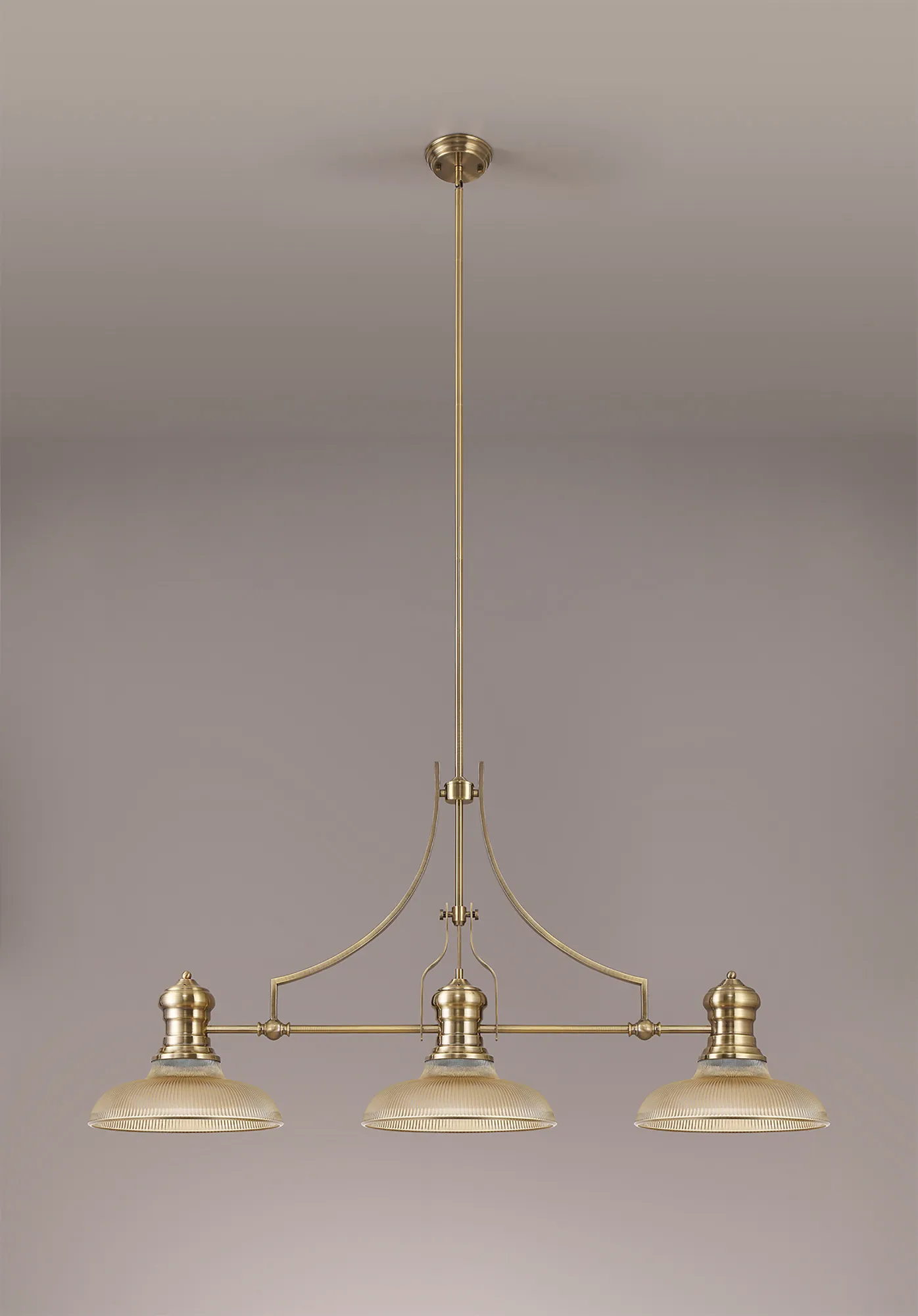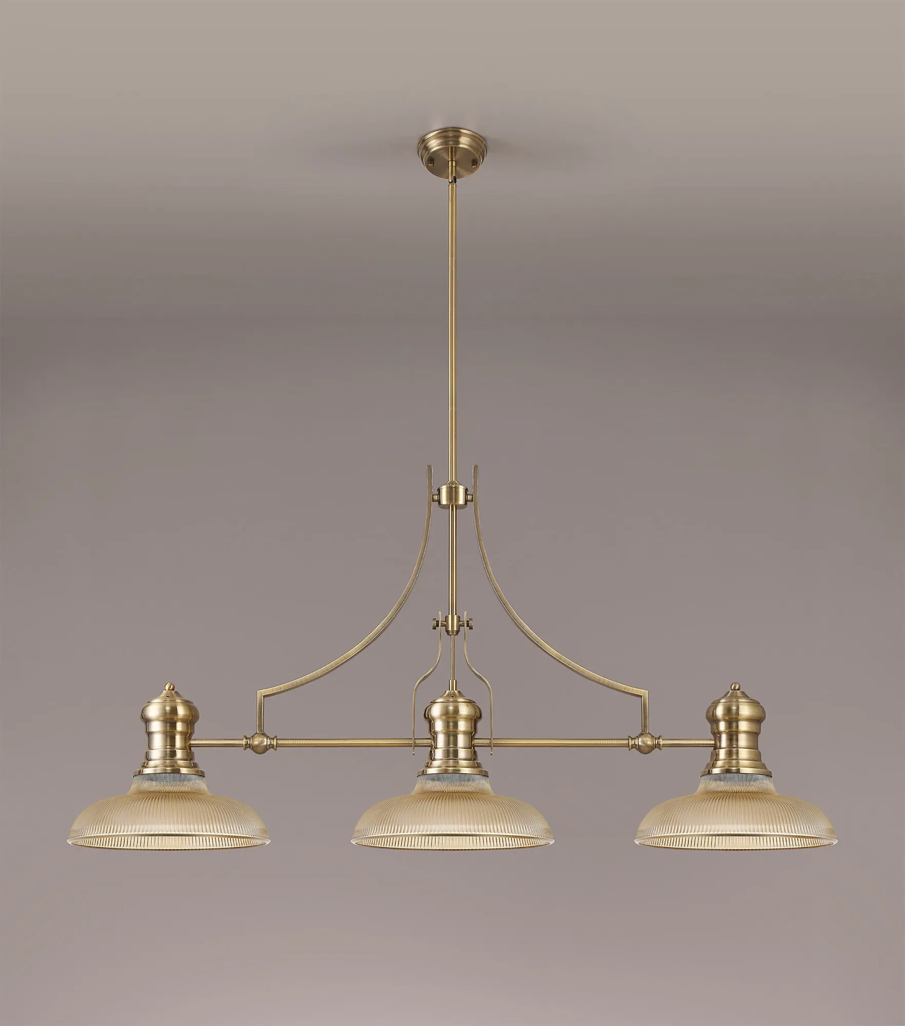 Snowdon (FRAME ONLY) Linear Multi Height Pendant, 3 x E27, Antique Brass