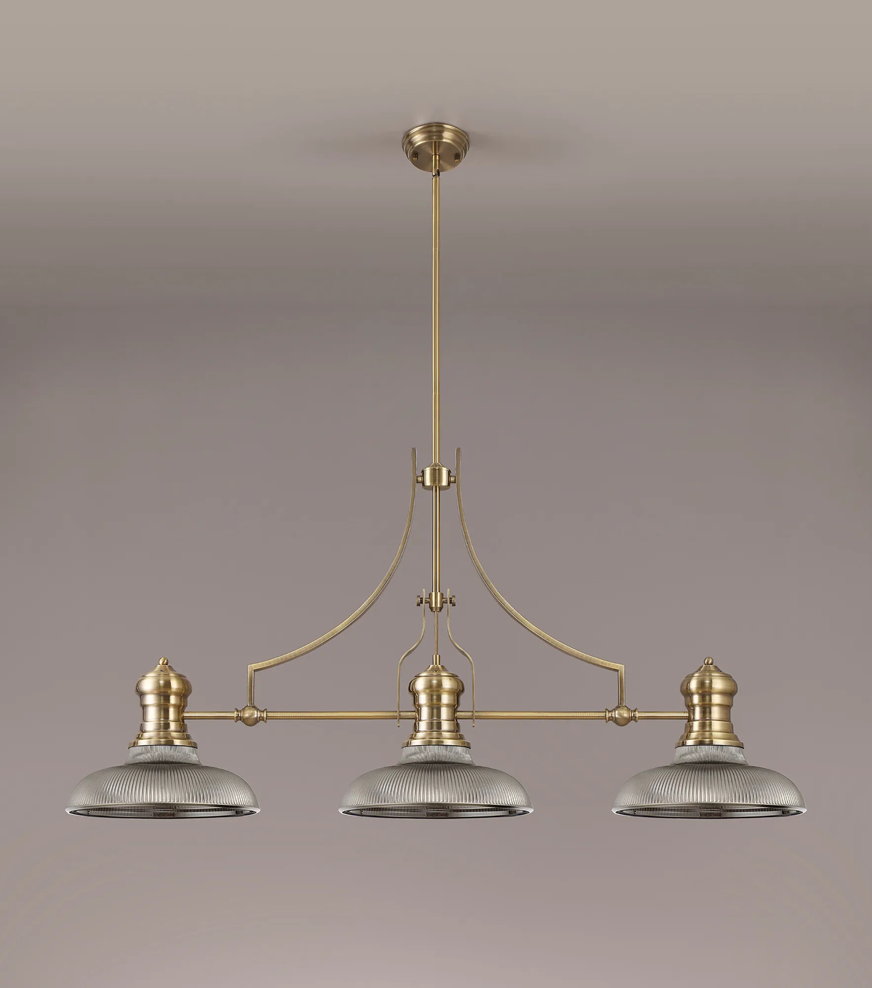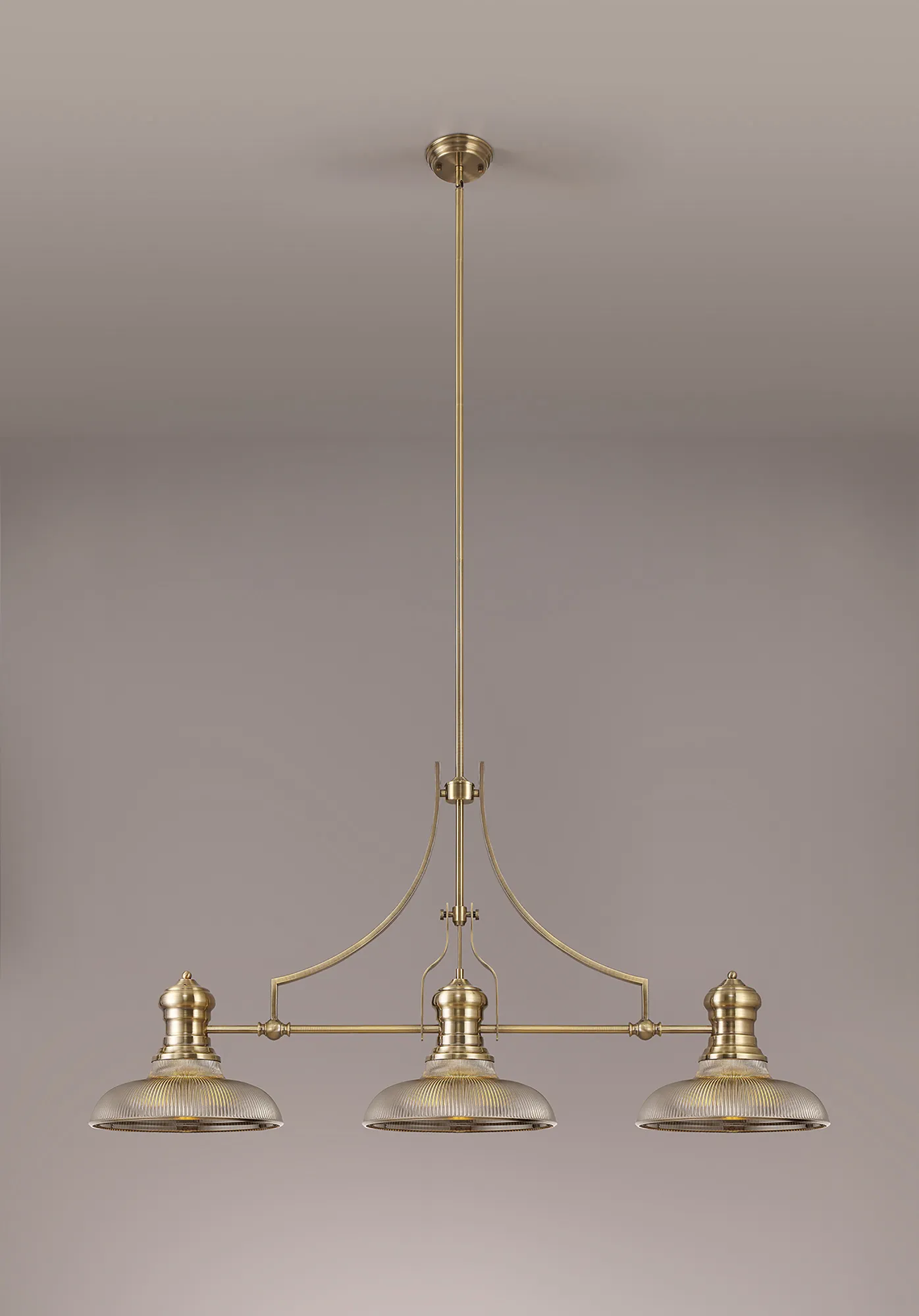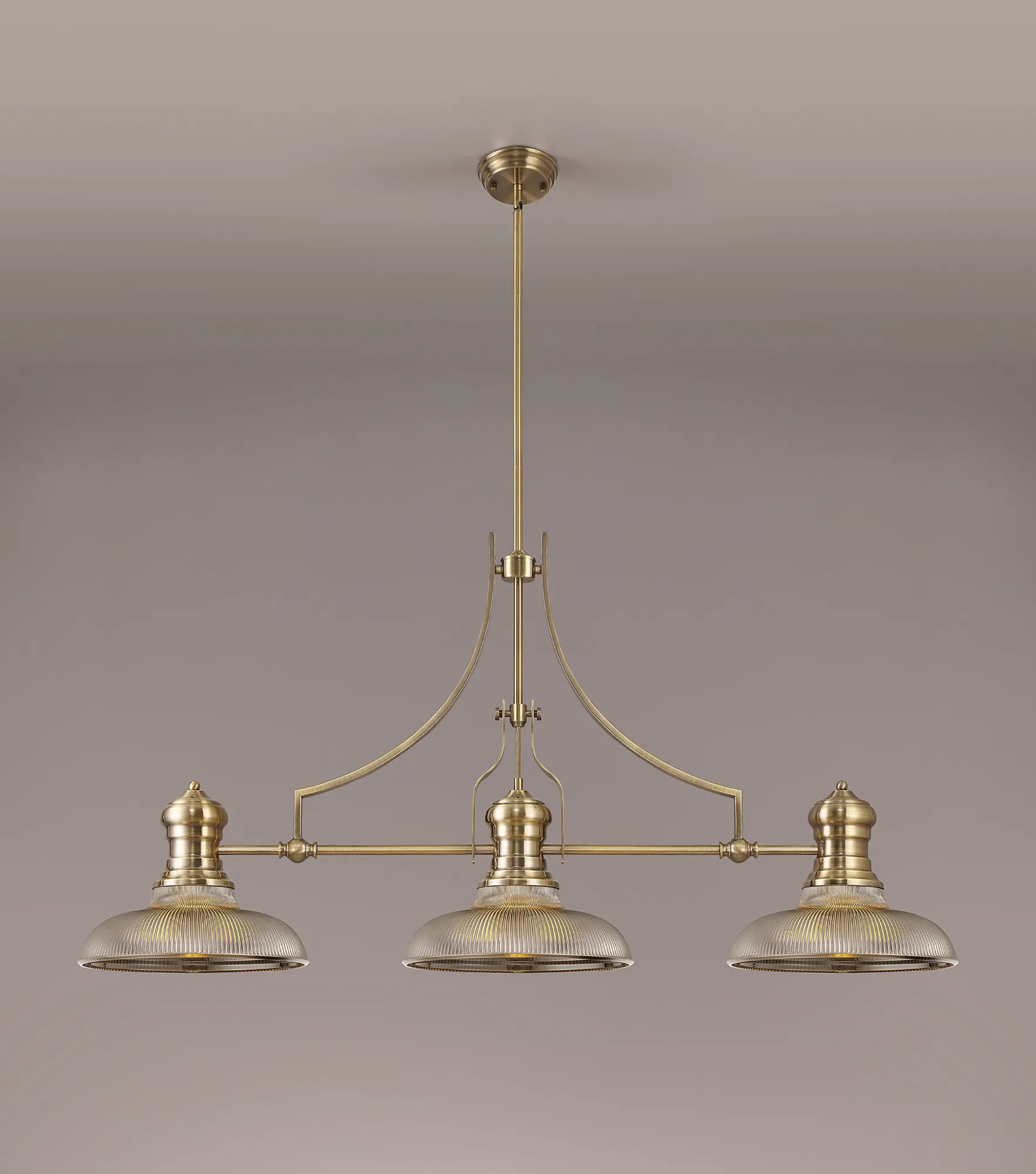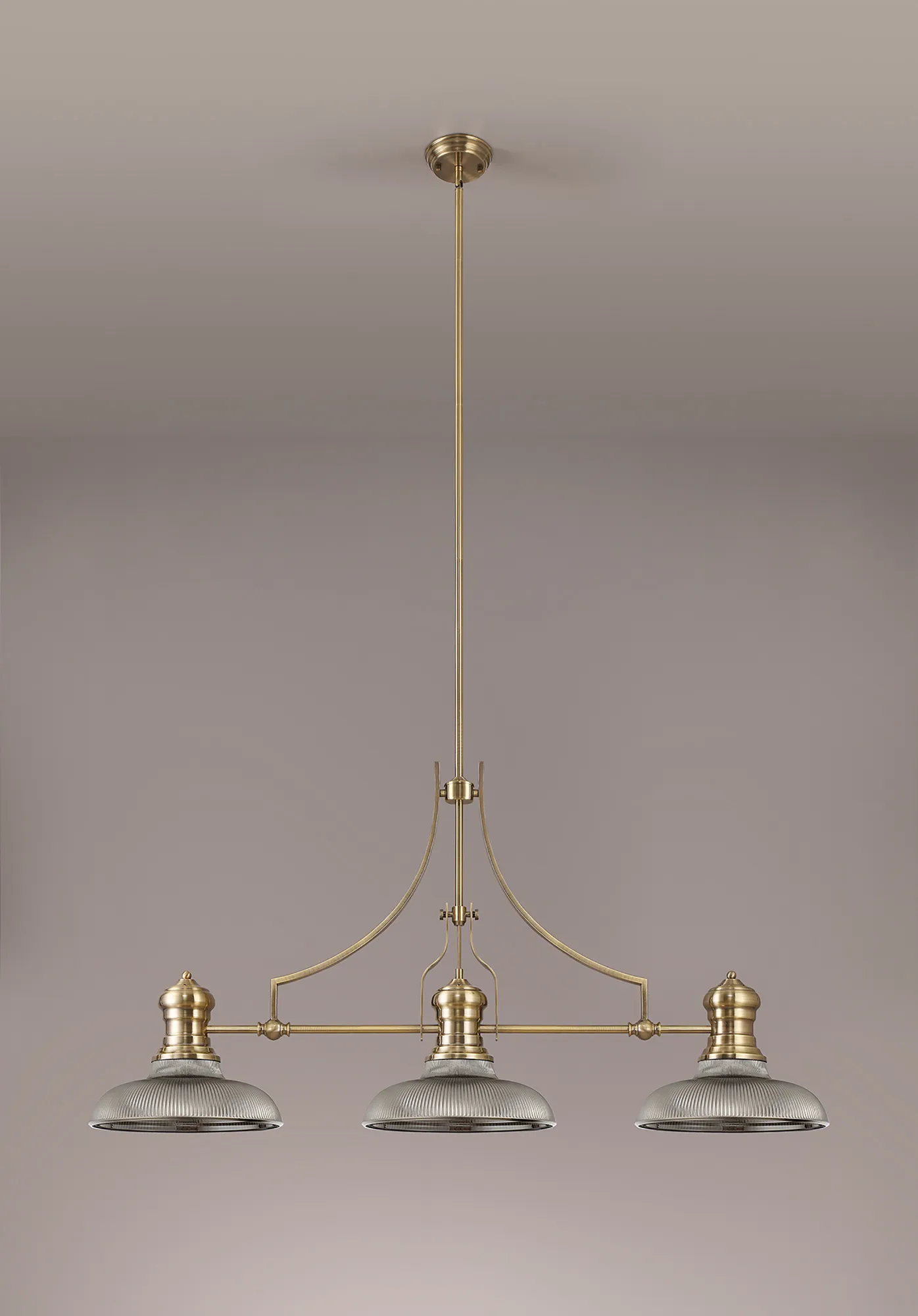 Snowdon (FRAME ONLY) Linear Multi Height Pendant, 3 x E27, Antique Brass