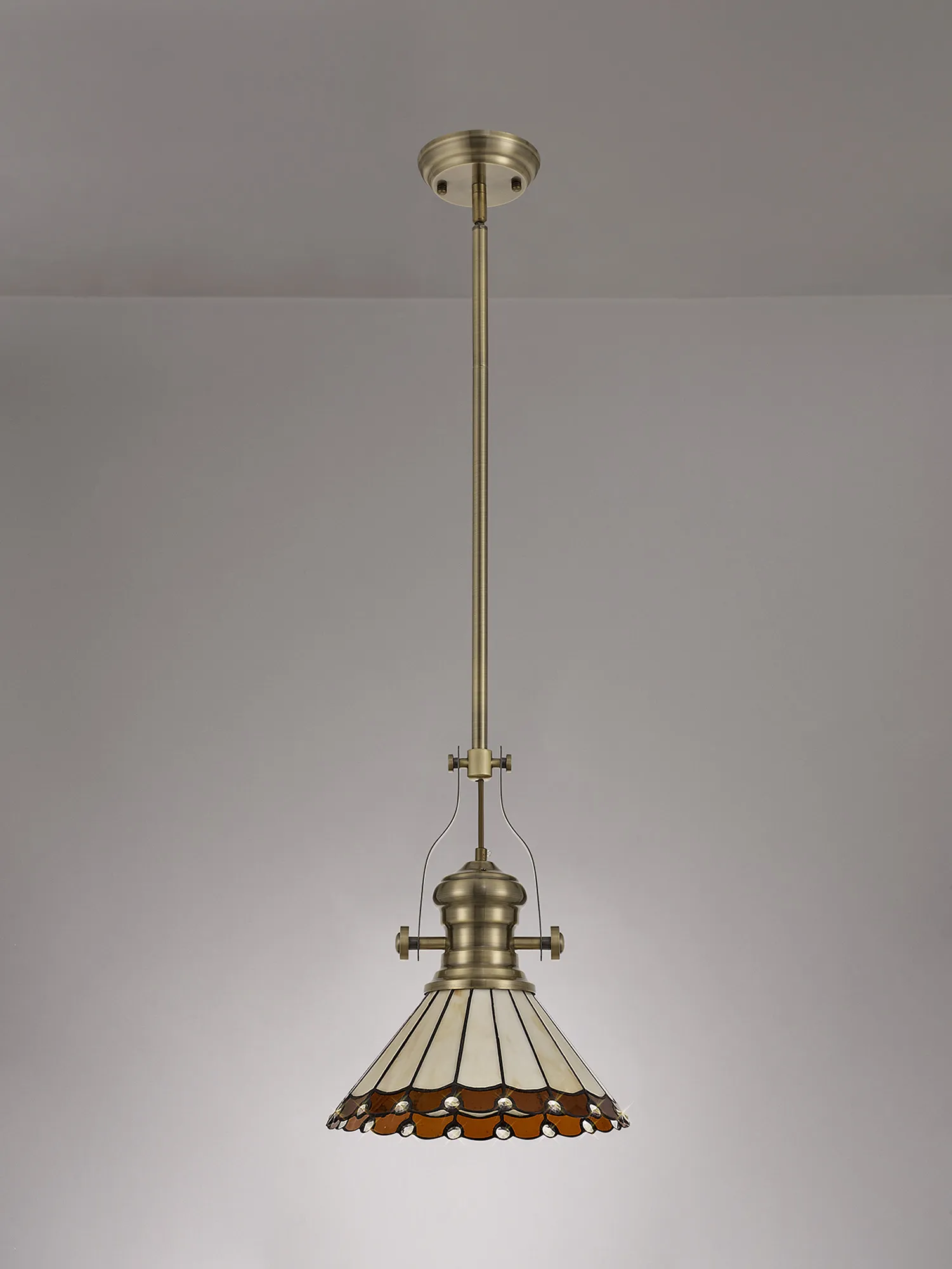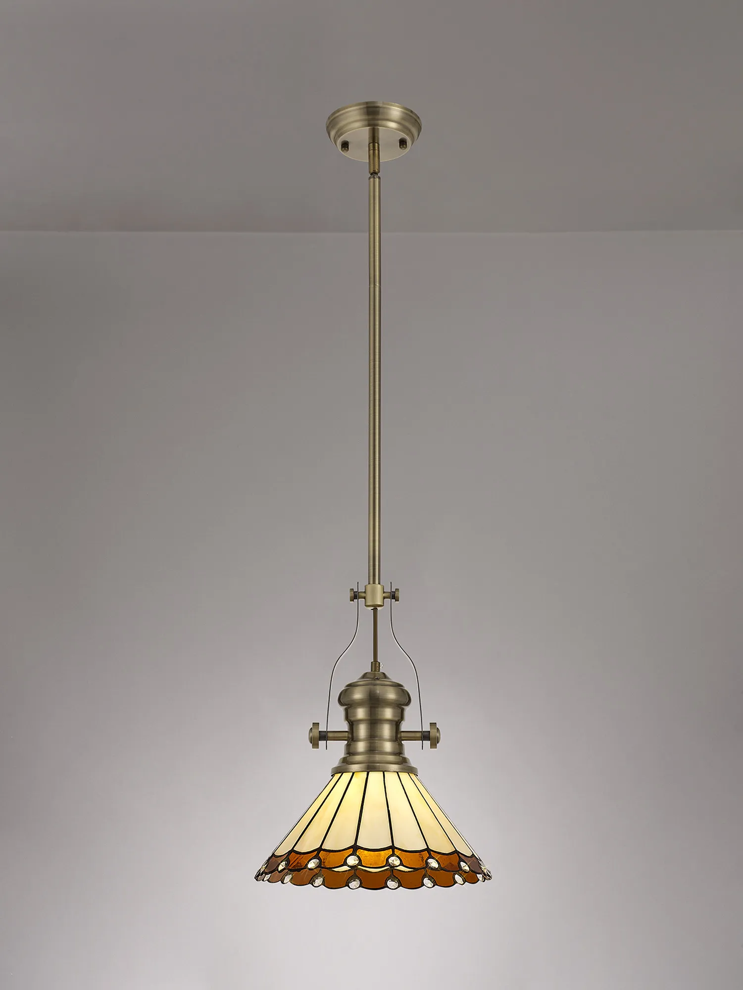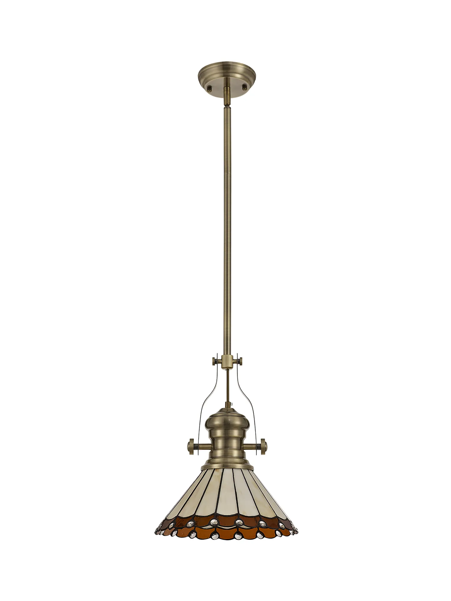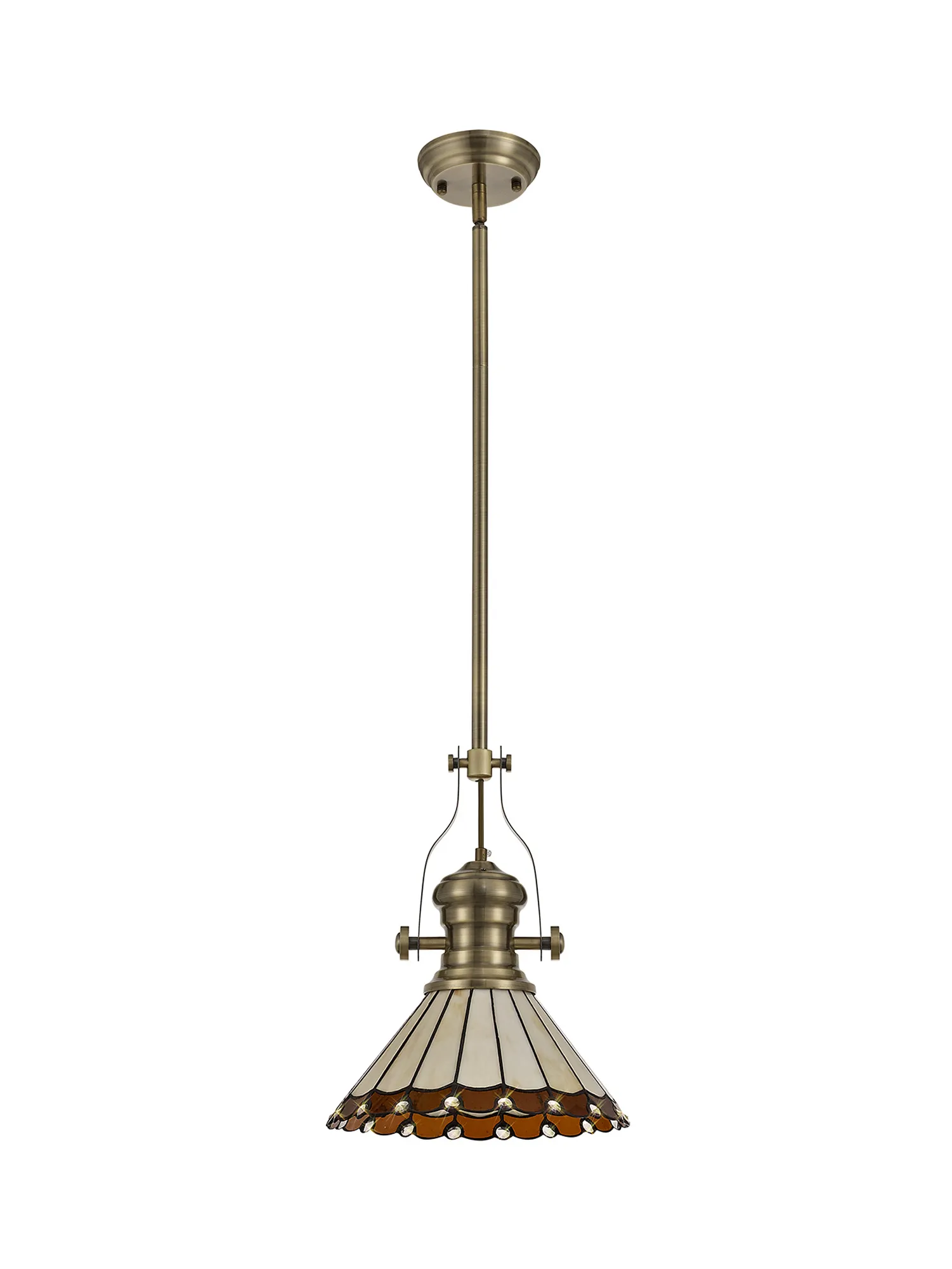 OTHER Farquhar 1 Light Pendant E27 With 30cm Tiffany Shade, Antique Brass/Amber/Cream/Crystal