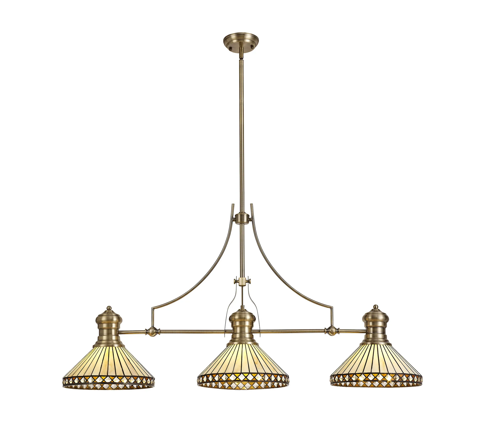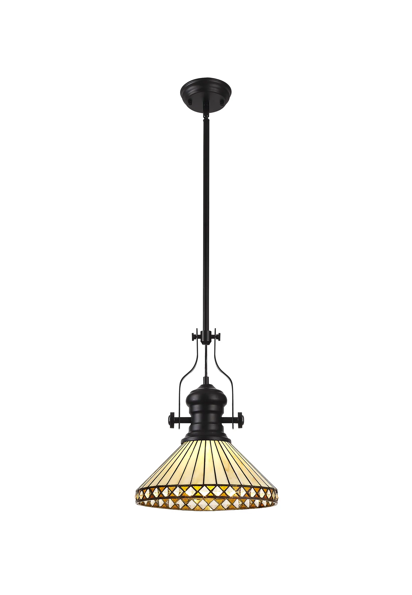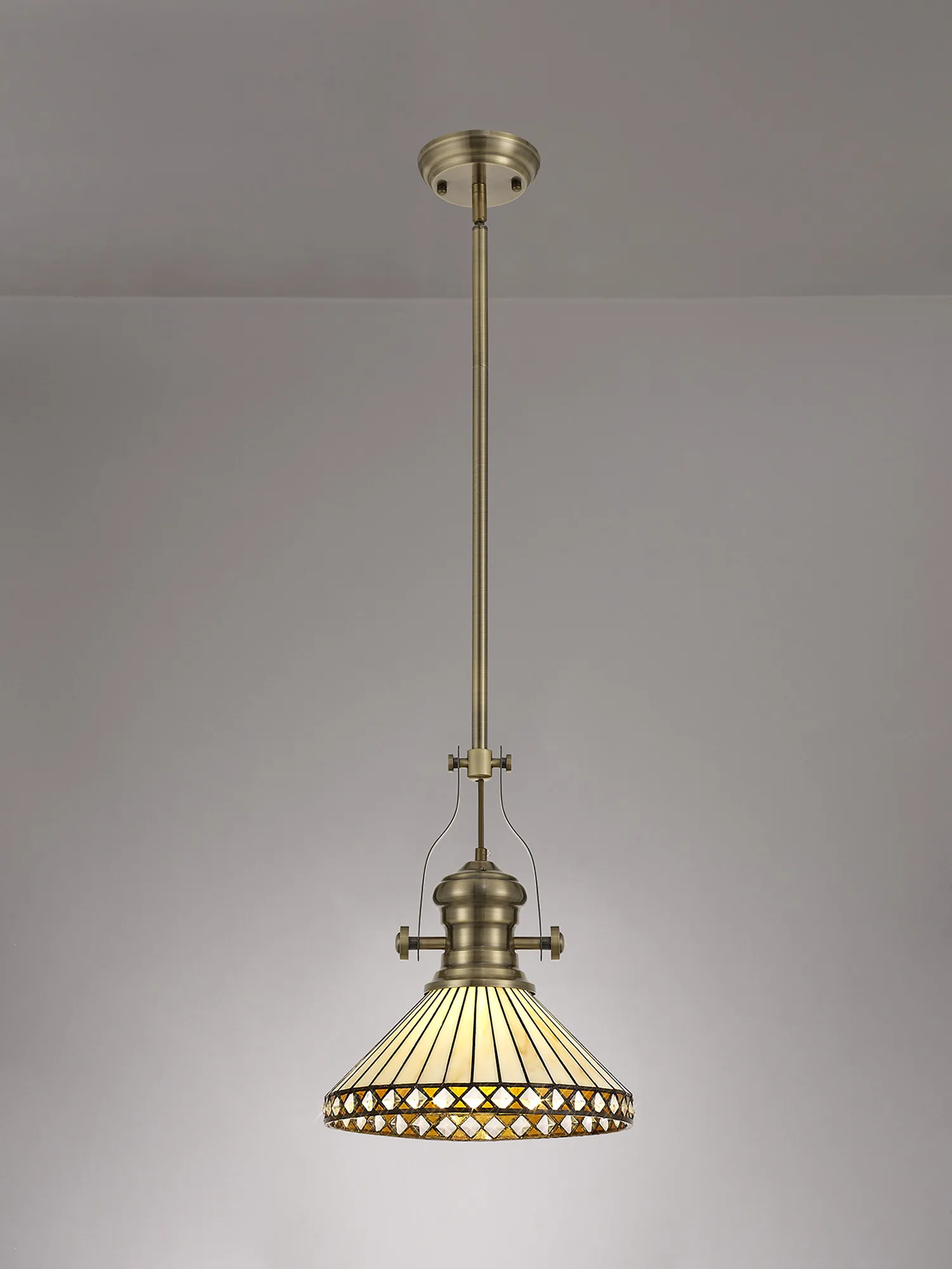 OTHER Wattle 1 Light Pendant E27 With 30cm Tiffany Shade, Antique Brass/Amber/Cream/Crystal