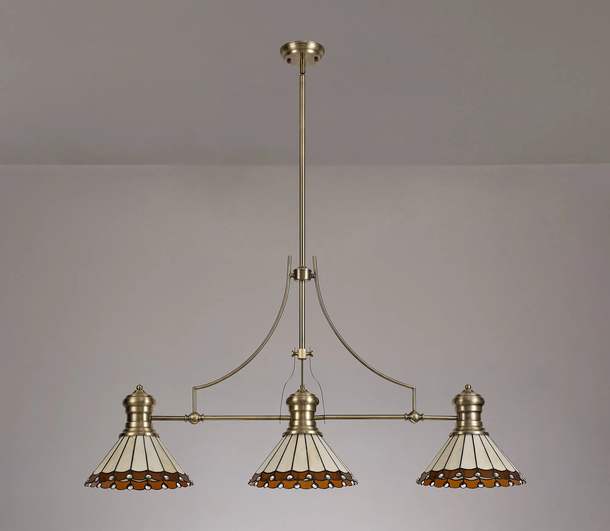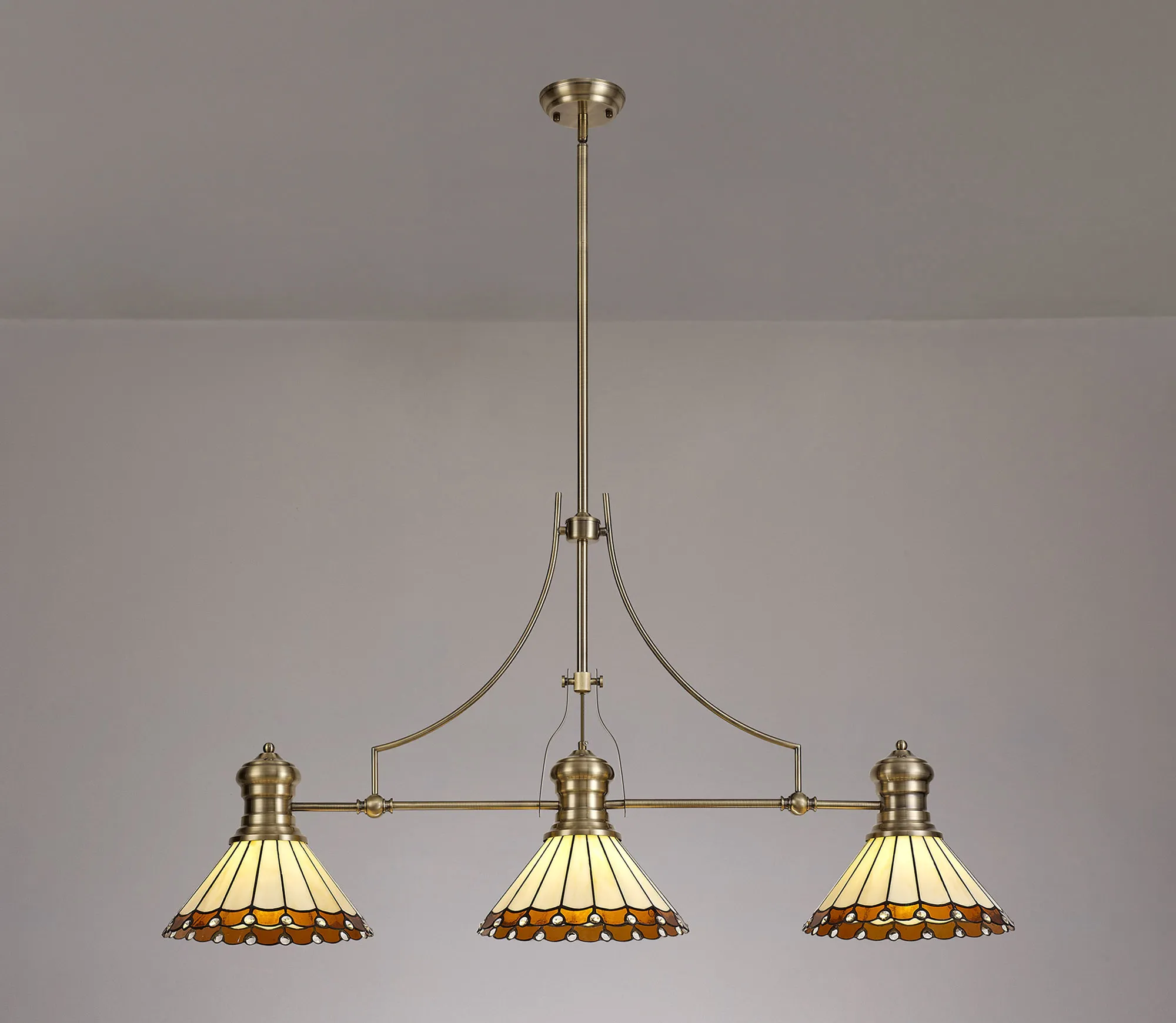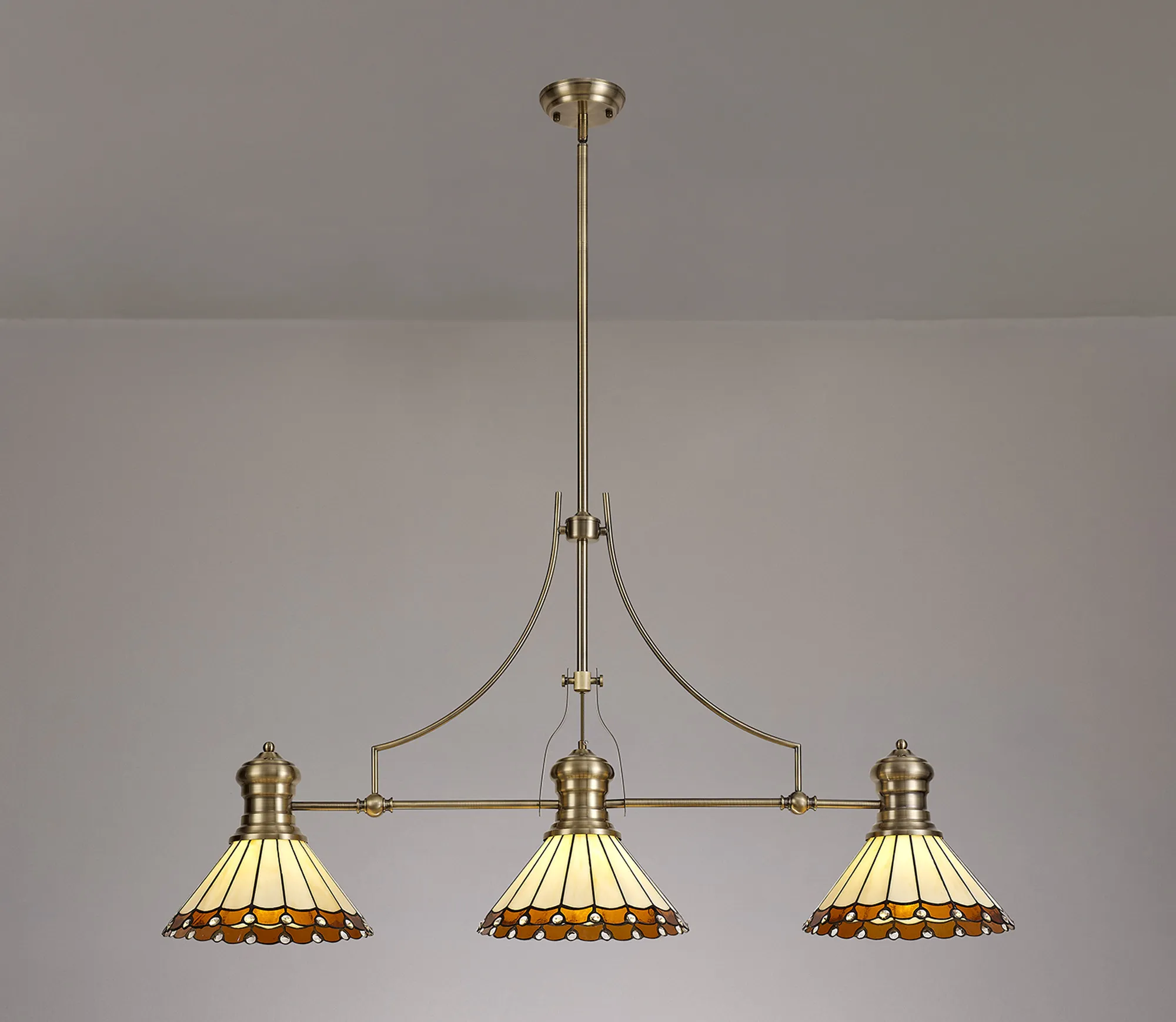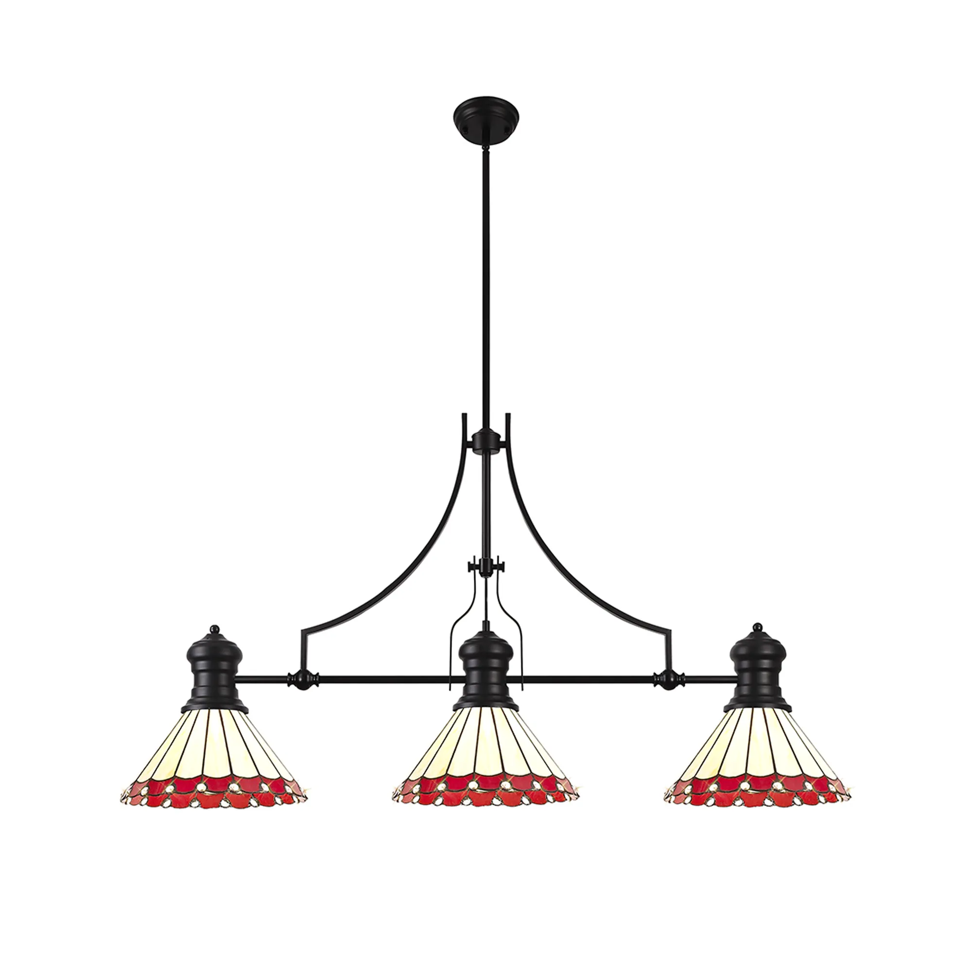 Farquhar 3 Light Linear Pendant E27 With 30cm Tiffany Shade, Matt Black, Amber, Cream, Crystal