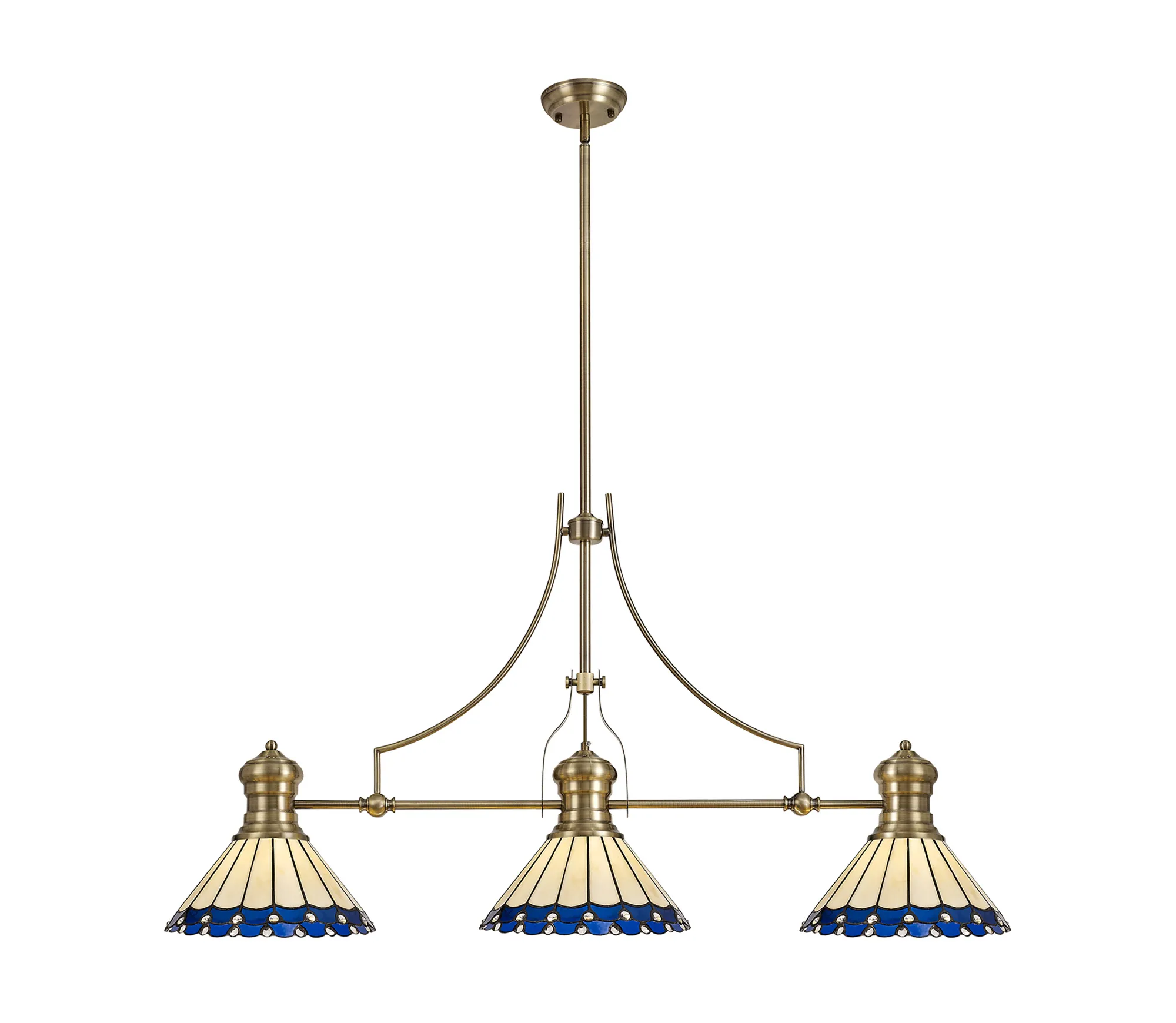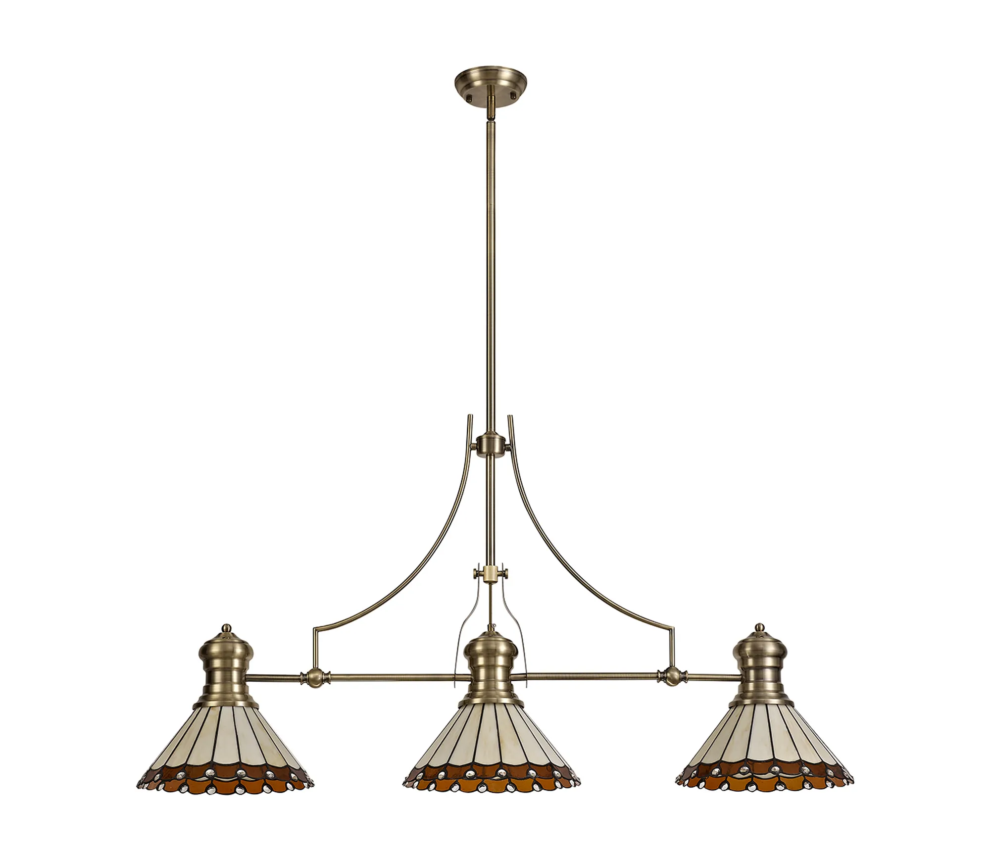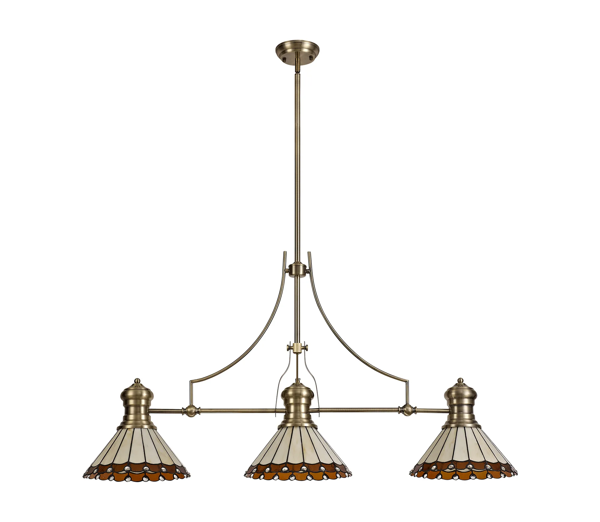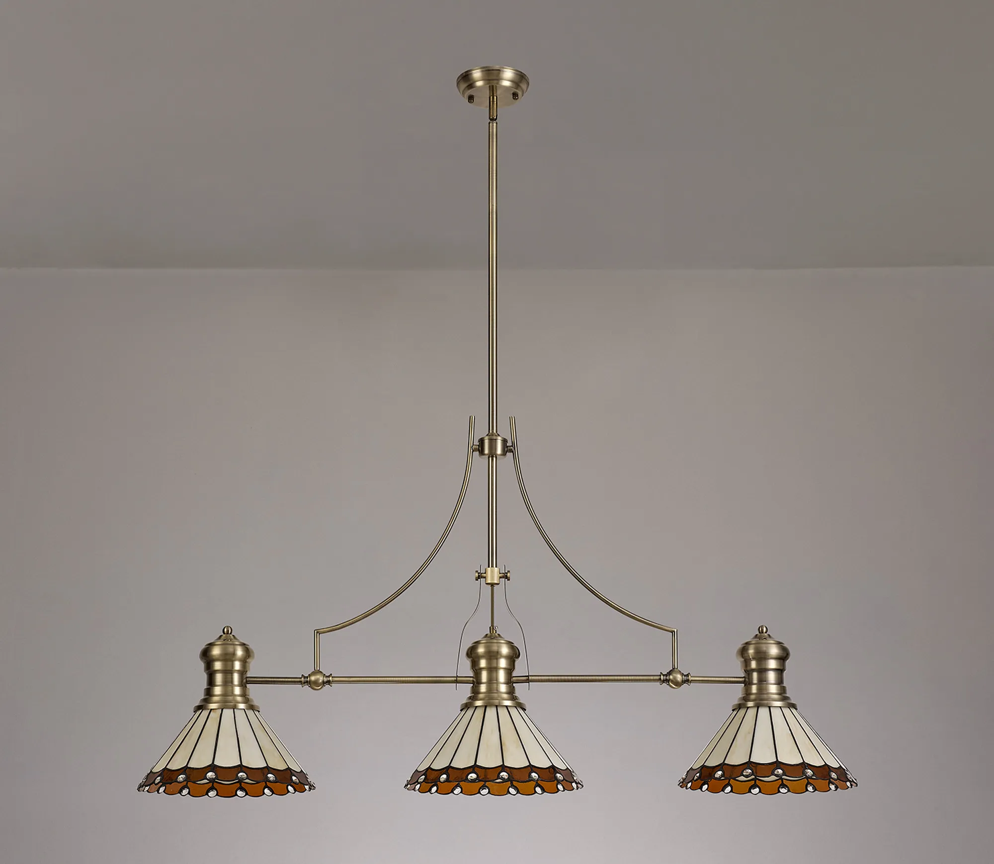 Farquhar 3 Light Linear Pendant E27 With 30cm Tiffany Shade, Matt Black, Amber, Cream, Crystal