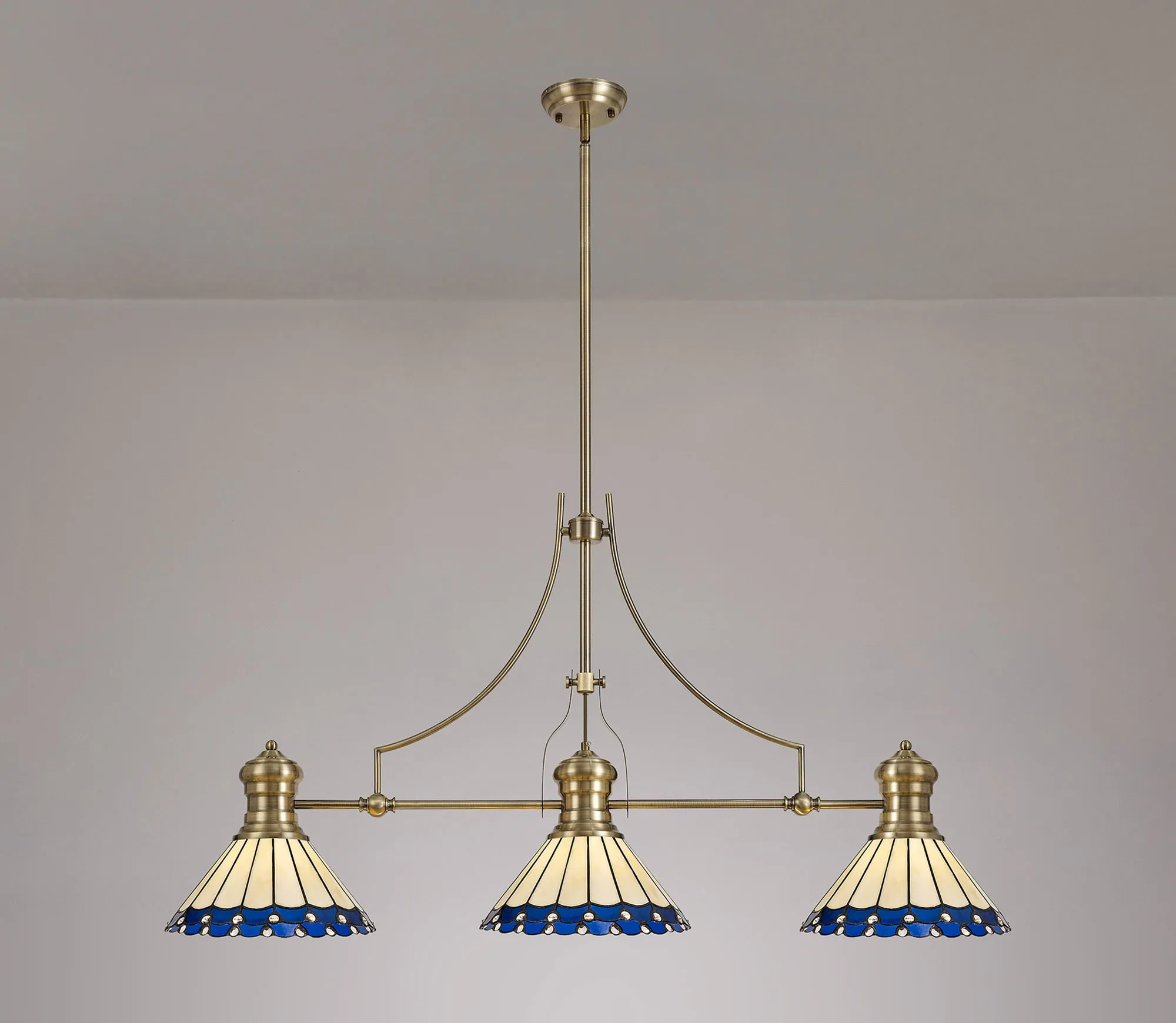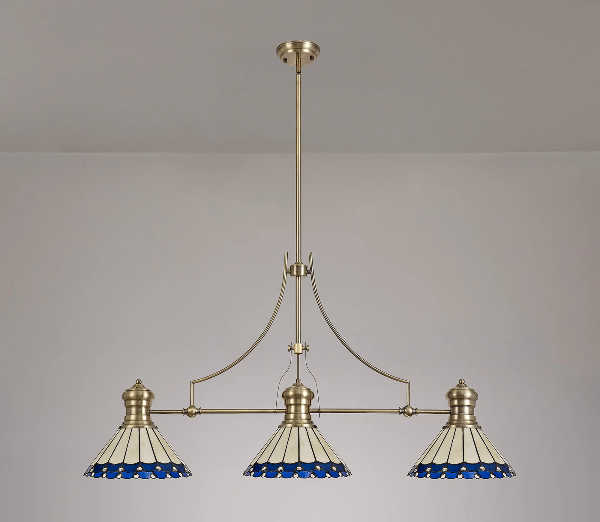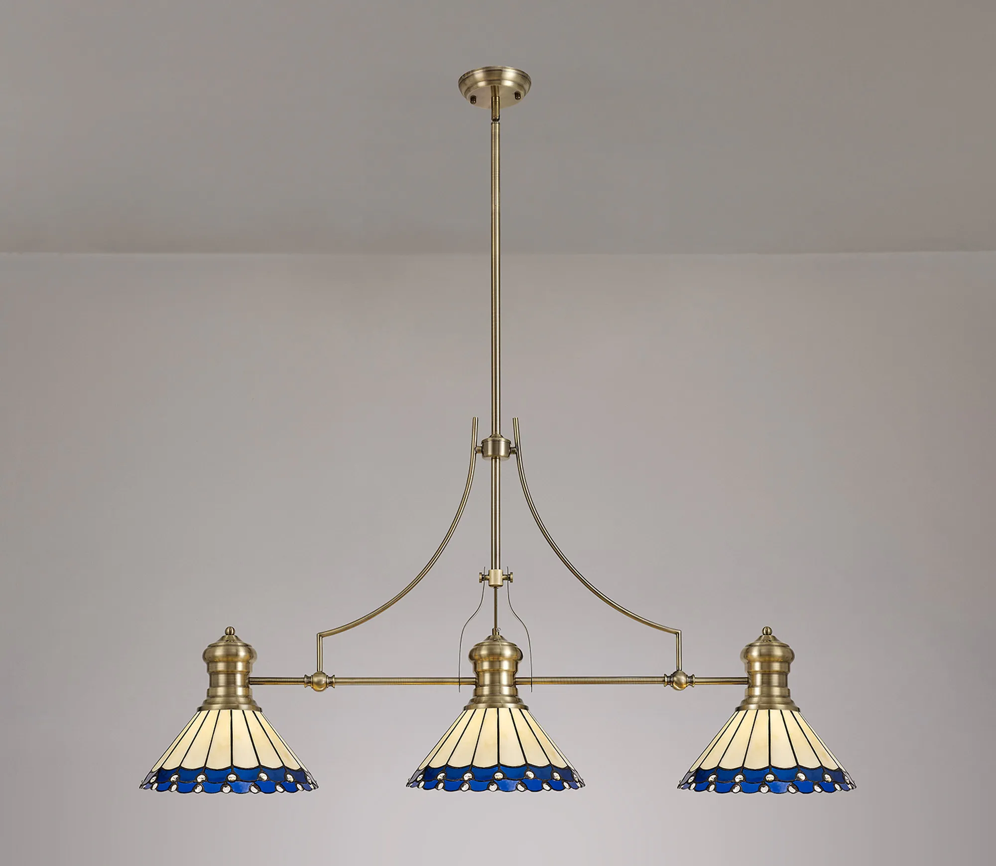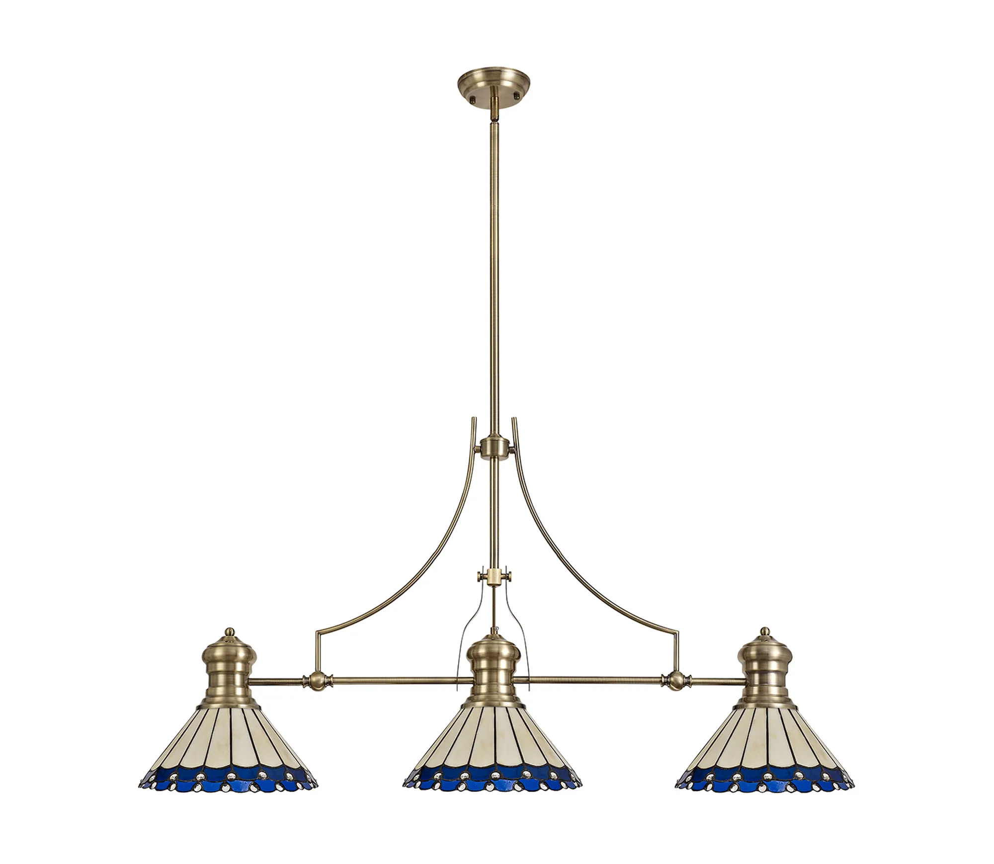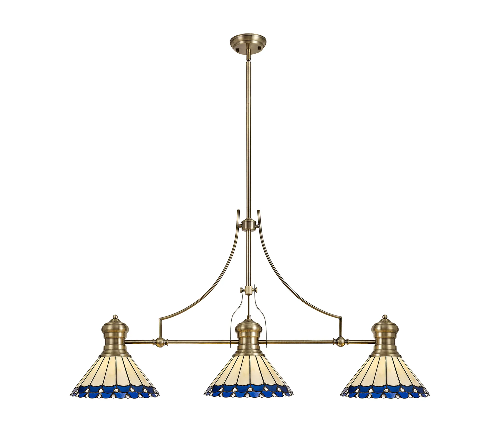 Farquhar 3 Light Linear Pendant E27 With 30cm Tiffany Shade, Matt Black, Blue, Cream, Crystal
