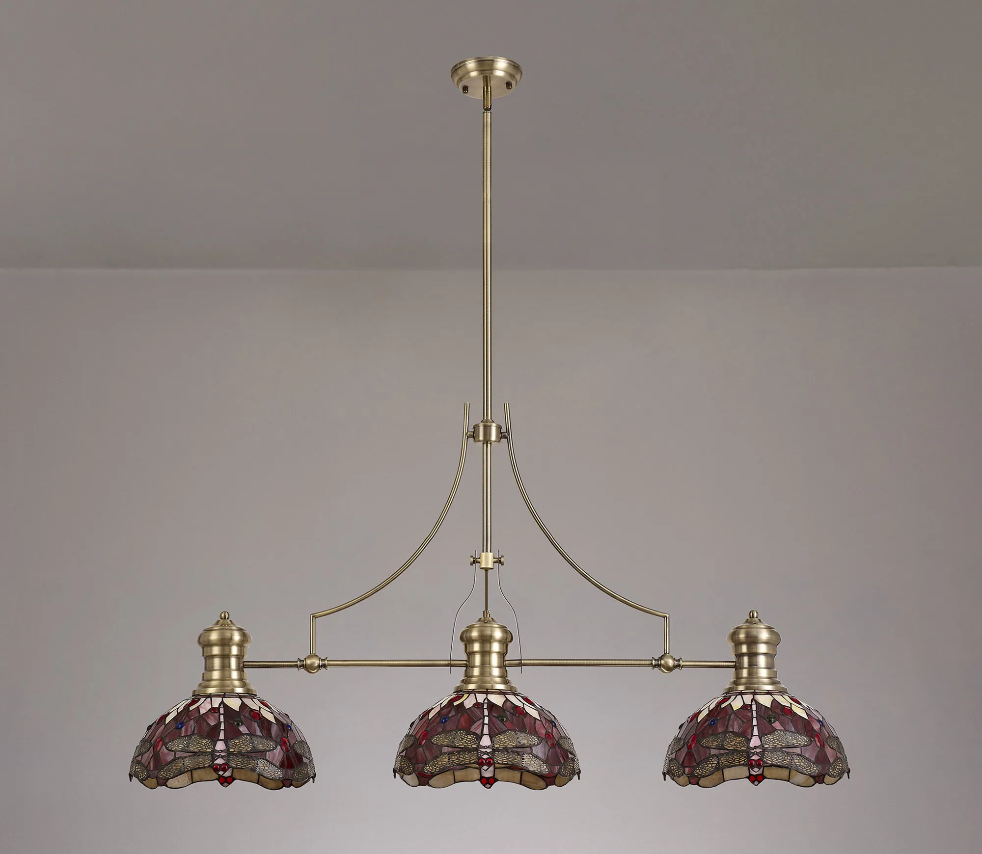 Hunterville 3 Light Linear Pendant E27 With 30cm Tiffany Shade, Matt Black, Purple, Pink, Crystal