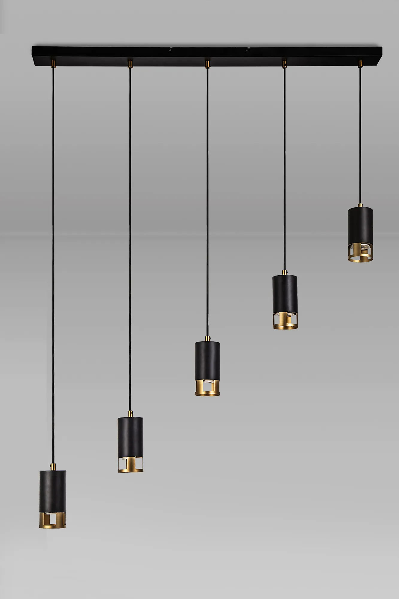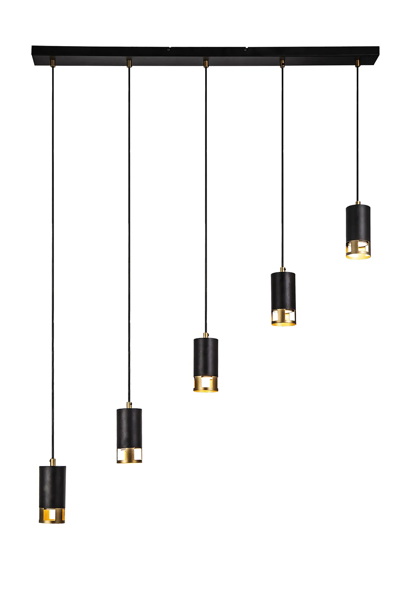 The Airdrie range, consisting of pendant lights with adjustable heights and spotlights, combines either a black colour finish with painted gold components or a graphite finish with polished chrome accents for a decorative visual contrast. In a variation of linear and round fixtures, it is a chic range adaptable to a wide range of internal settings and décor. Sleek cylindrical shapes house the GU10 lamp holders projecting a downward distribution of light.