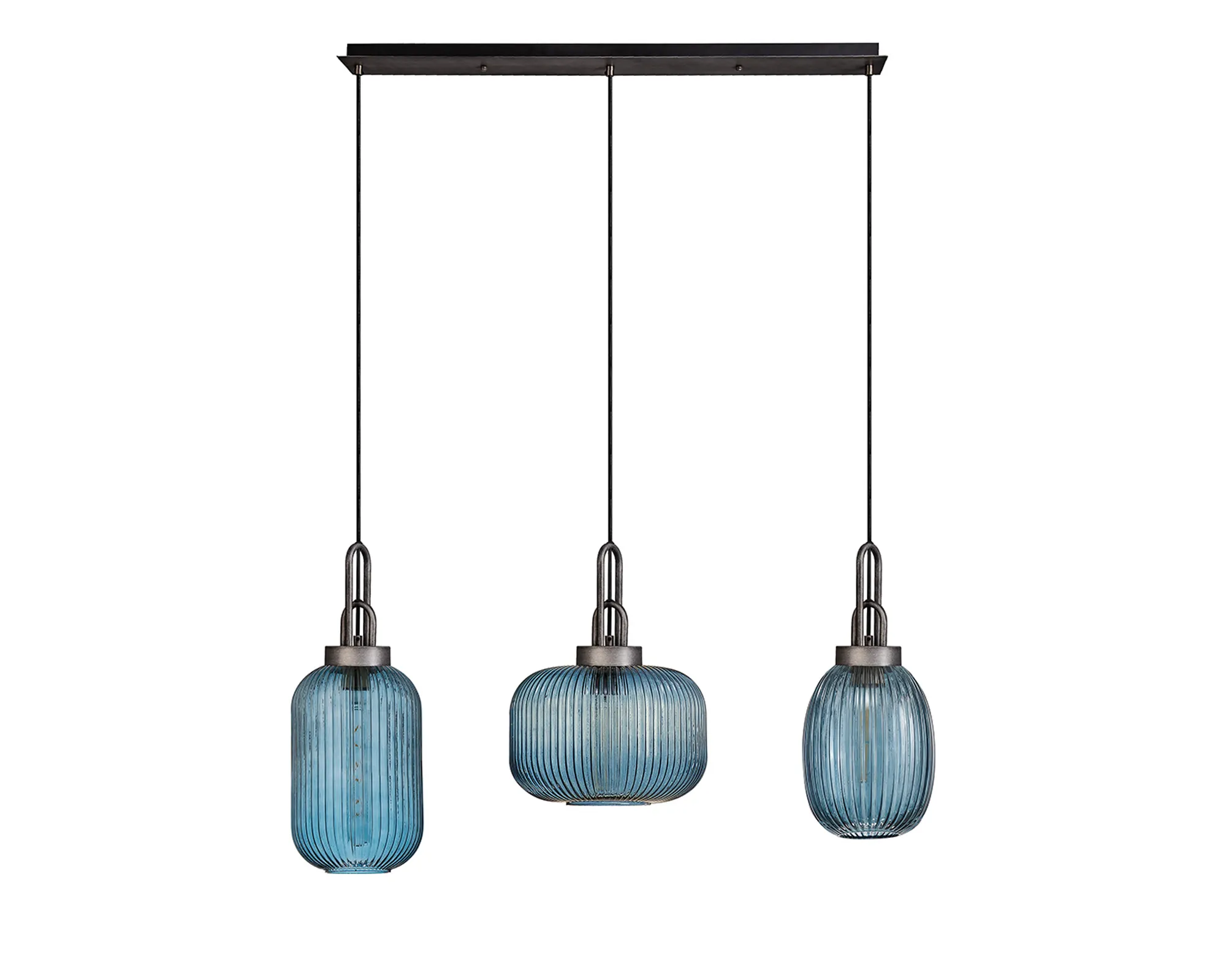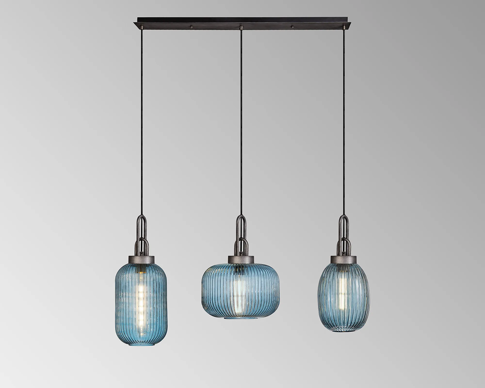 Kirby Linear 3 Light Pendant, (FRAME ONLY), 3 x E27, Aged Pewter/Matt Black