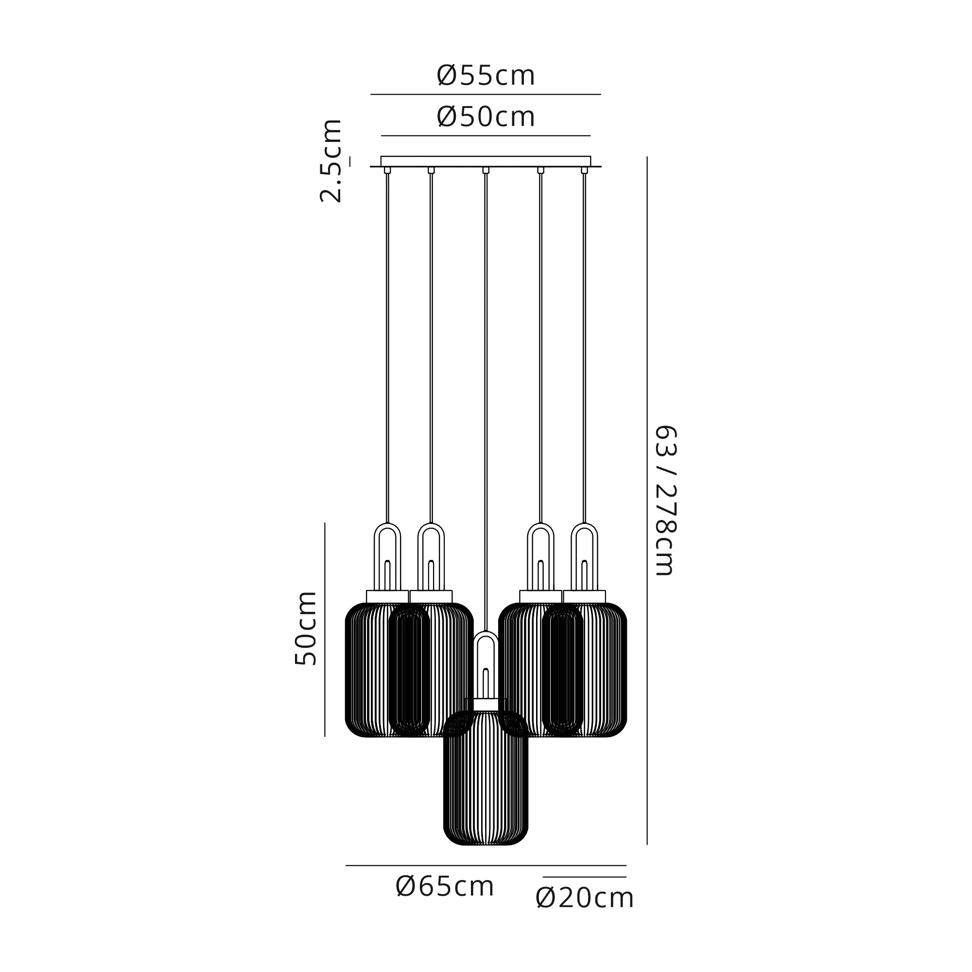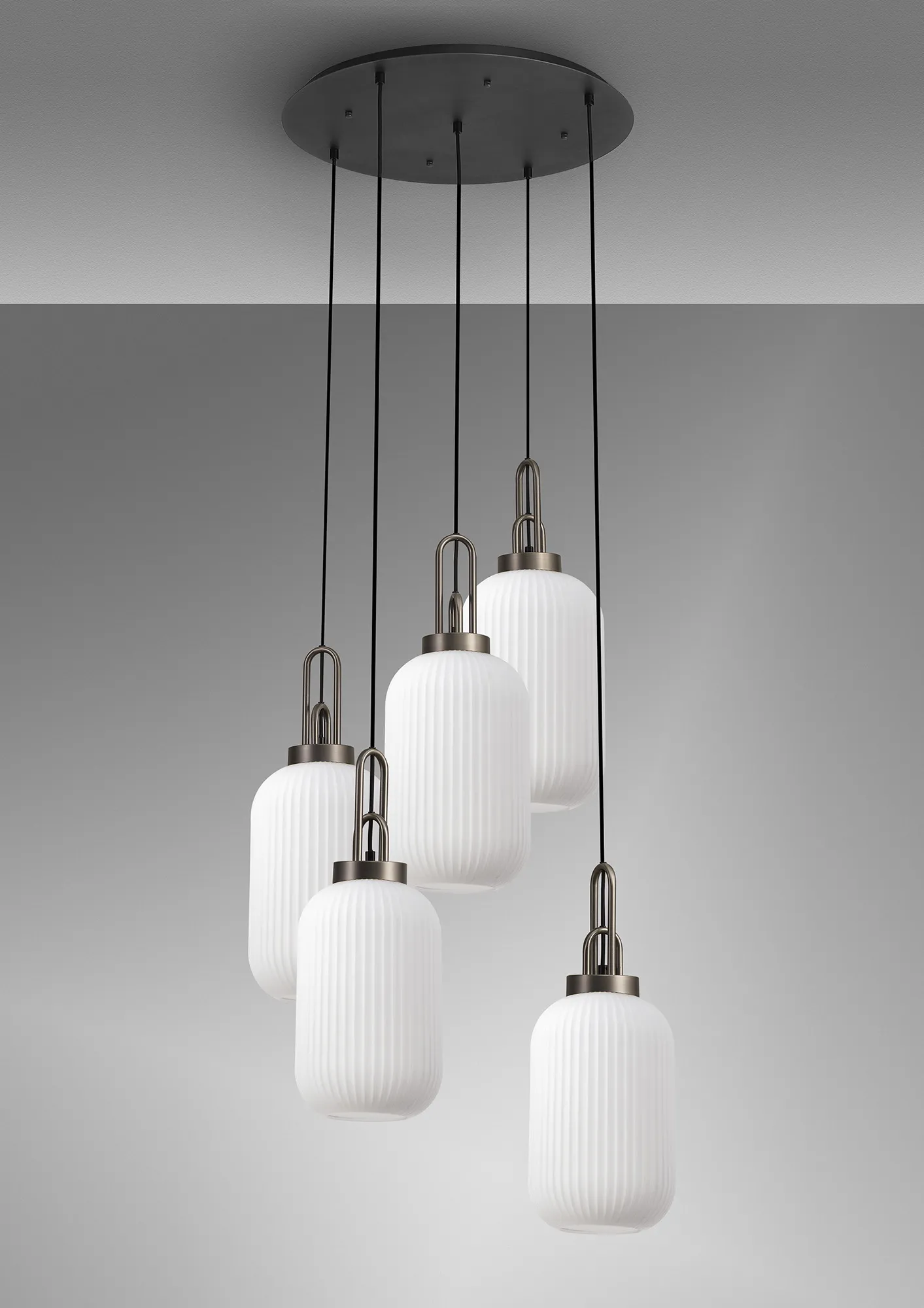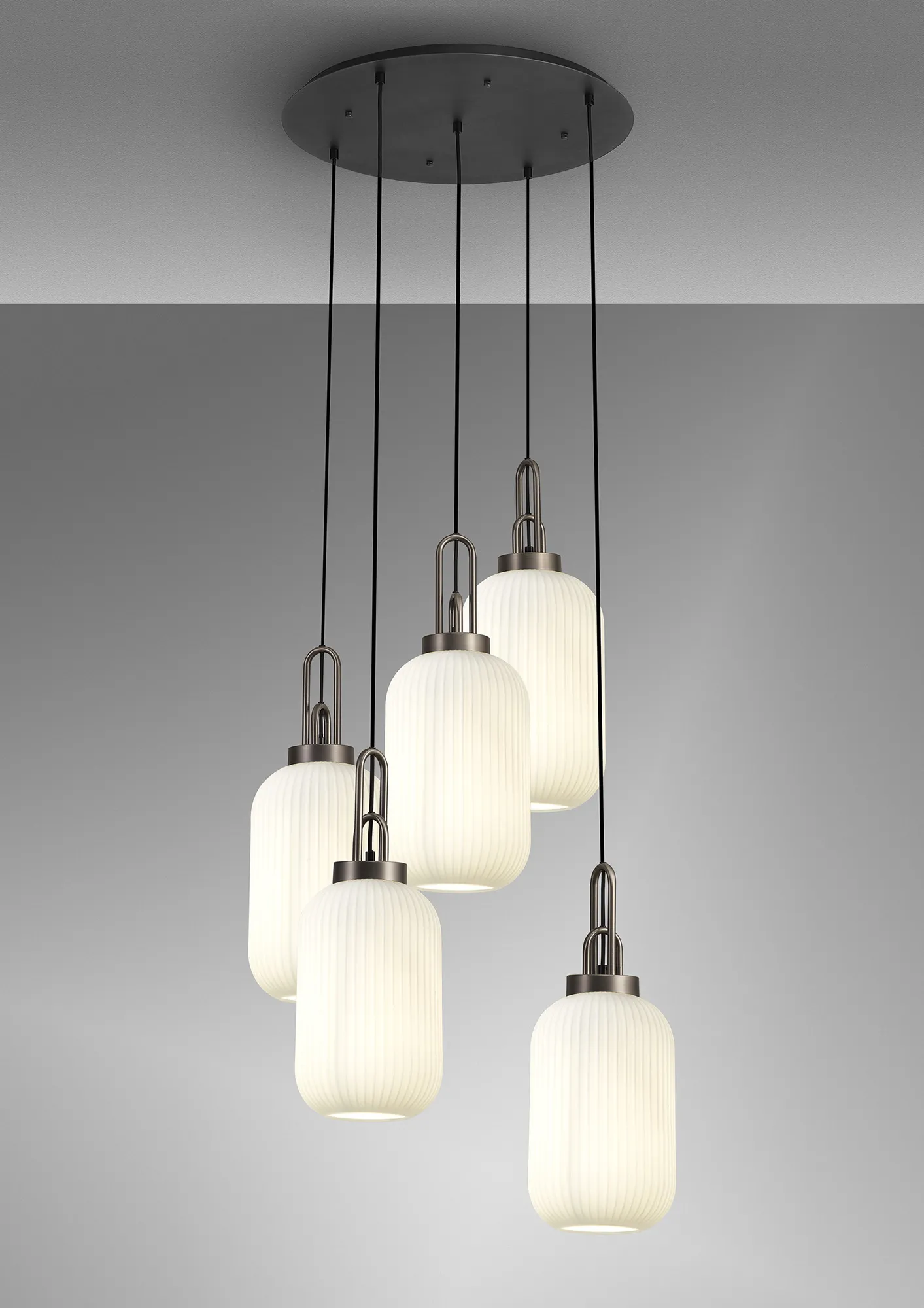 Kirby 2.5m Round Suspension Kit, 5 x E27, Antique Silver/Matt Black