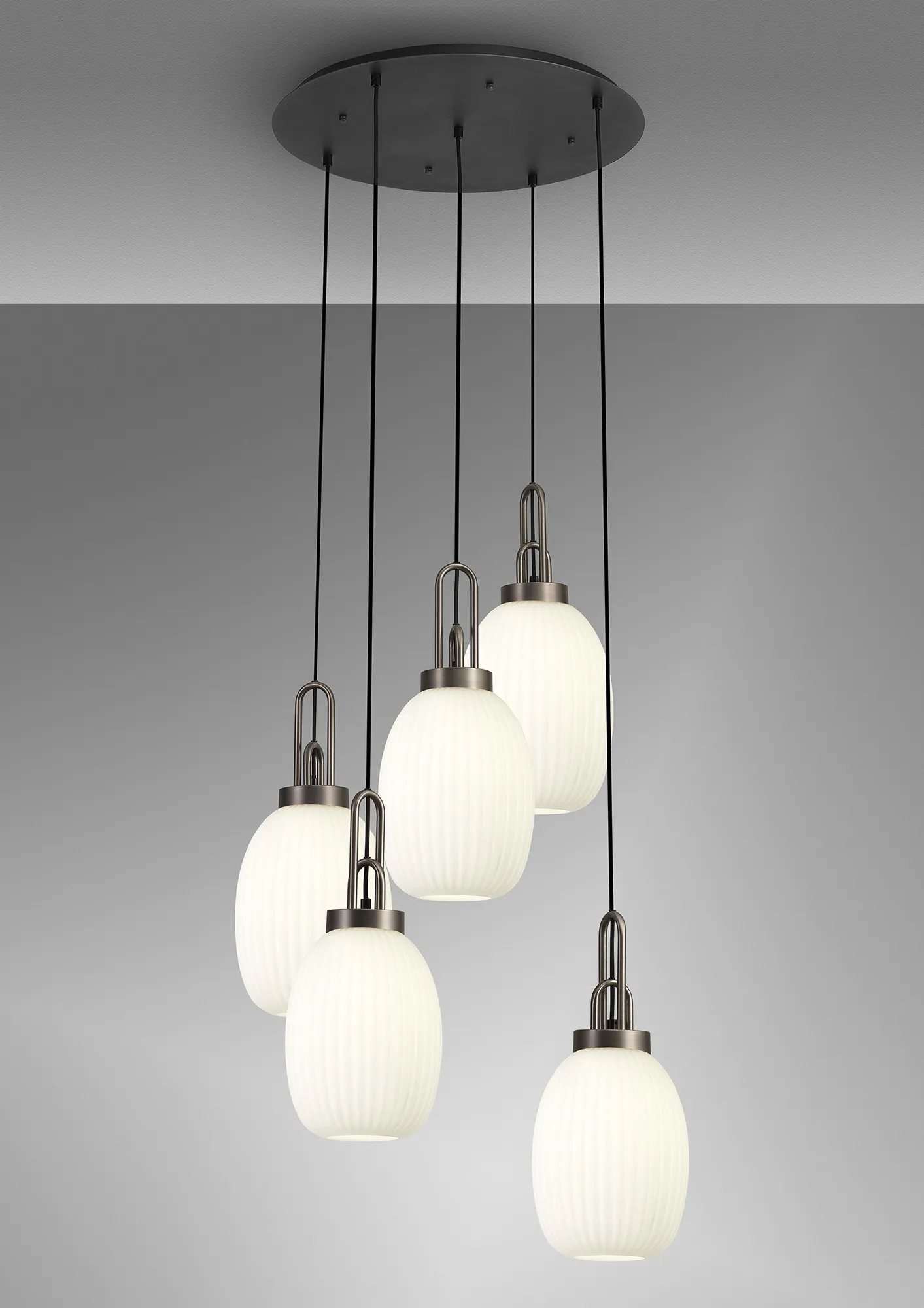 Kirby 2.5m Round Suspension Kit, 5 x E27, Antique Silver/Matt Black