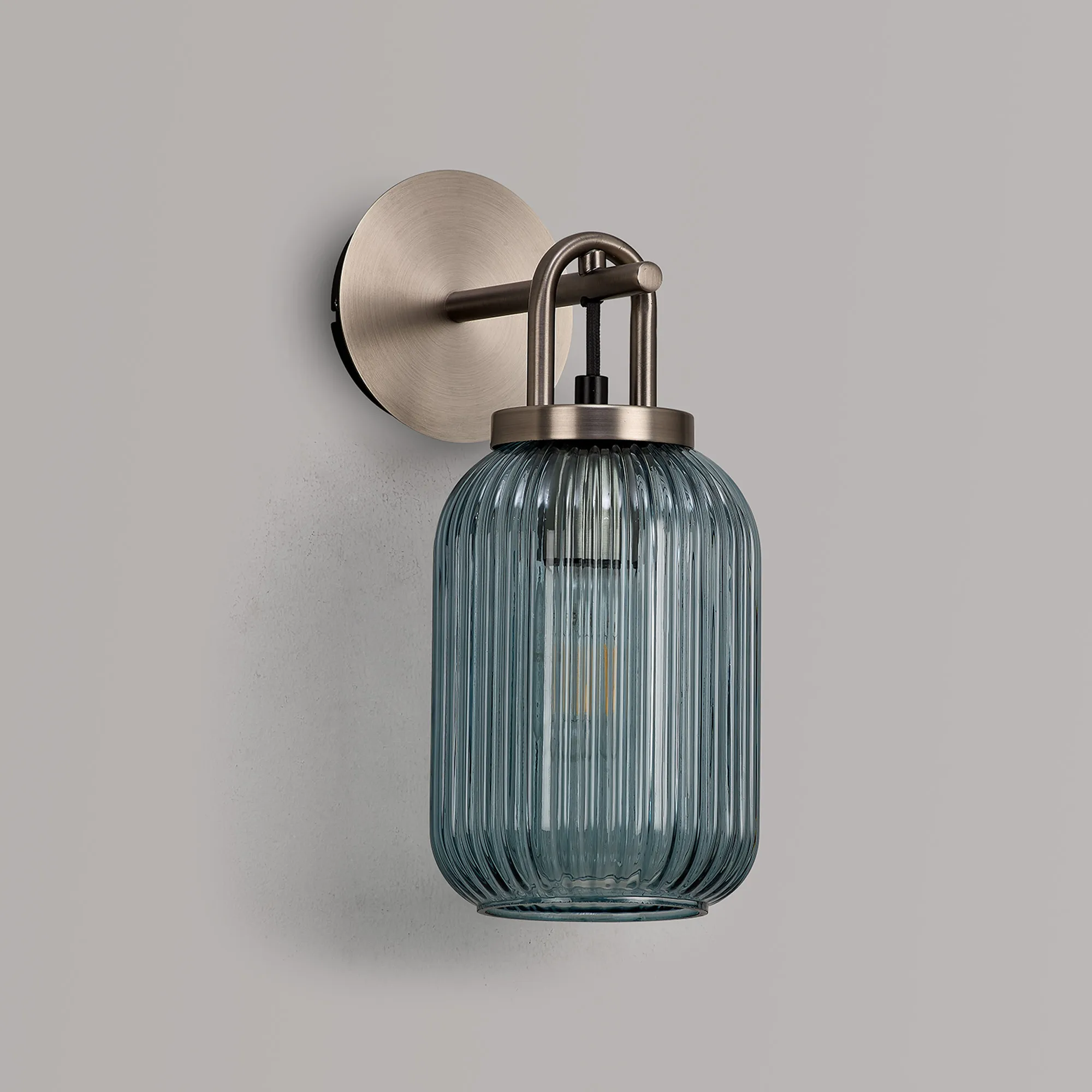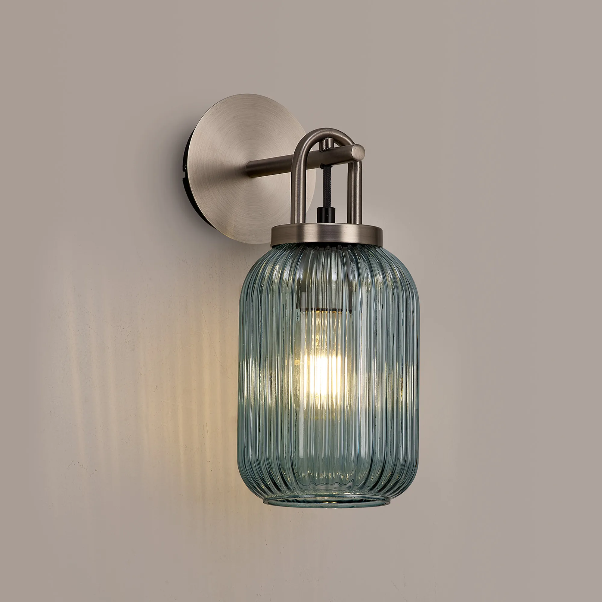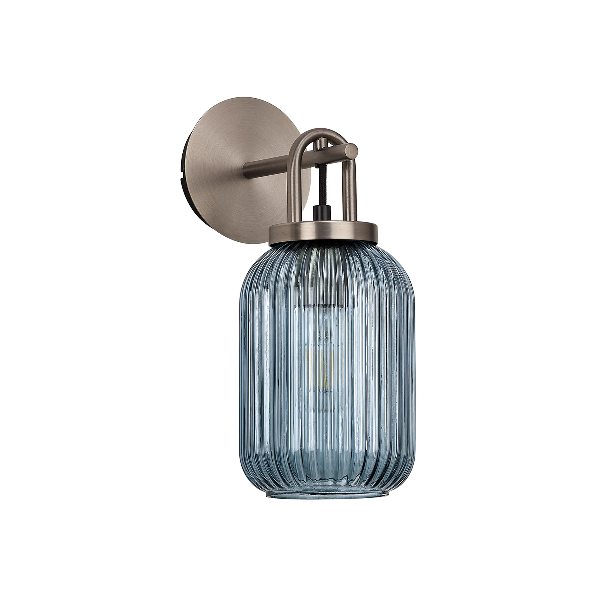 Kirby Wall Light Switched, 1 x E27, Antique Silver With 14cm Tubular Ribbed Glass, Smoked
