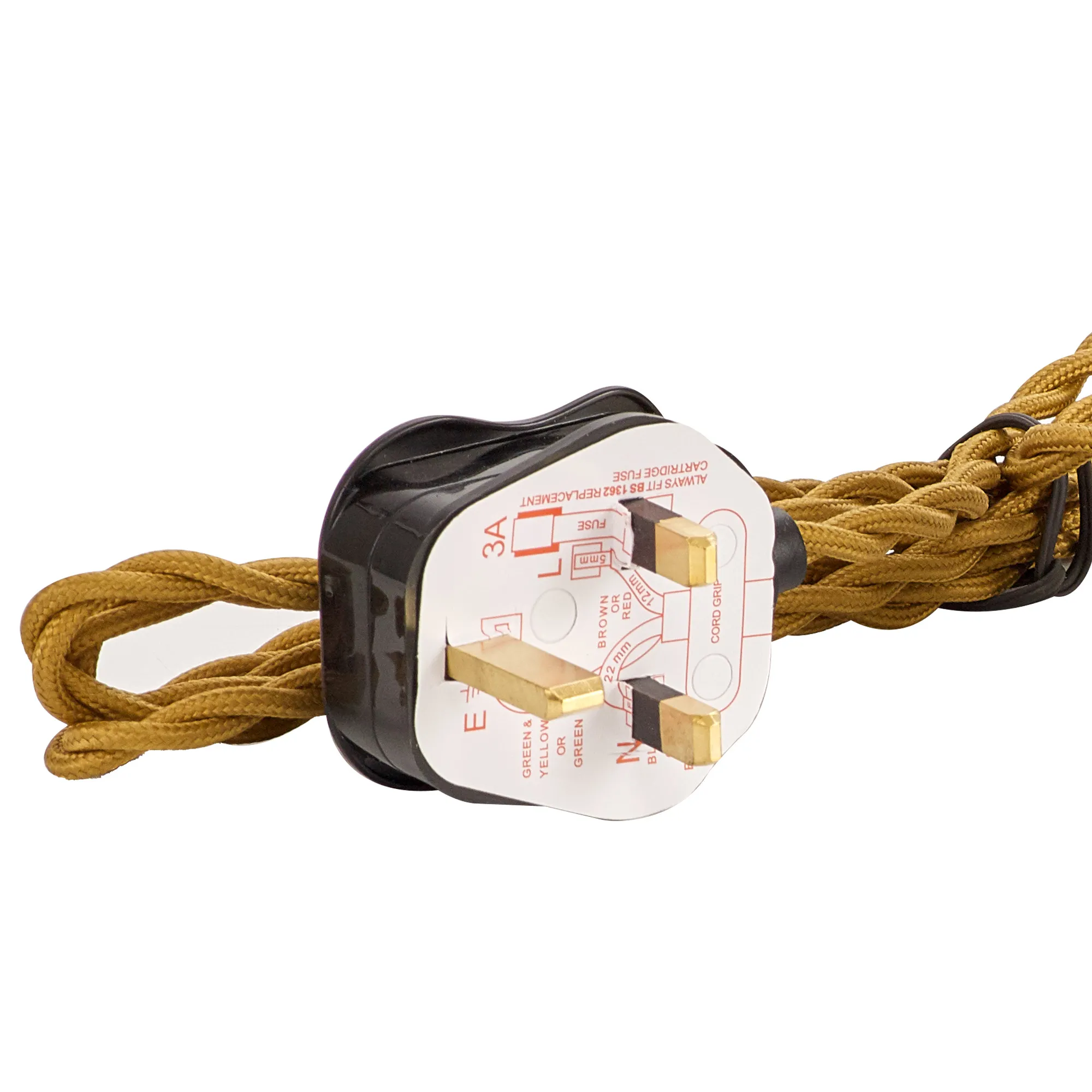 Patoka Table Lamp 1 Light Without Shade, Gilt Bronze With Pale Gold Braided Twisted Cable, E27 (Max 60W), Suitable For Shades & Cages