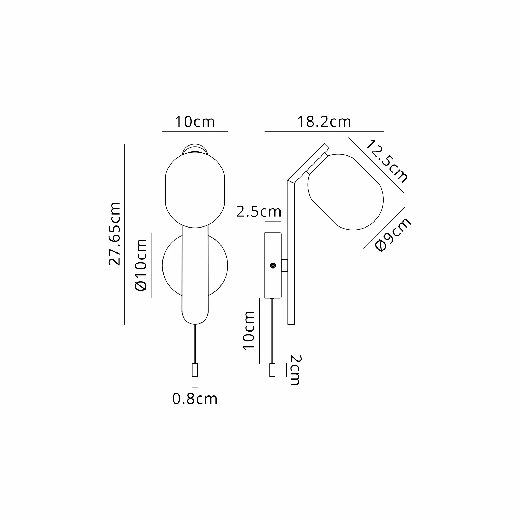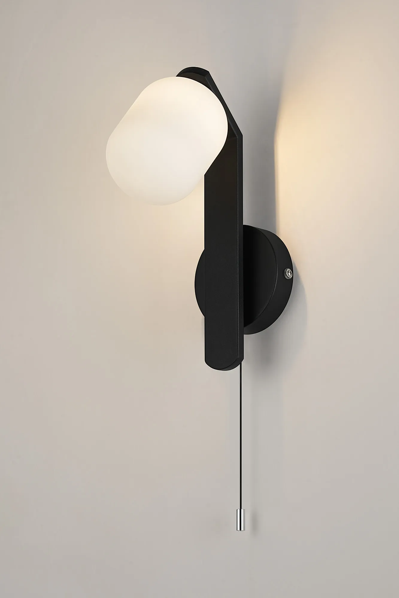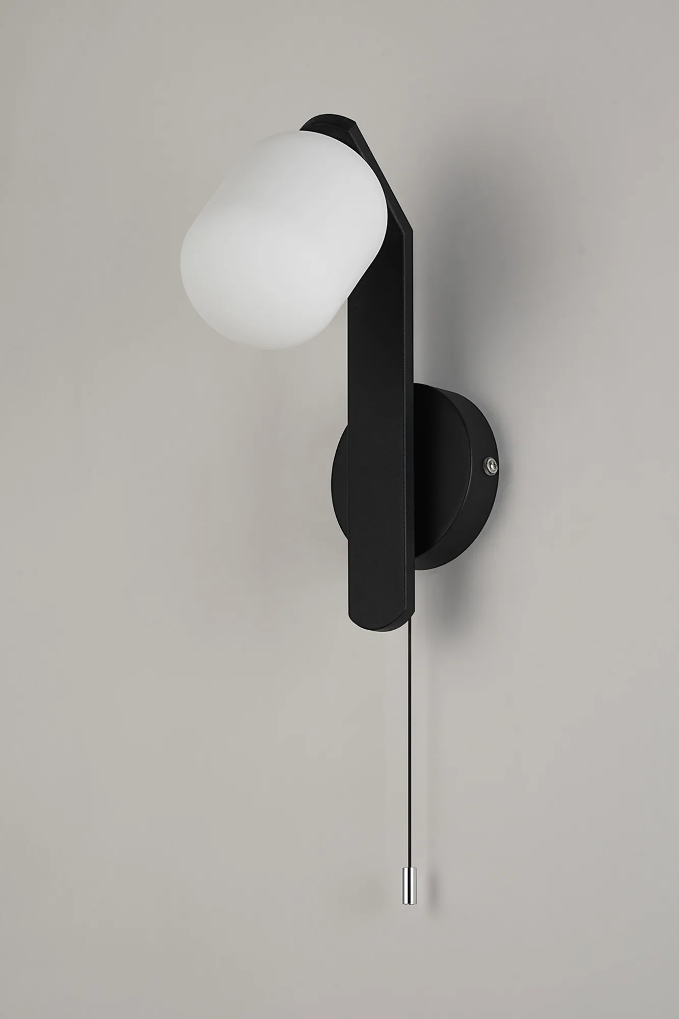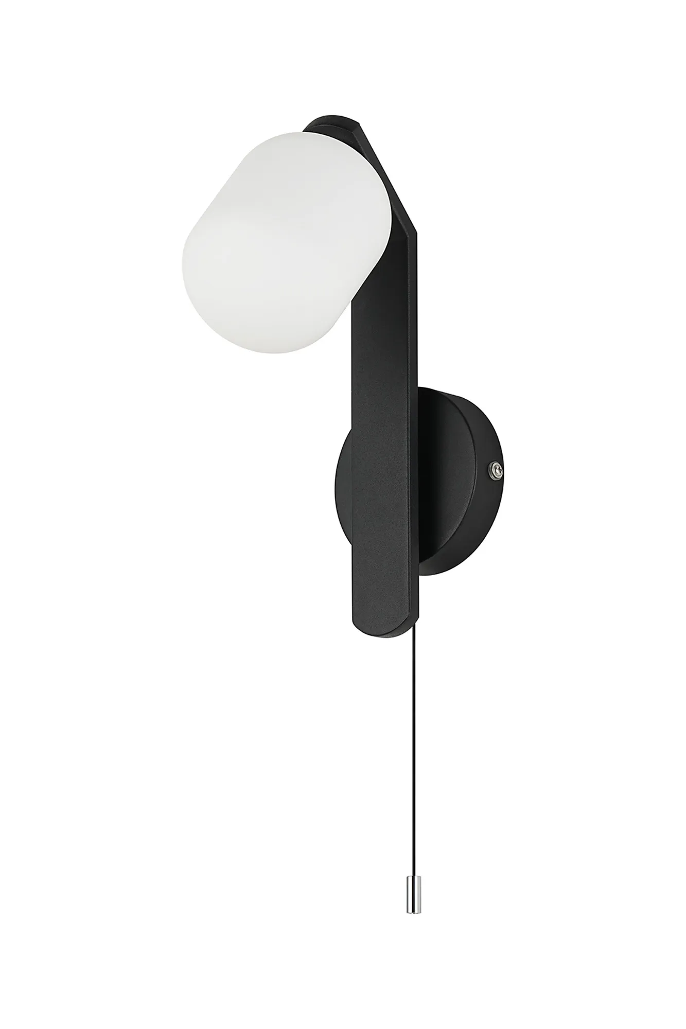 Campbell Pull Switch Wall Light, 1 x G9, IP44, Black/Polished Chrome/Opal Smooth Round Glass