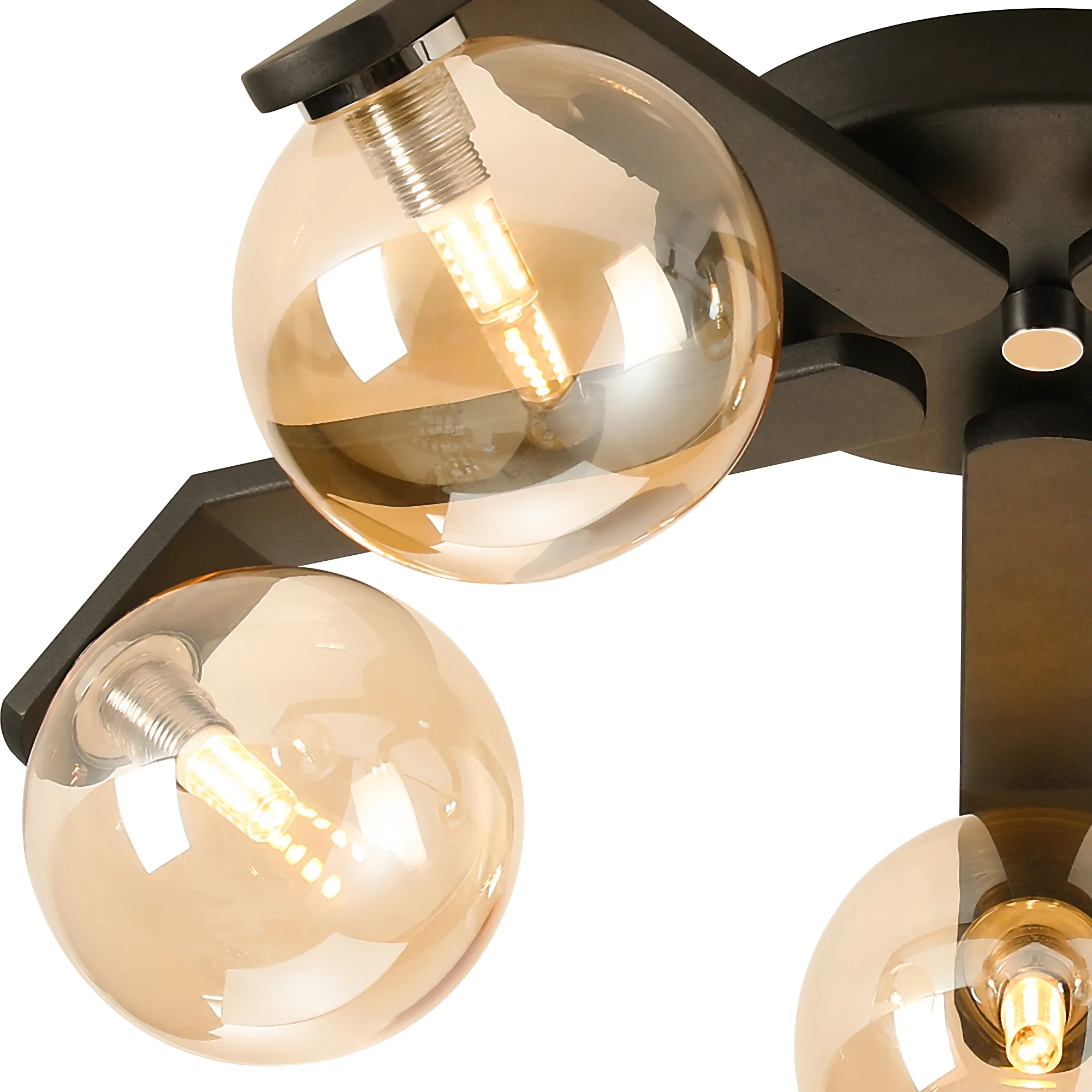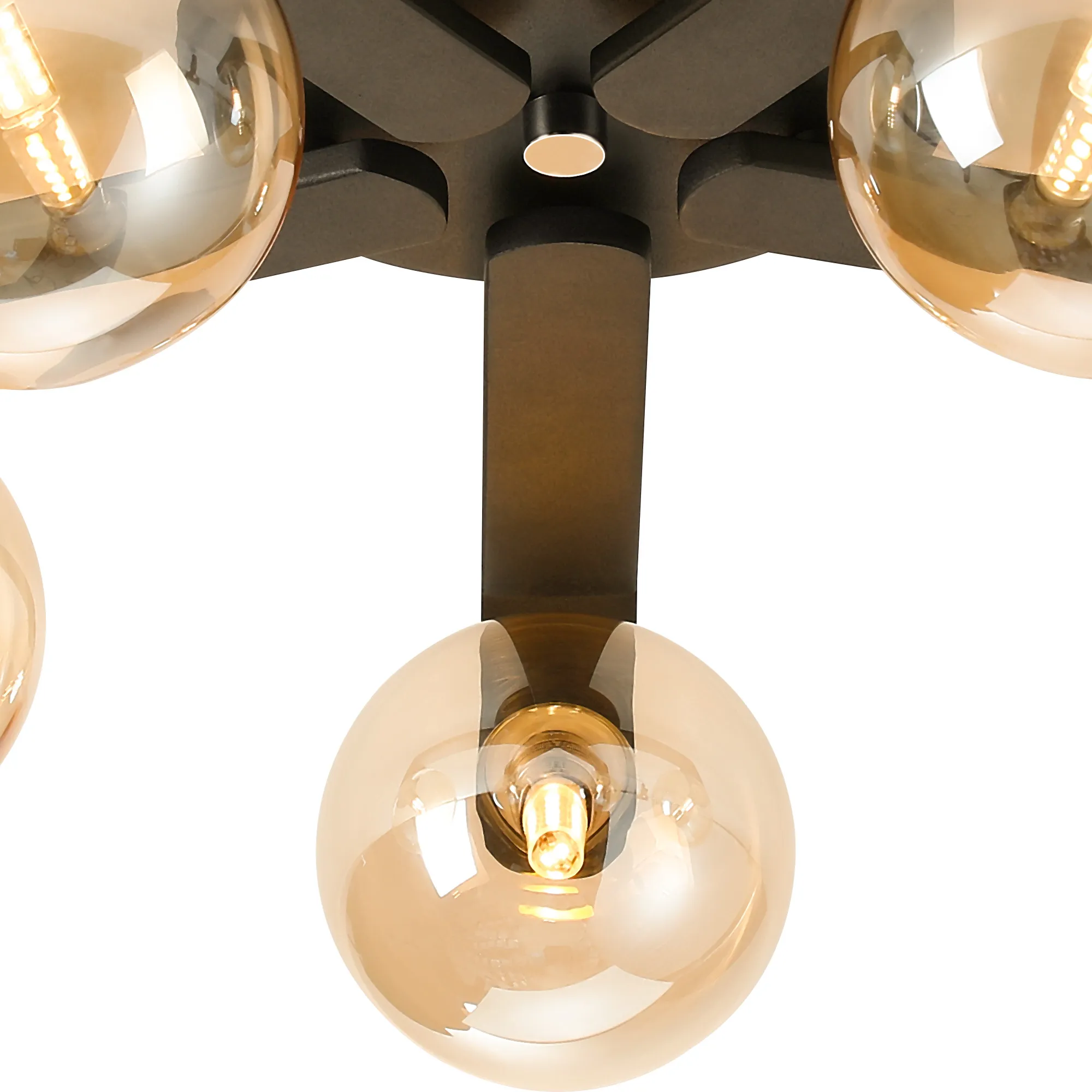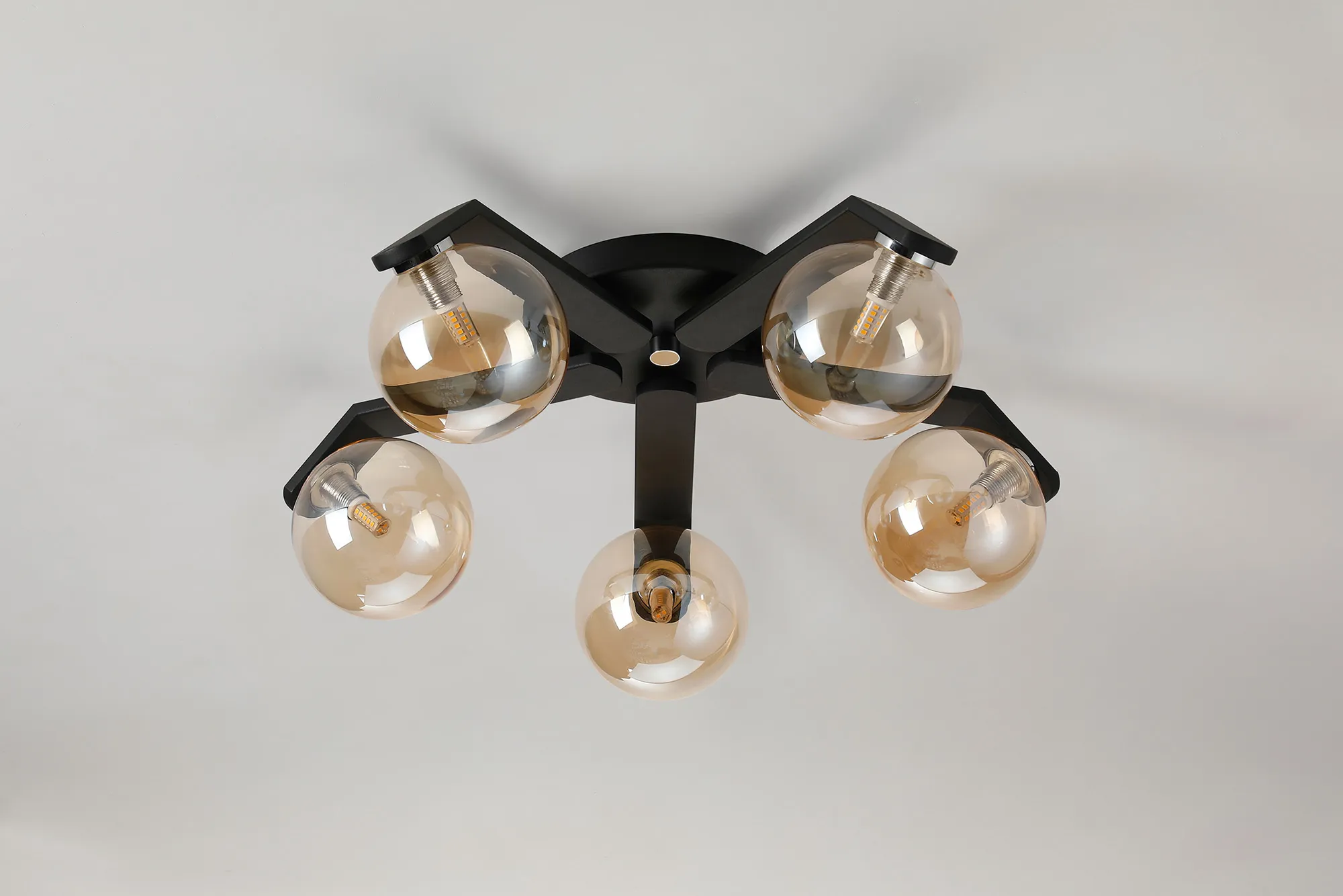 OTHER Campbell Flush Ceiling, 5 x G9, IP44, Black/Polished Chrome/Amber Smooth Round Glass