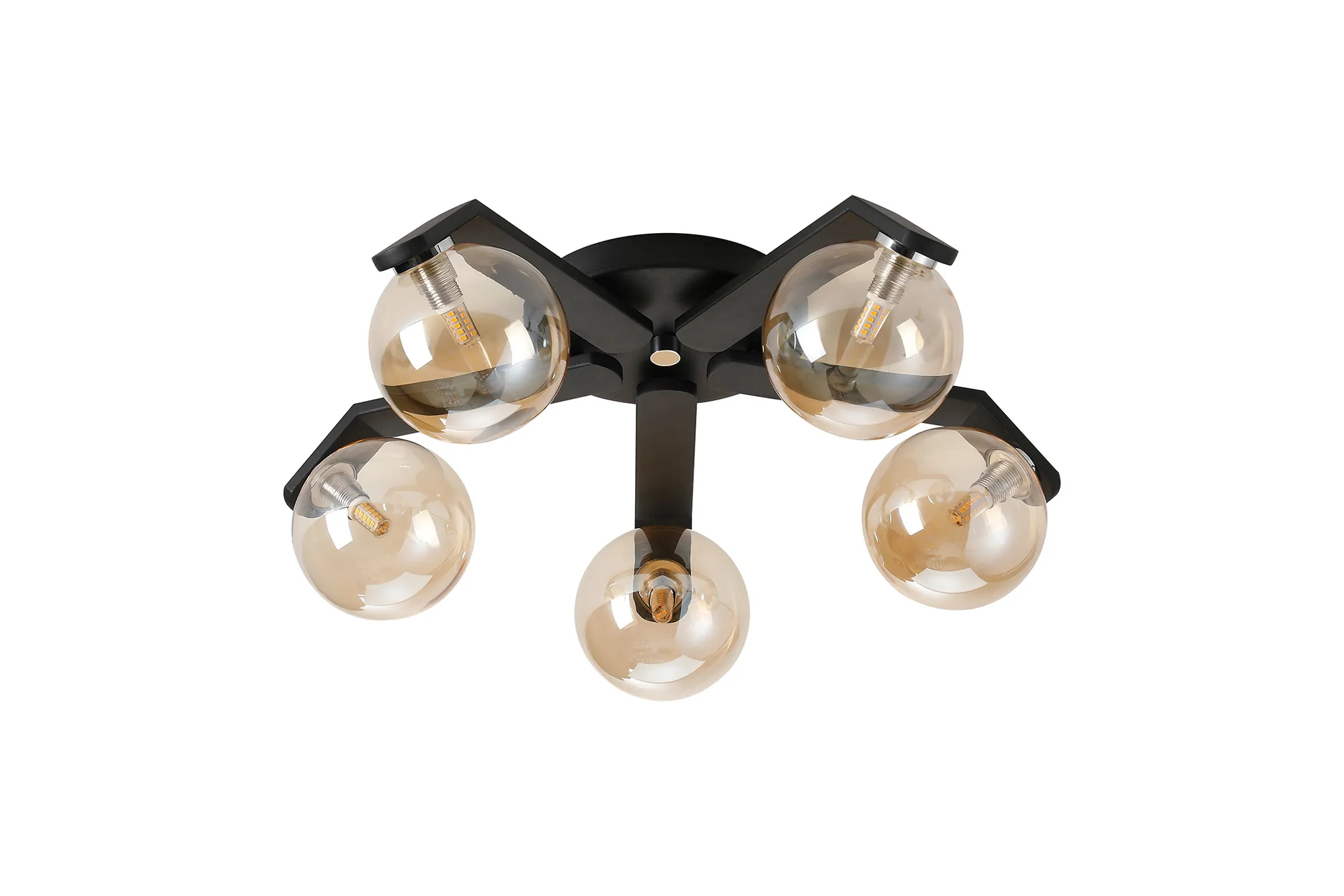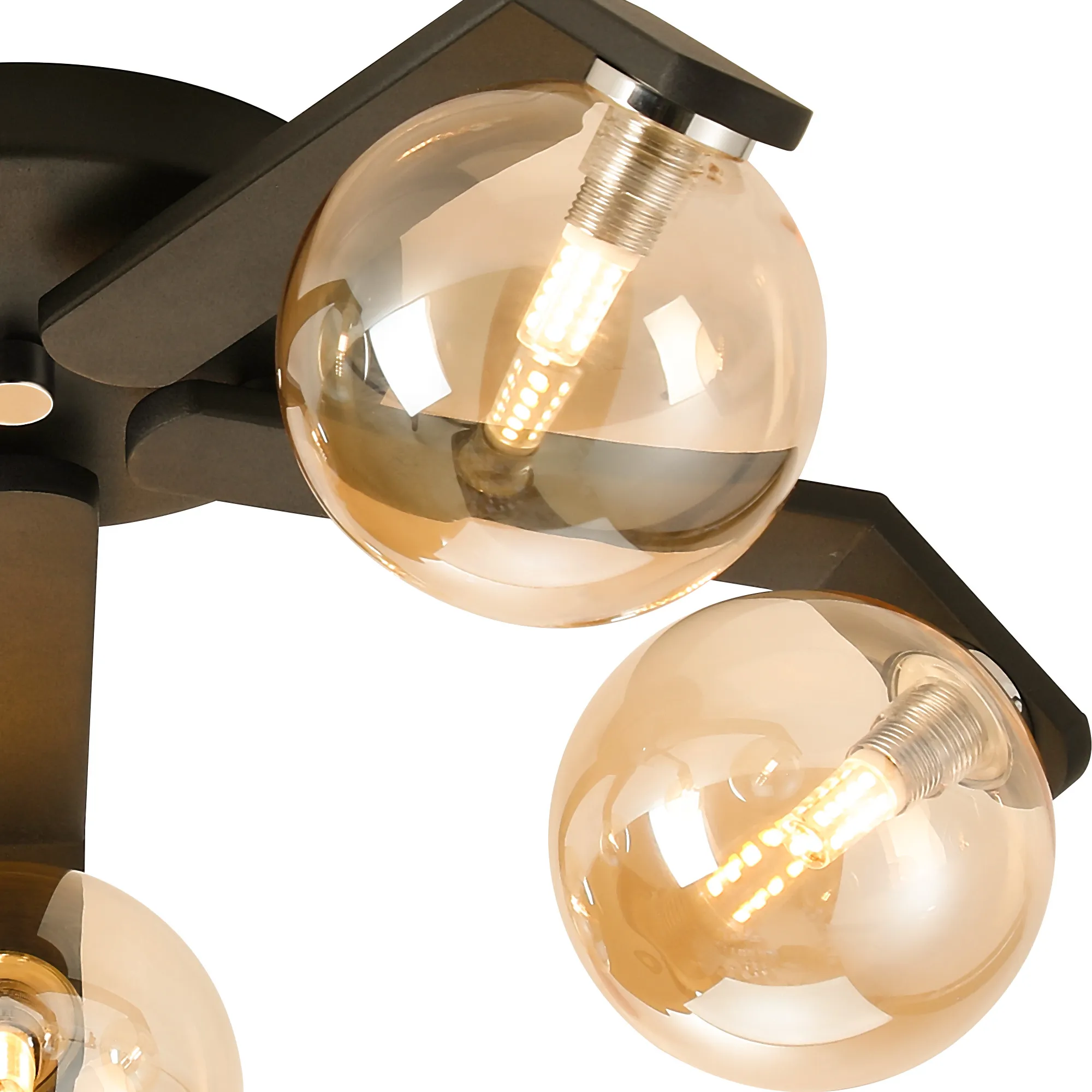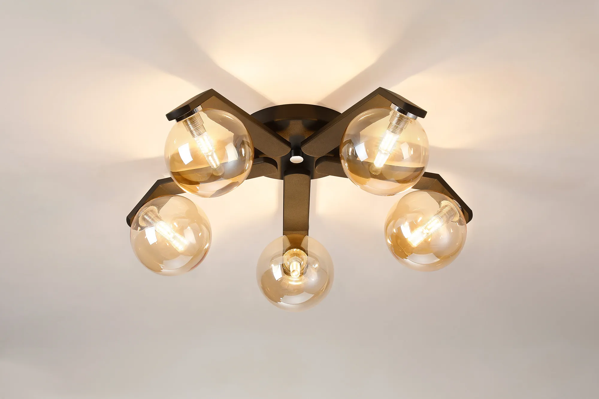 OTHER Campbell Flush Ceiling, 5 x G9, IP44, Black/Polished Chrome/Amber Smooth Round Glass