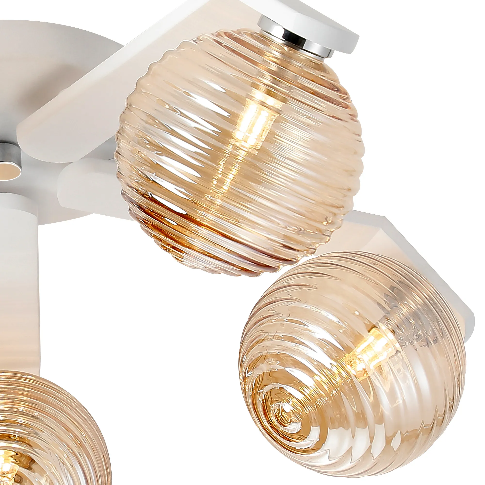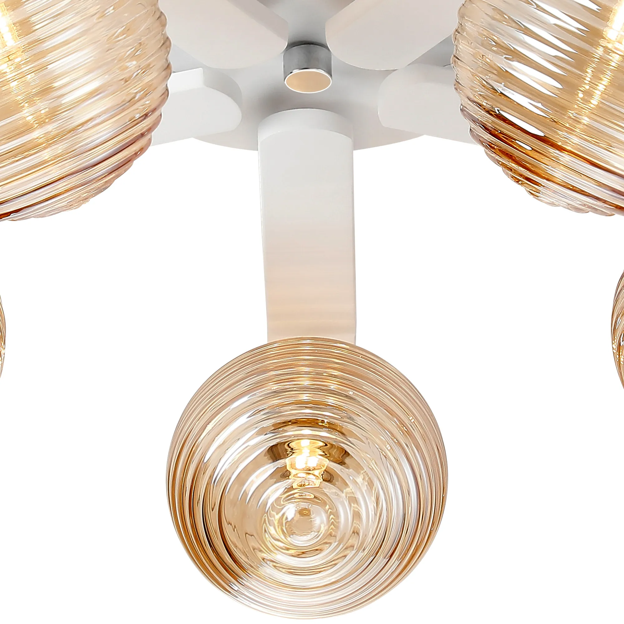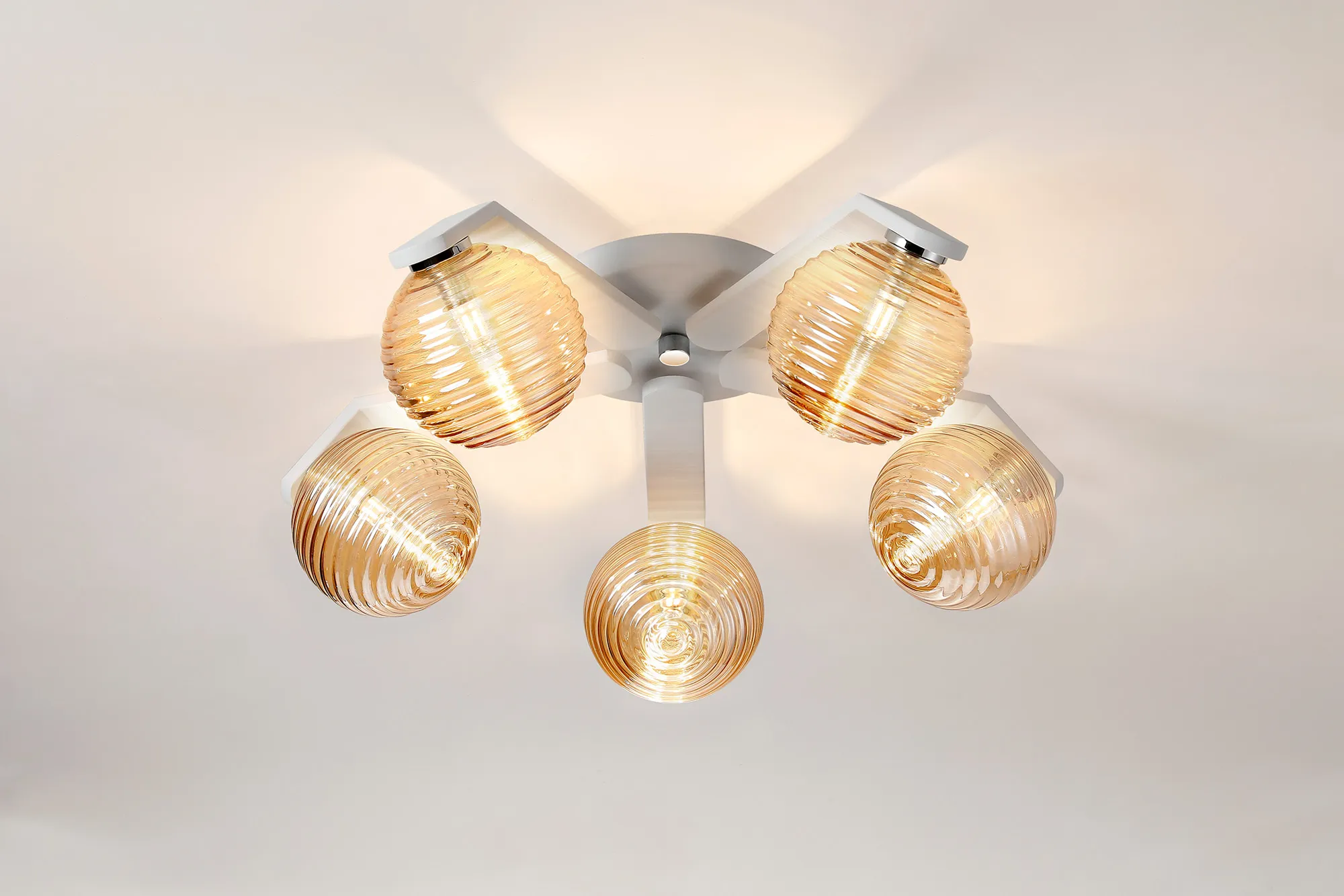 OTHER Campbell Flush Ceiling, 5 x G9, IP44, White/Polished Chrome/Amber Ribbed Round Glass