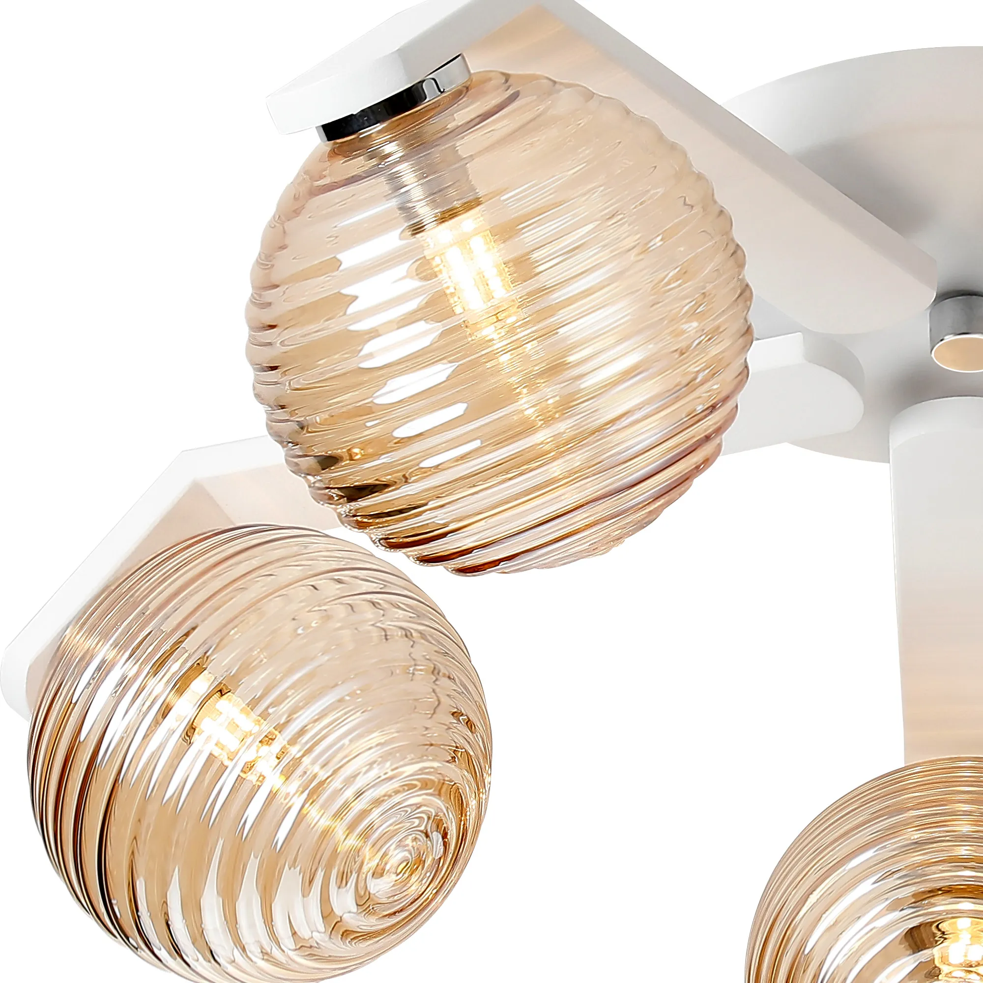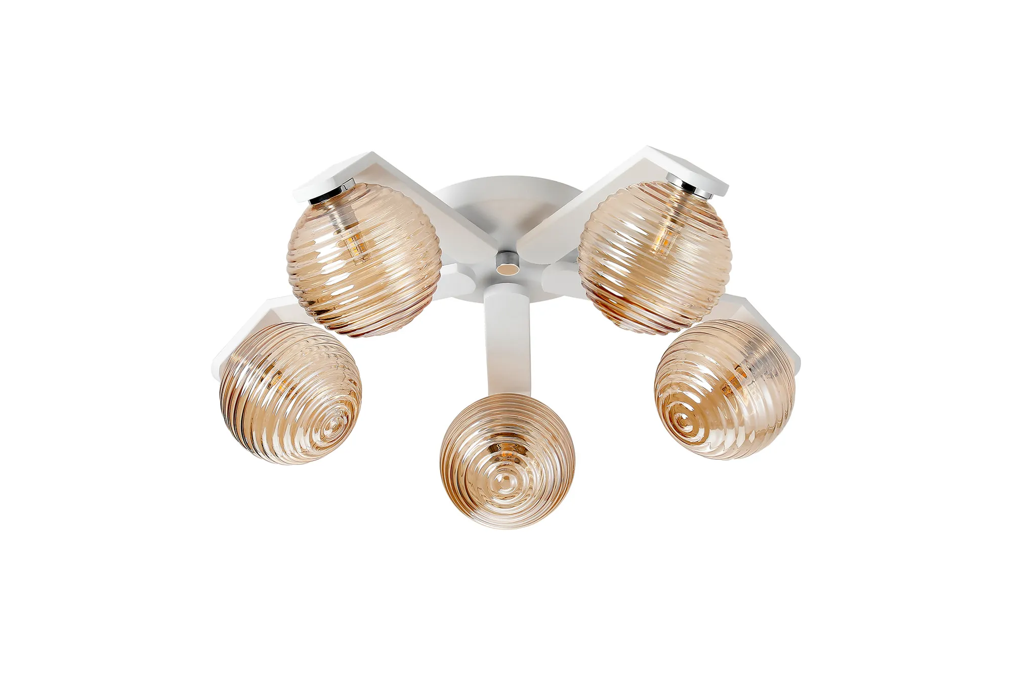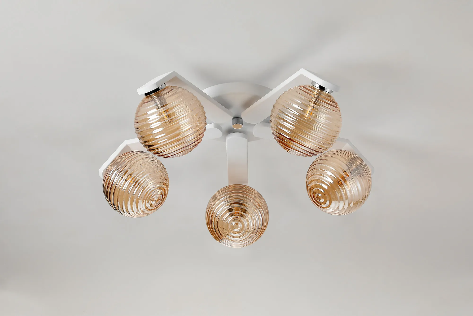 OTHER Campbell Flush Ceiling, 5 x G9, IP44, White/Polished Chrome/Amber Ribbed Round Glass