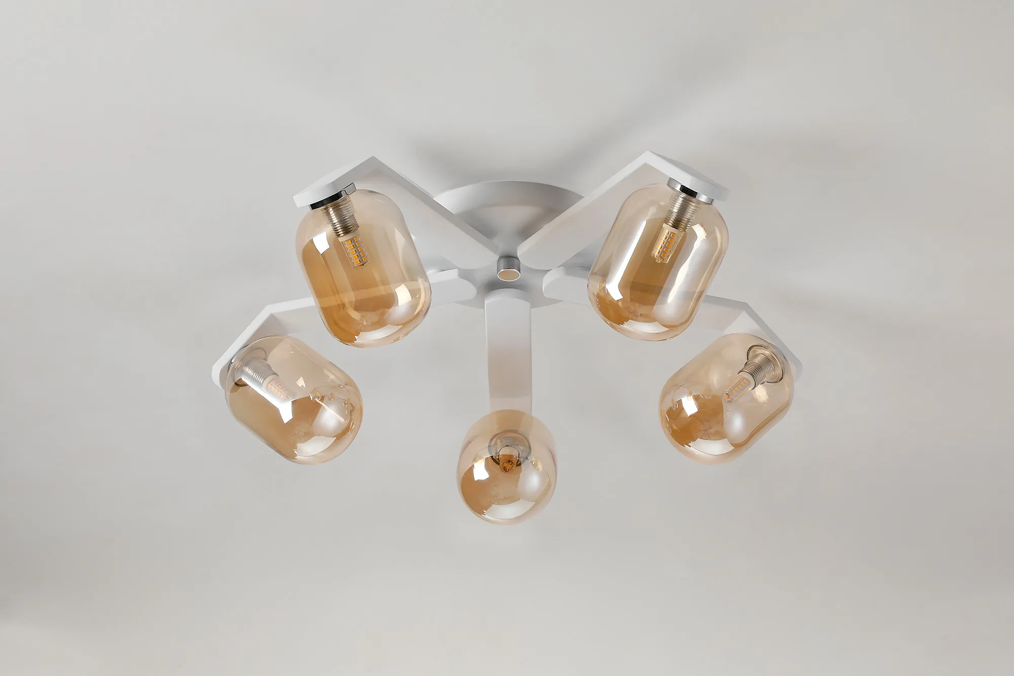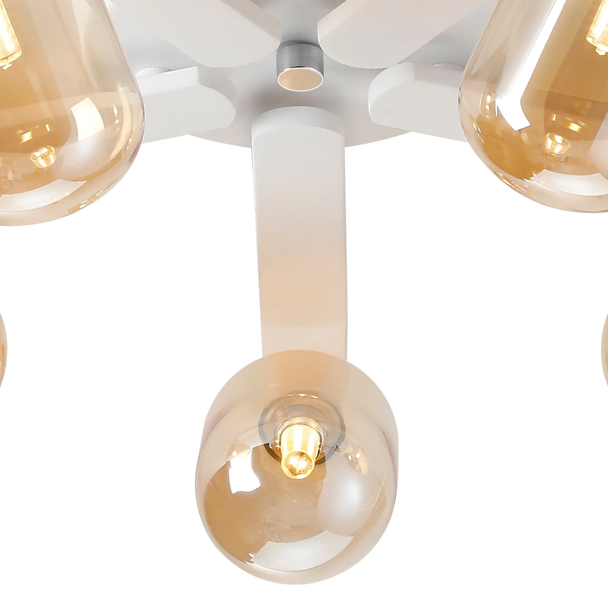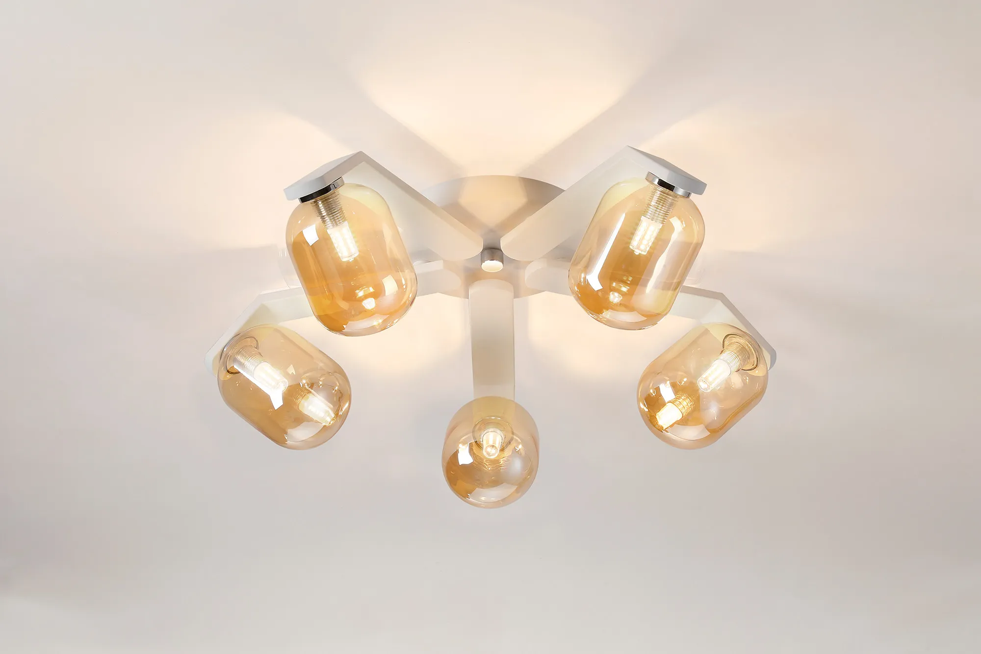 OTHER Campbell Flush Ceiling, 5 x G9, IP44, White/Polished Chrome/Amber Smooth Tubular Glass