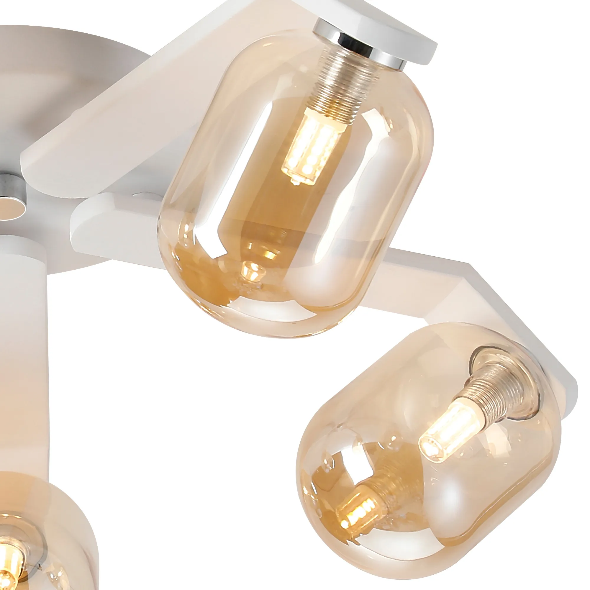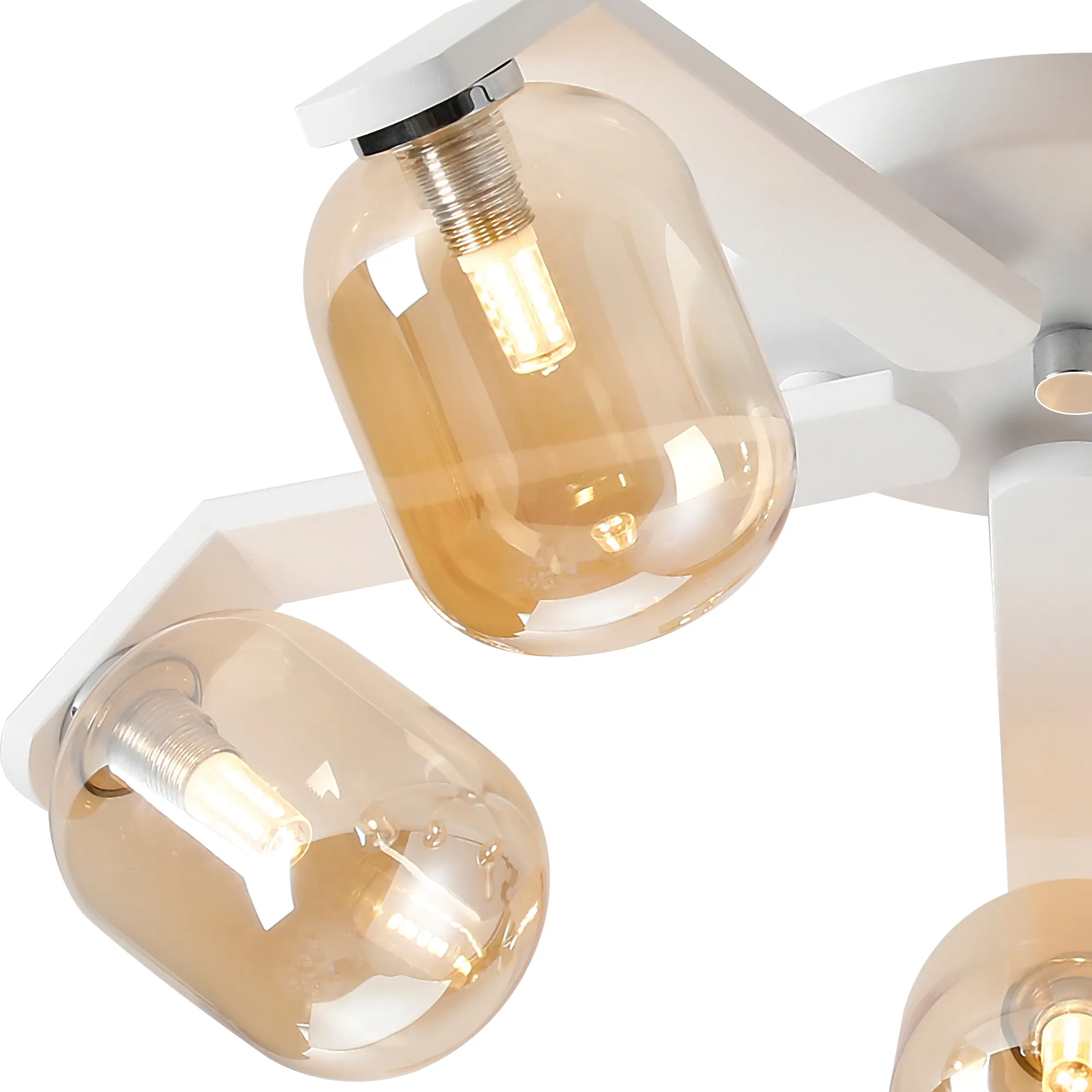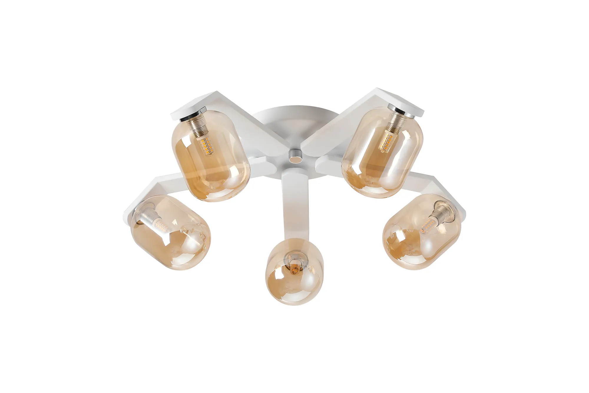 OTHER Campbell Flush Ceiling, 5 x G9, IP44, White/Polished Chrome/Amber Smooth Tubular Glass