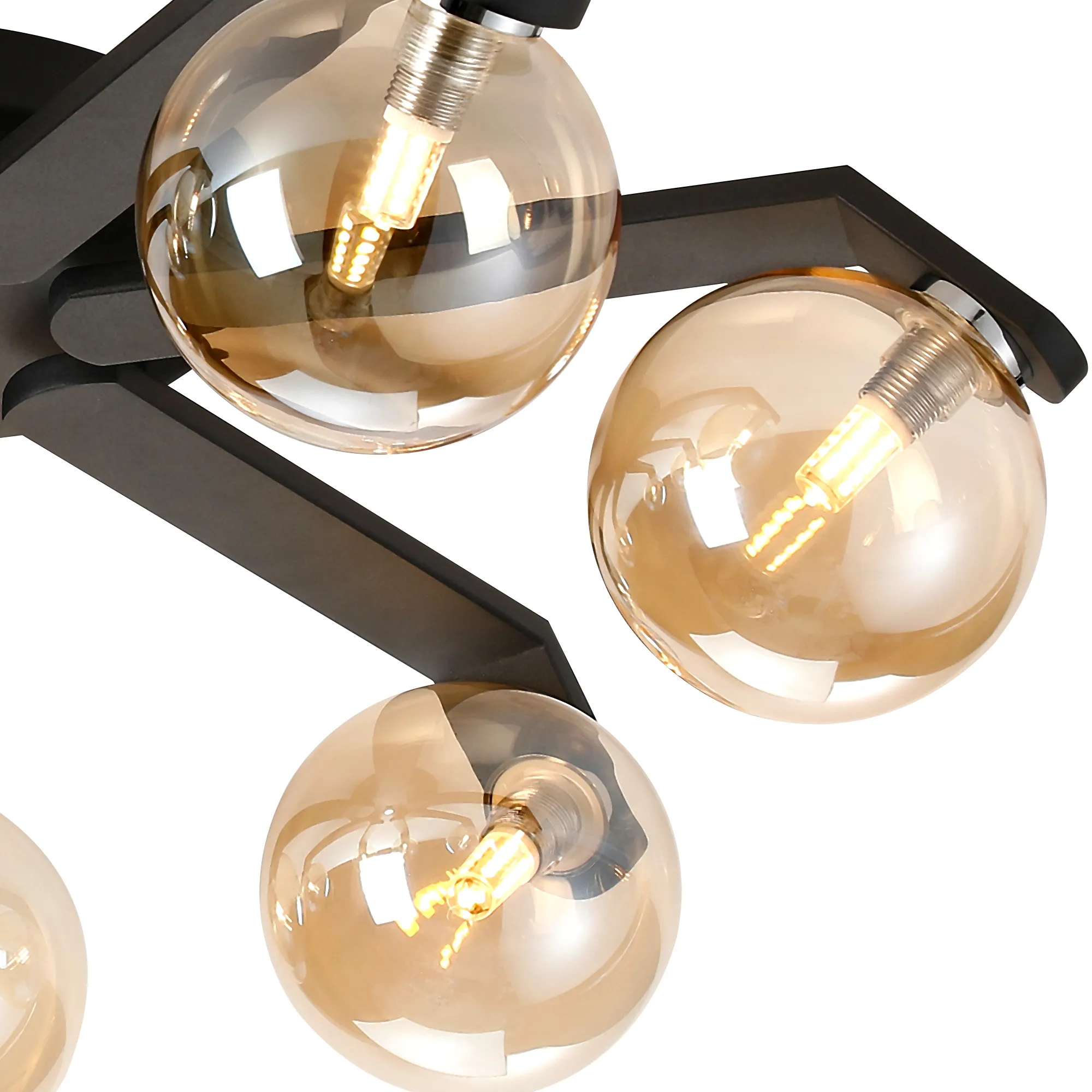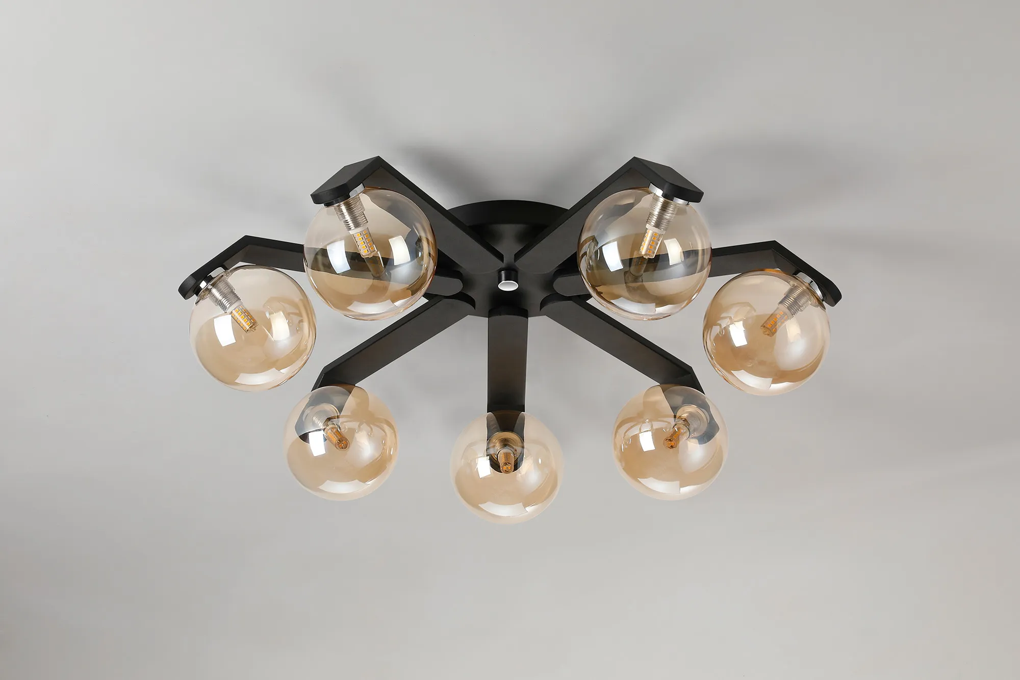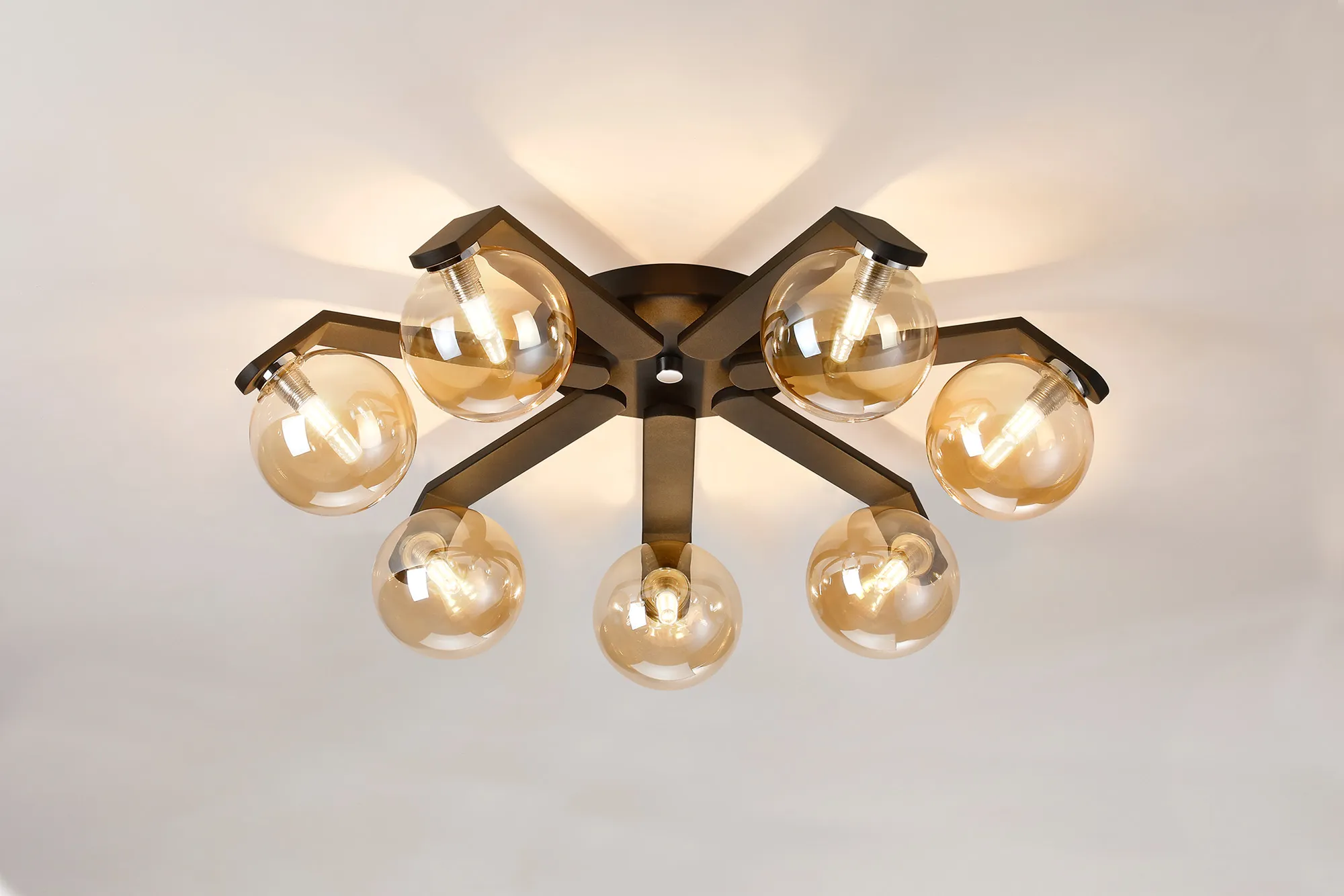 OTHER Campbell Flush Ceiling, 8 x G9, IP44, Black/Polished Chrome/Amber Smooth Round Glass