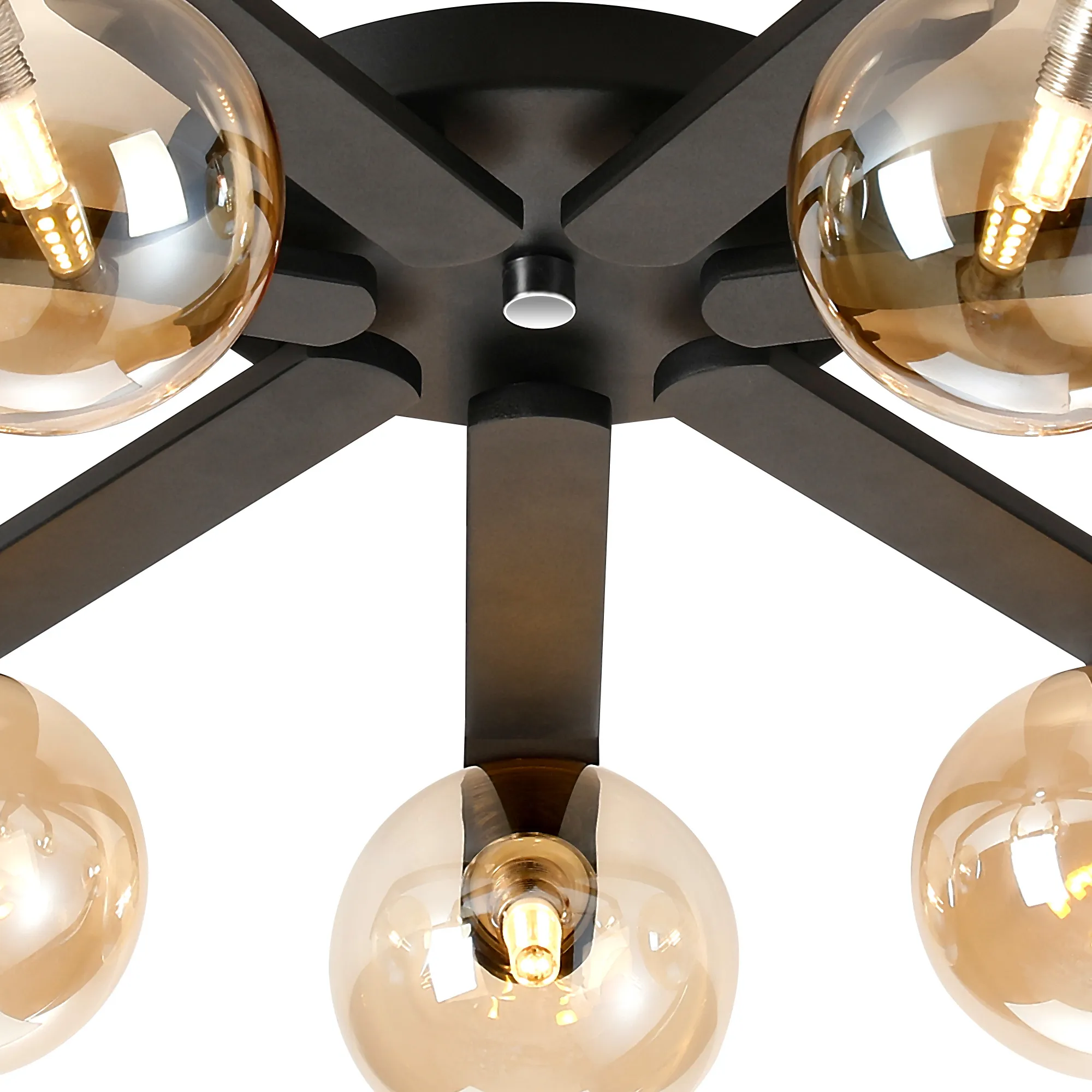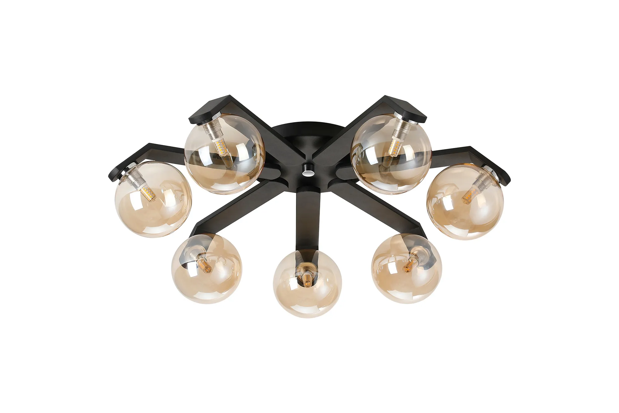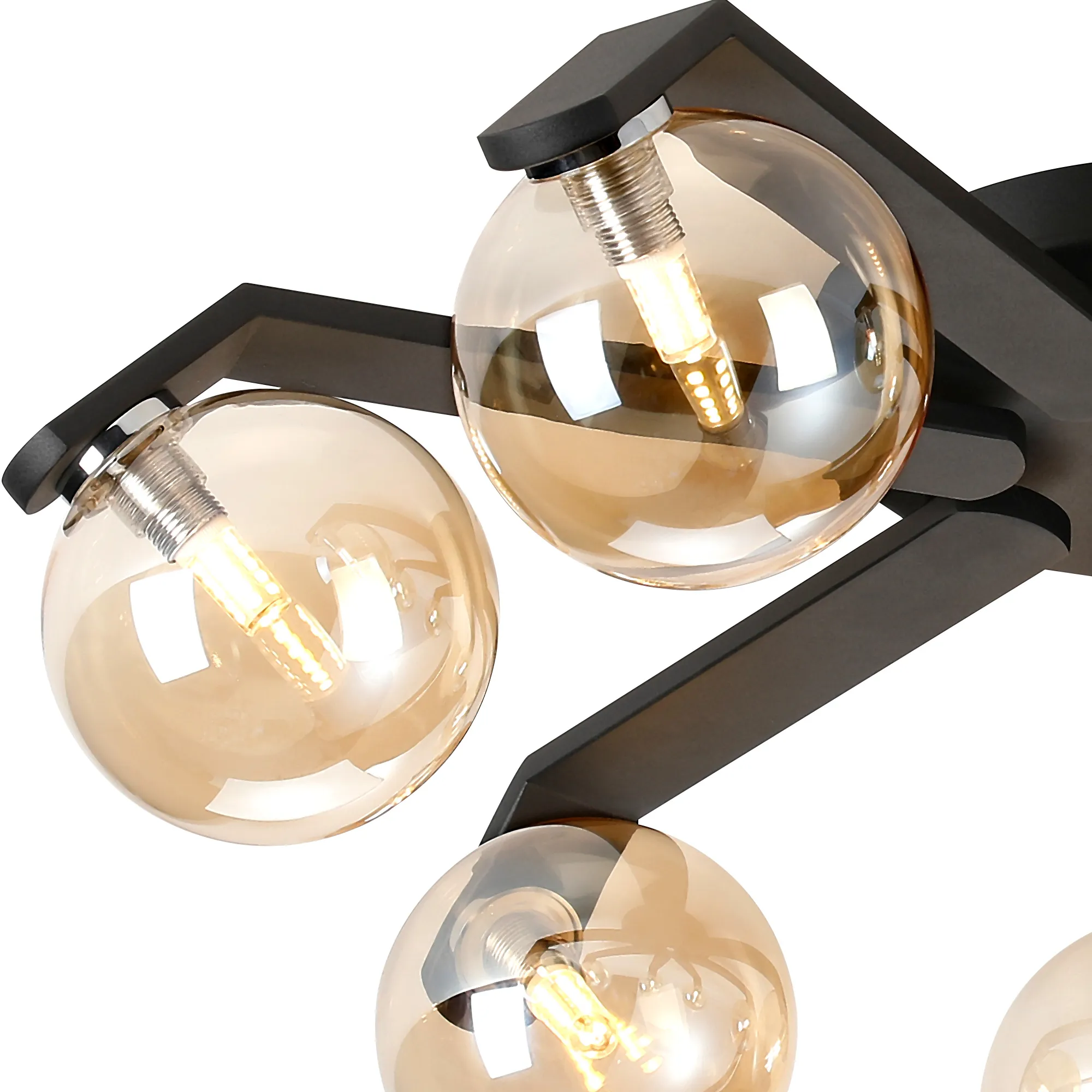 OTHER Campbell Flush Ceiling, 8 x G9, IP44, Black/Polished Chrome/Amber Smooth Round Glass