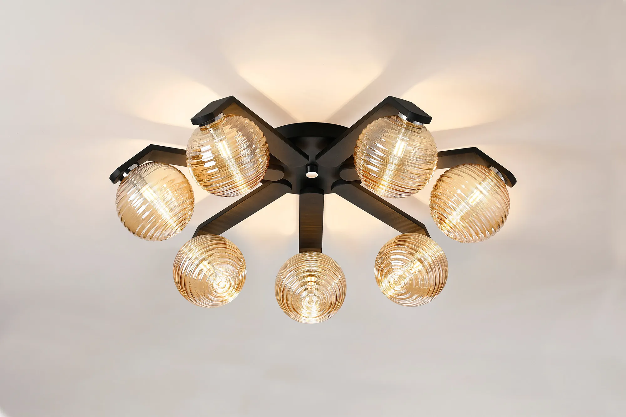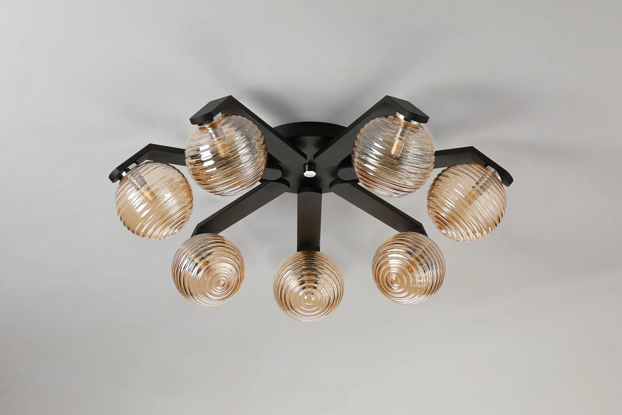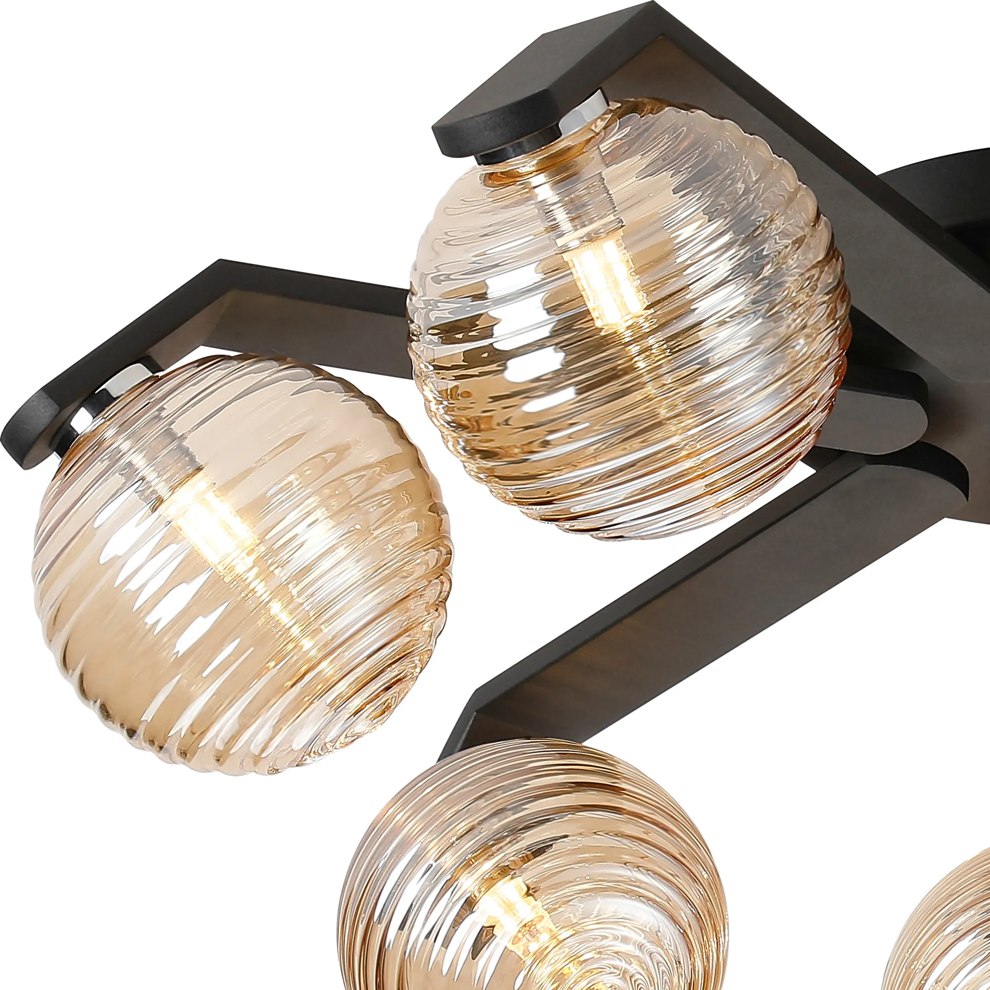 Discover the distinctive Campbell collection, this range features G9 IP44 flush ceiling fixtures, offered in configurations of 3, 5, or 7 lights, alongside coordinating wall lamps. The table lamp in this range is not IP rated but seamlessly complements the other designs. Choose from a striking palette of black or white finishes, complemented by an array of glass shades in hues of amber, clear, smoked, brown, or grey, each boasting its own unique texture. Elevate your space with the versatility and style of the Campbell range.