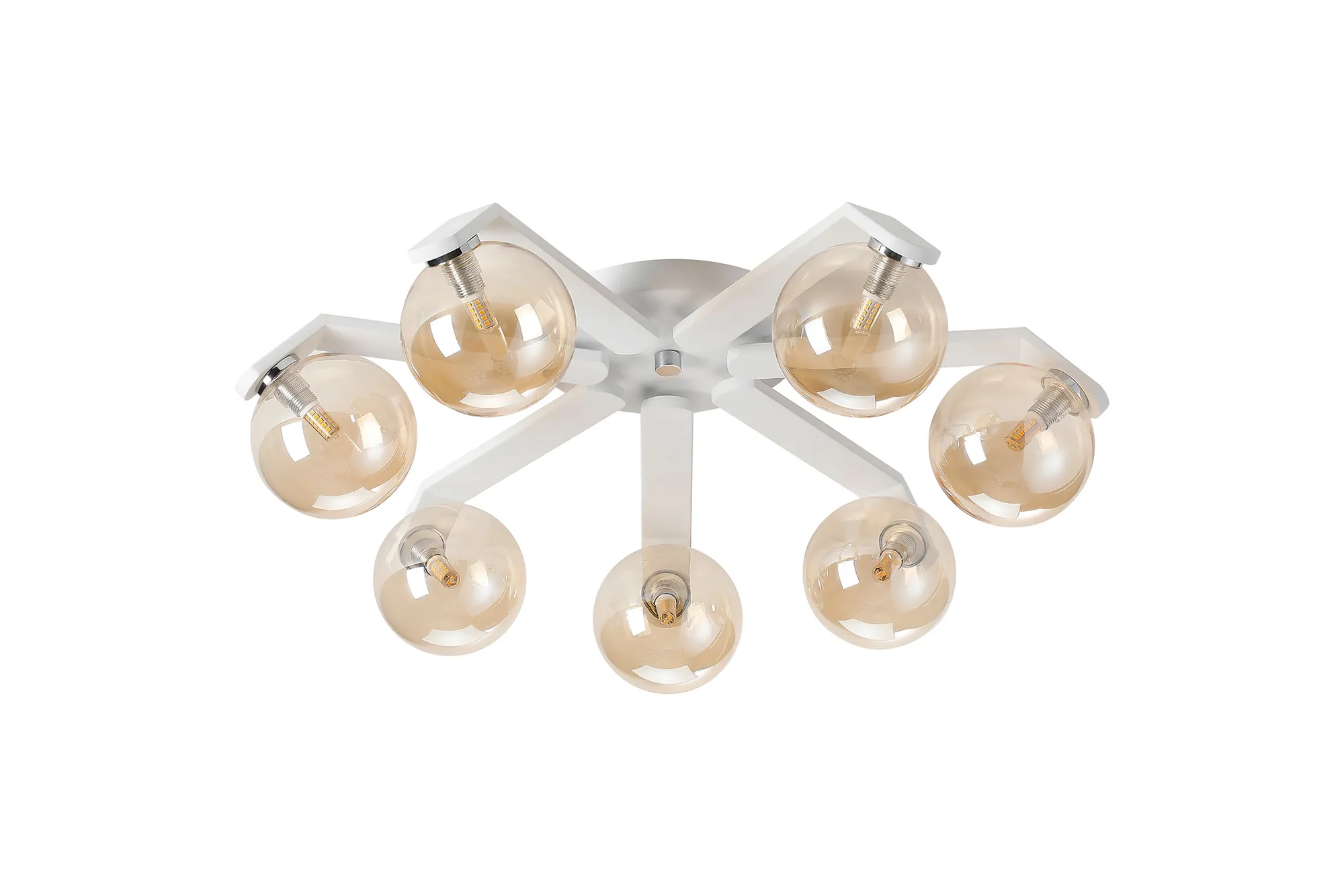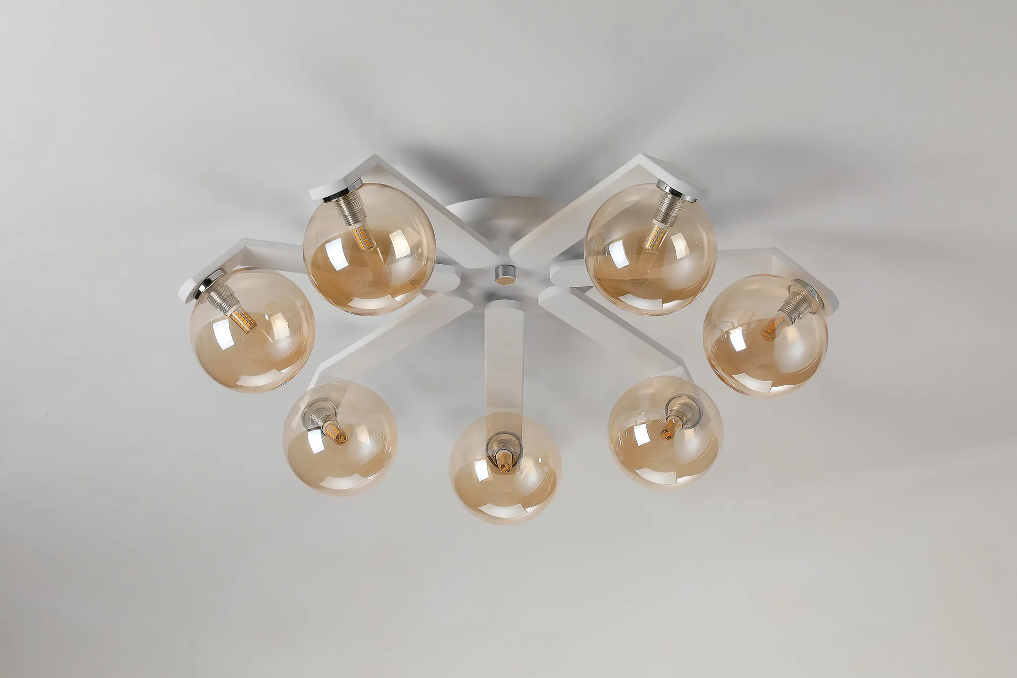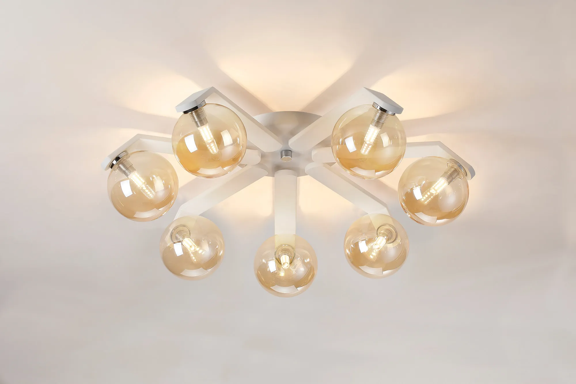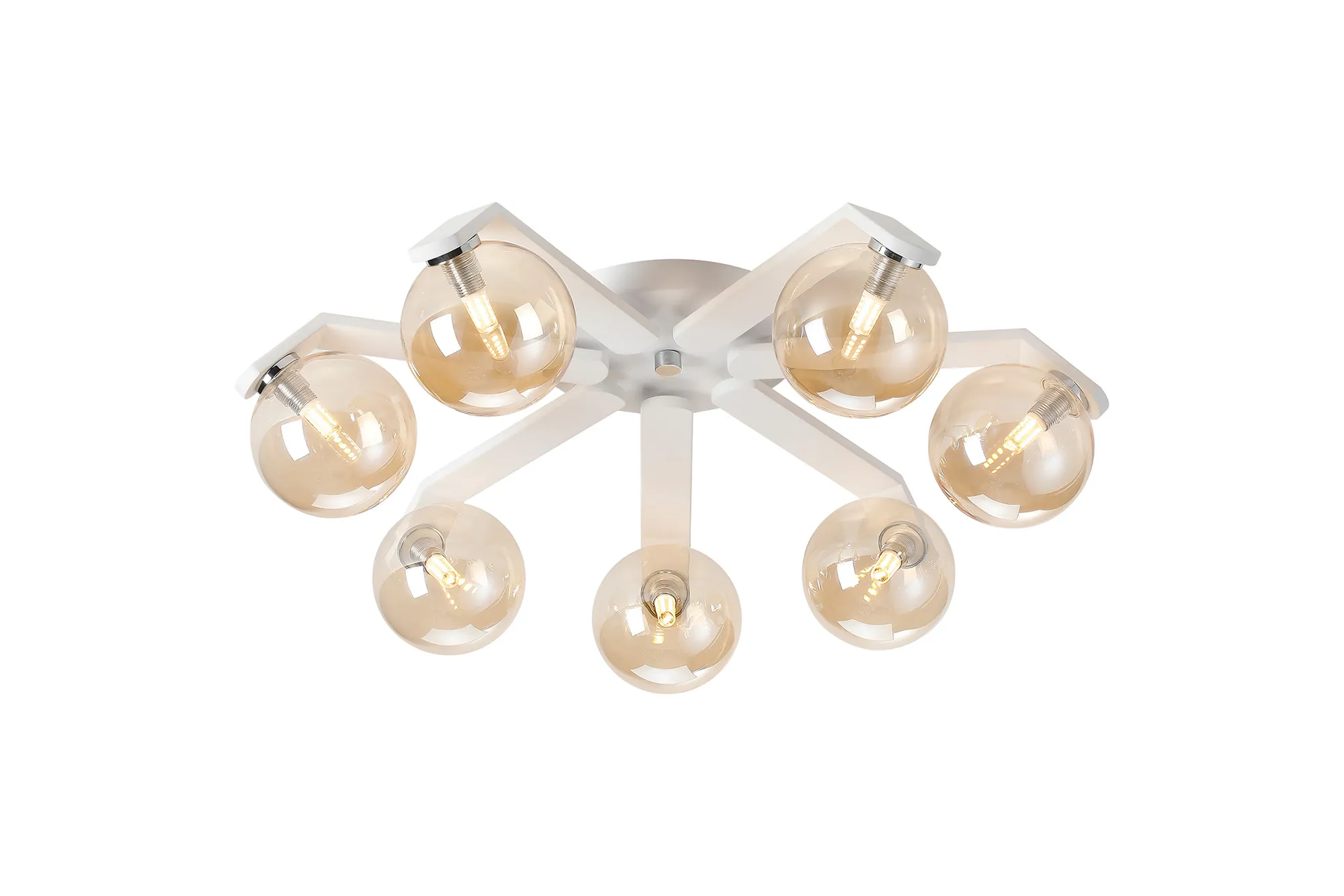 OTHER Campbell Flush Ceiling, 8 x G9, IP44, White/Polished Chrome/Amber Smooth Round Glass