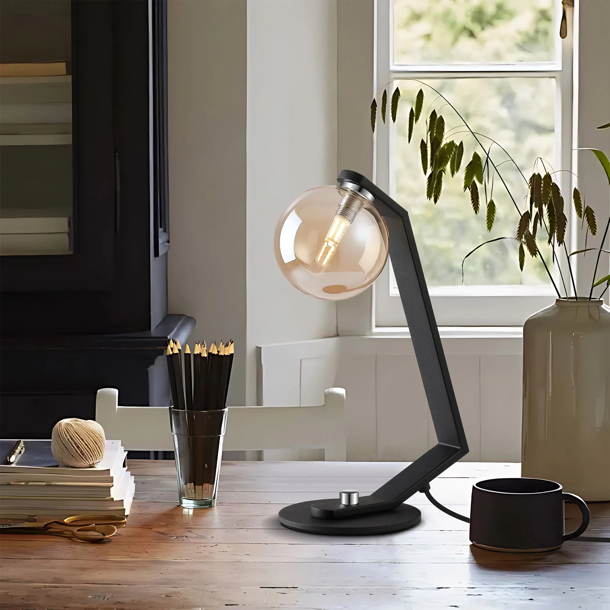 OTHER Campbell Table Lamp, 1 x G9, Black/Polished Chrome/Amber Smooth Round Glass