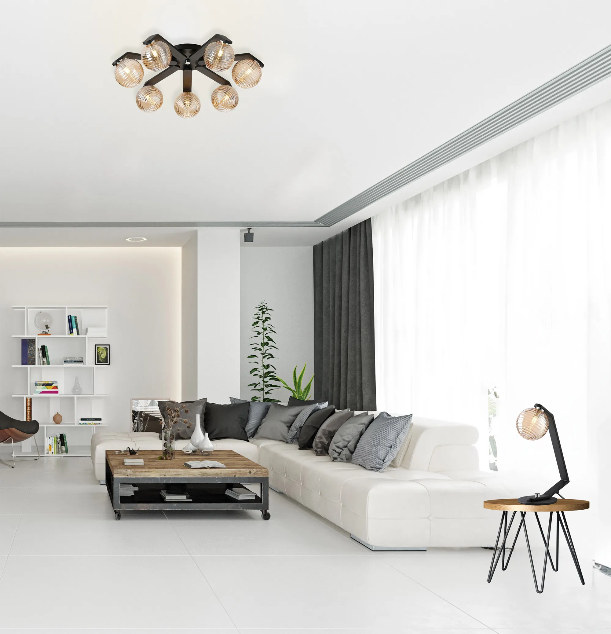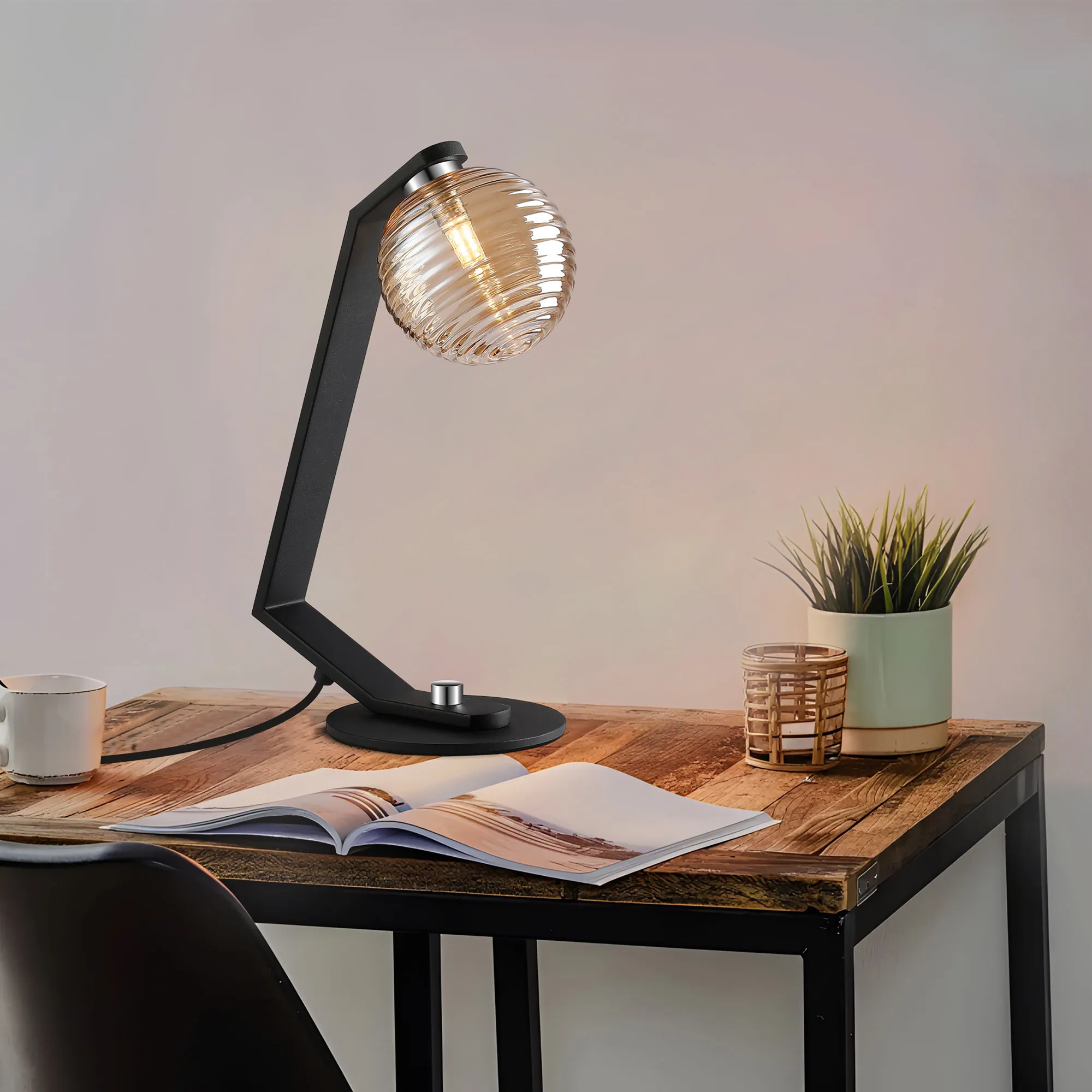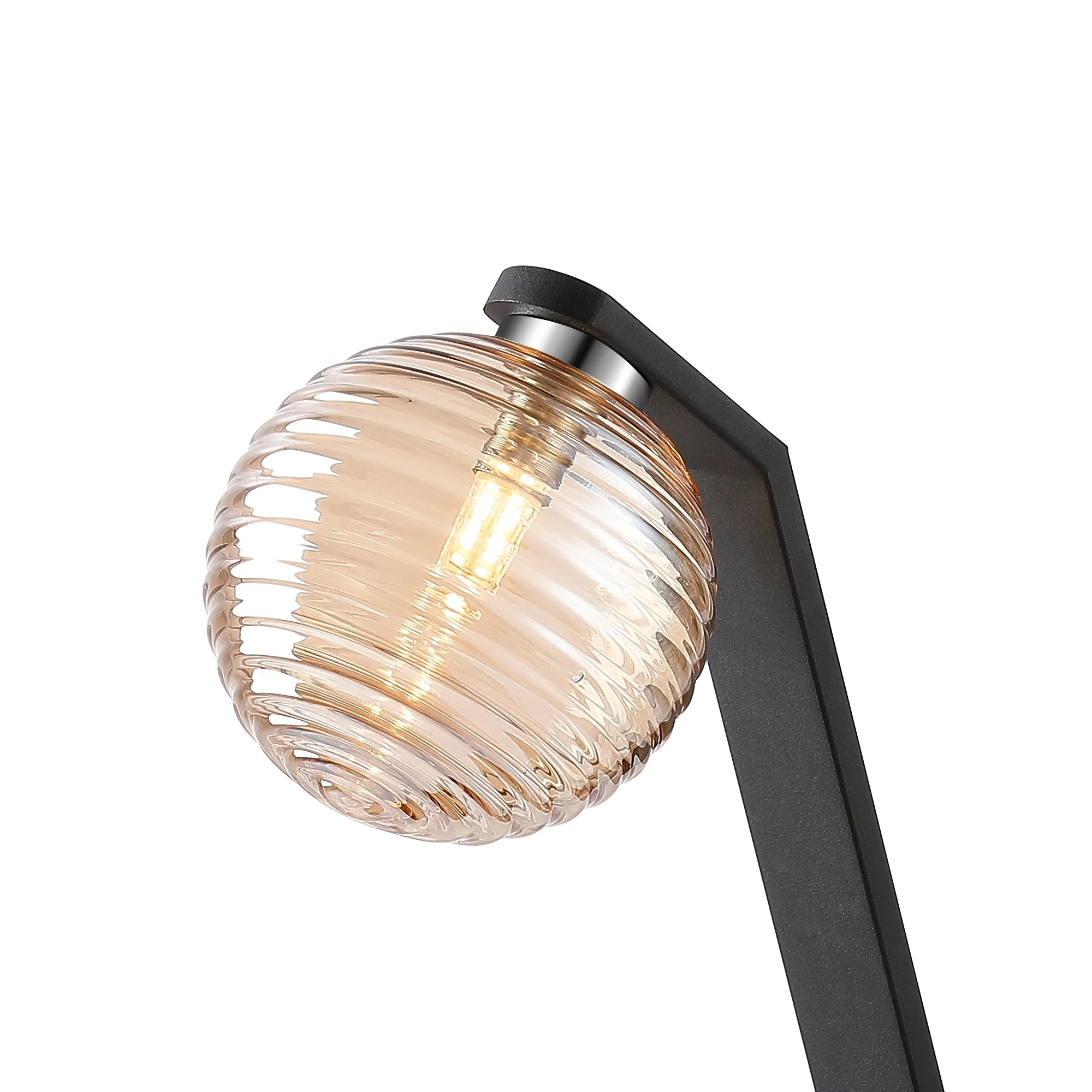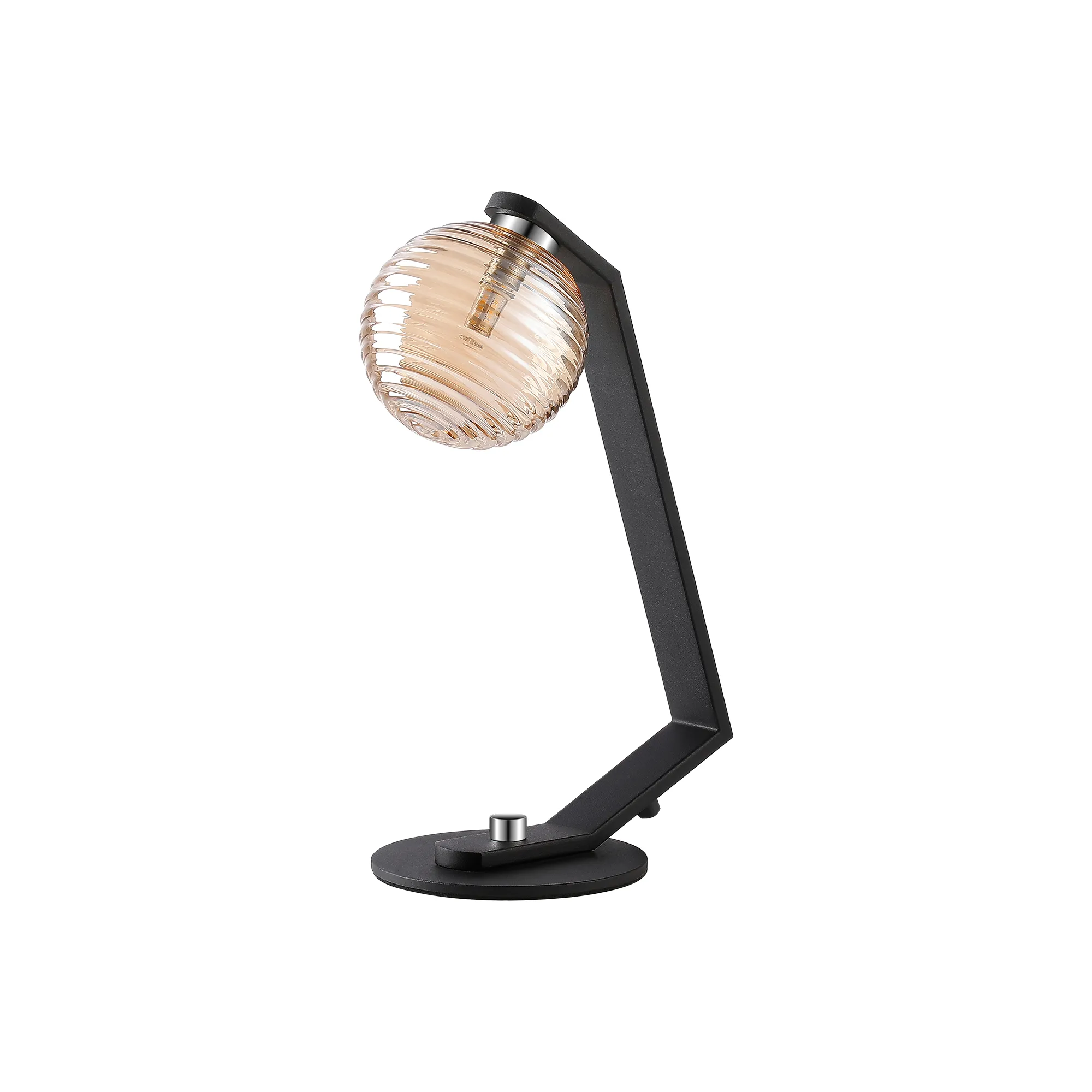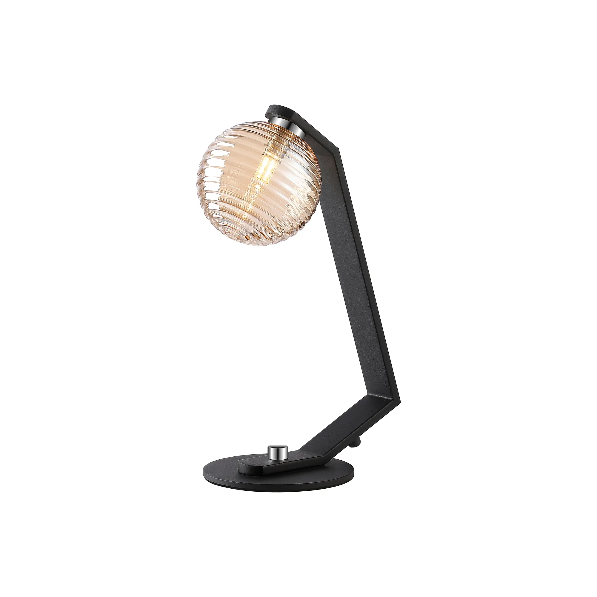 OTHER Campbell Table Lamp, 1 x G9, Black/Polished Chrome/Amber Ribbed Round Glass