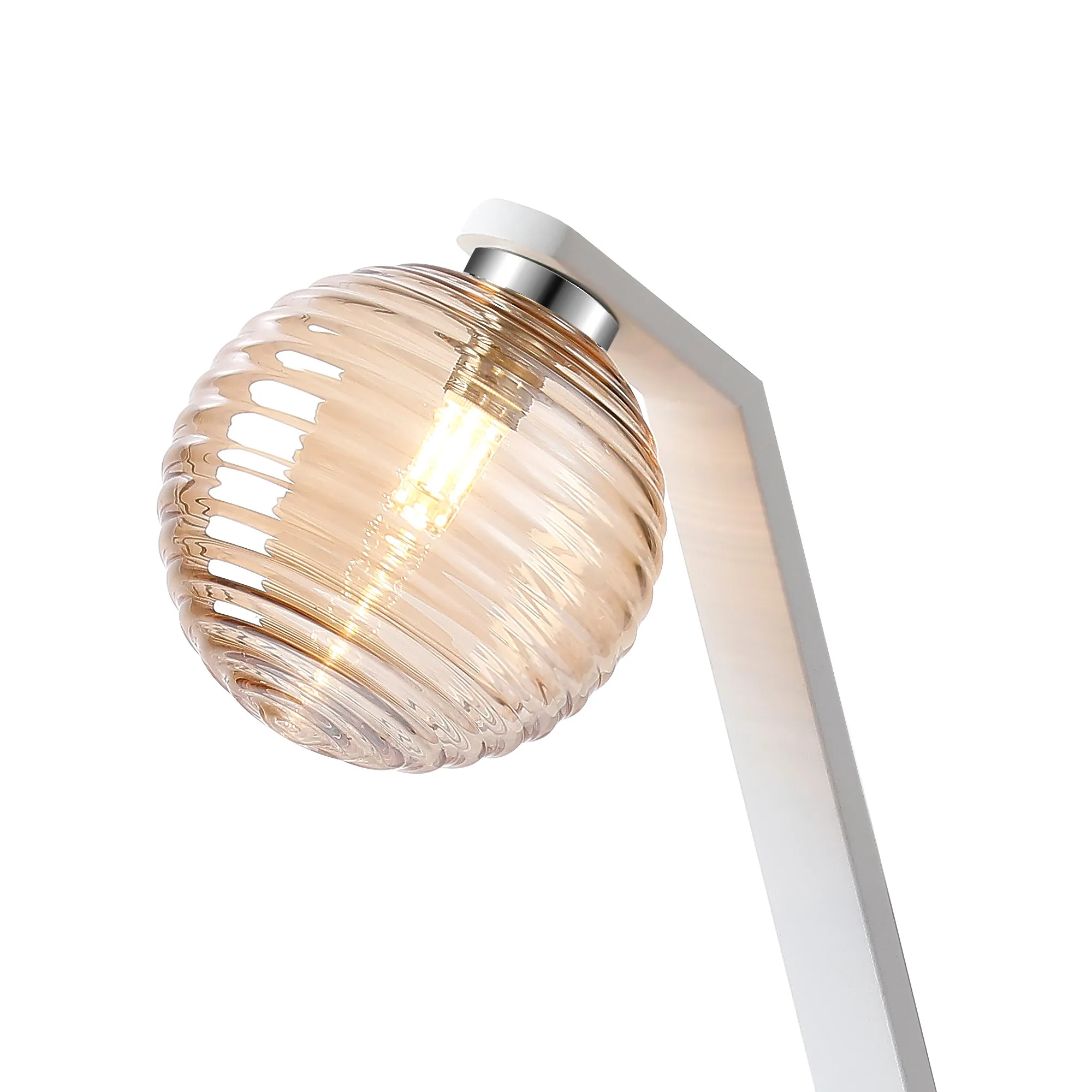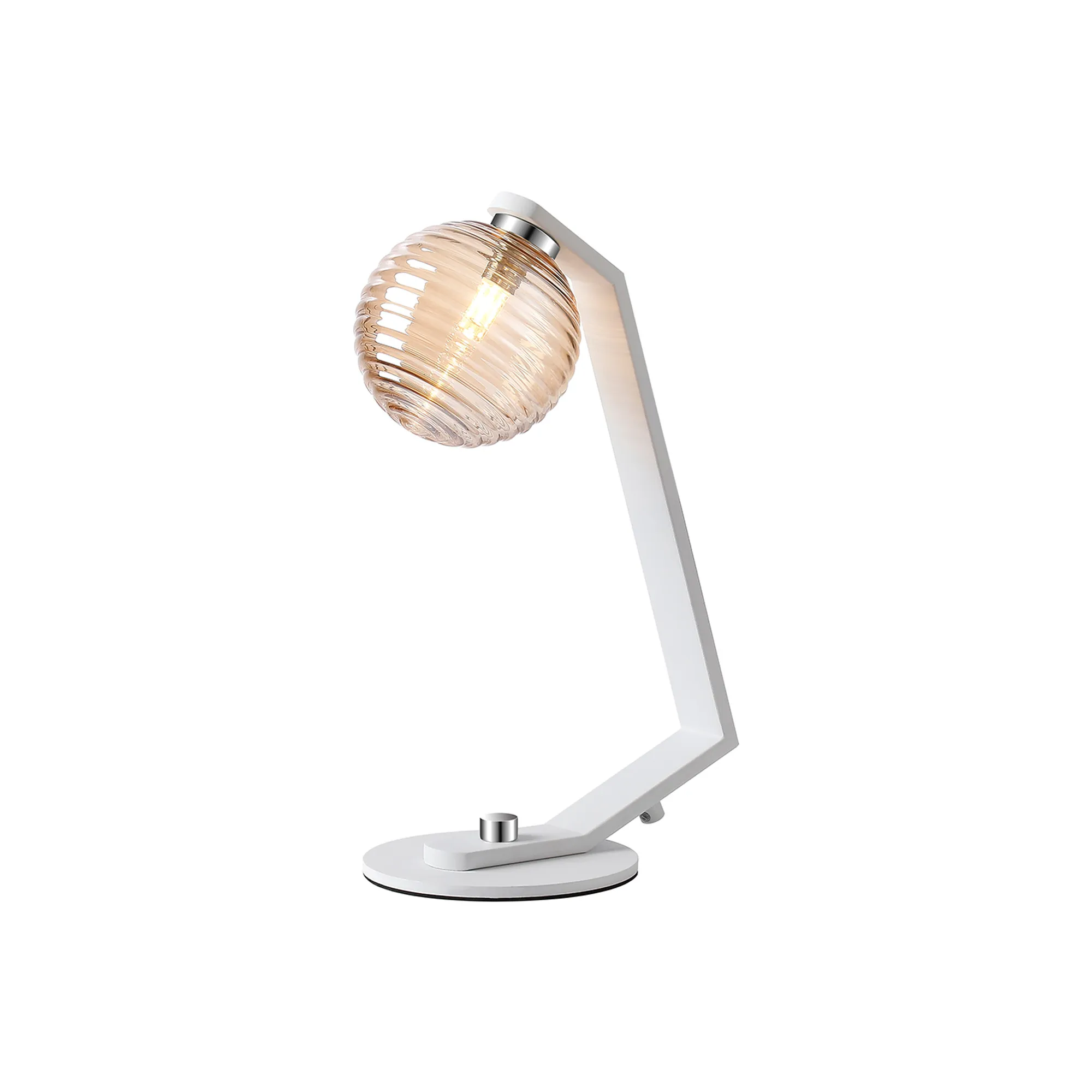 OTHER Campbell Table Lamp, 1 x G9, White/Polished Chrome/Amber Ribbed Round Glass