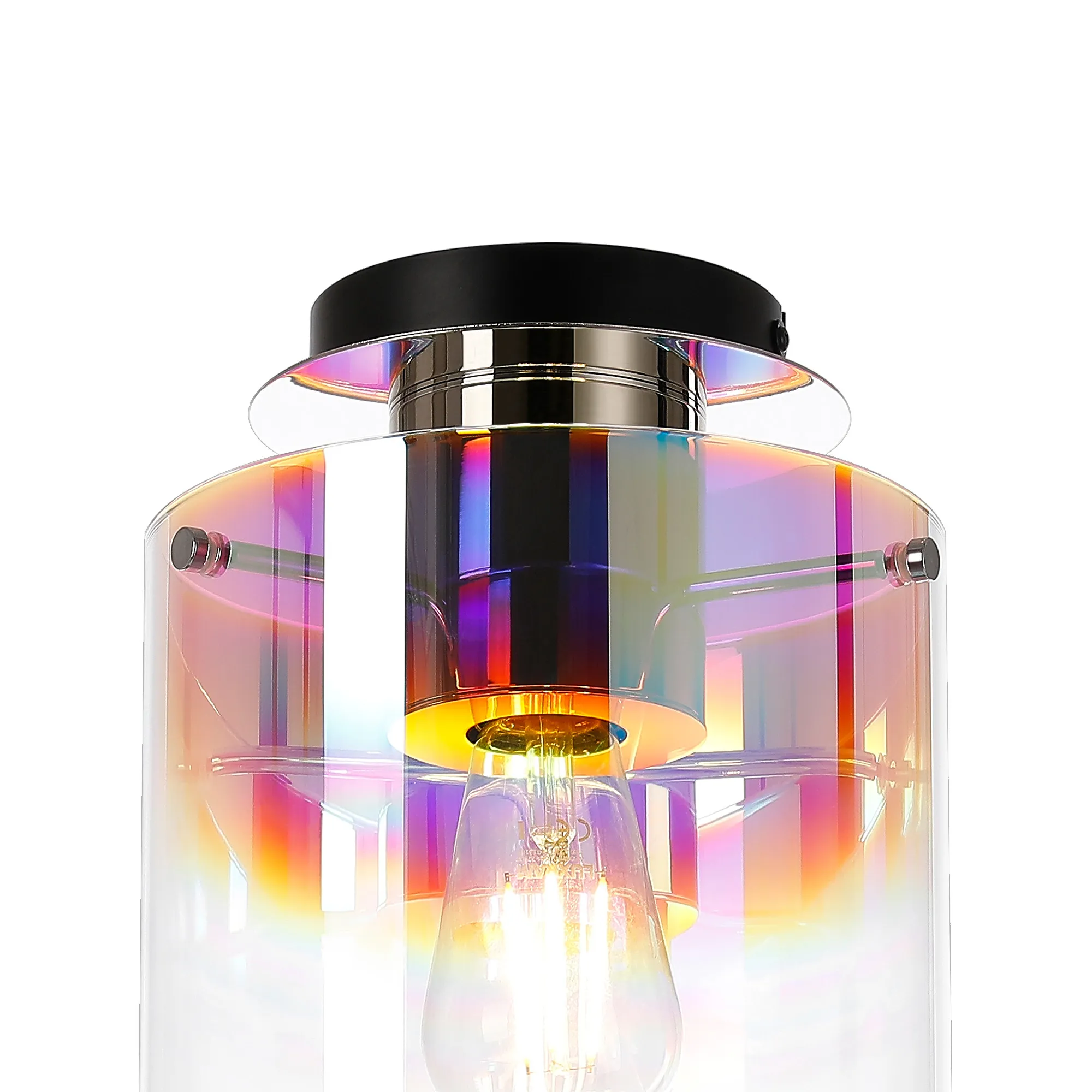 Mangere Single Switched Wall Lamp, 1 Light, E27, Polished Nickel/Black/Iridescent Fade Glass