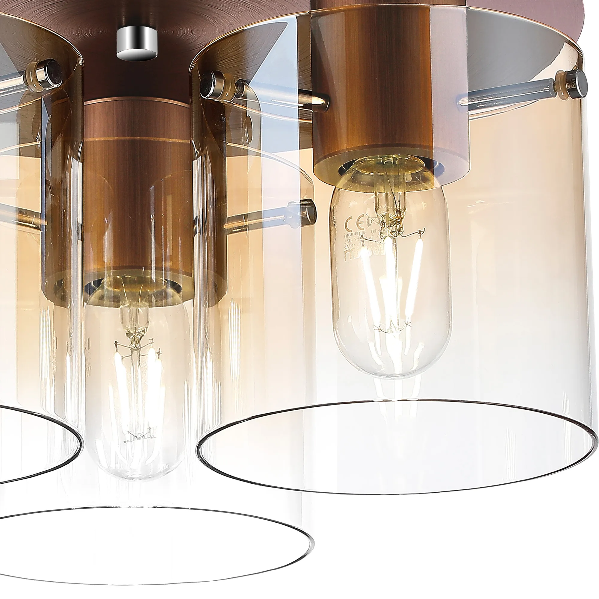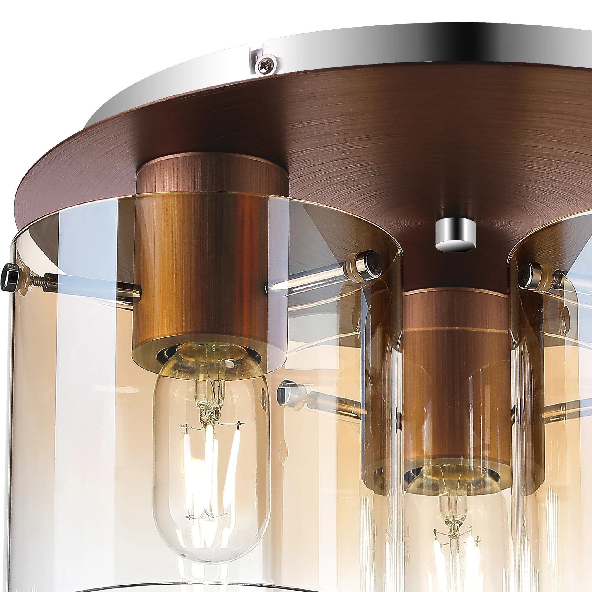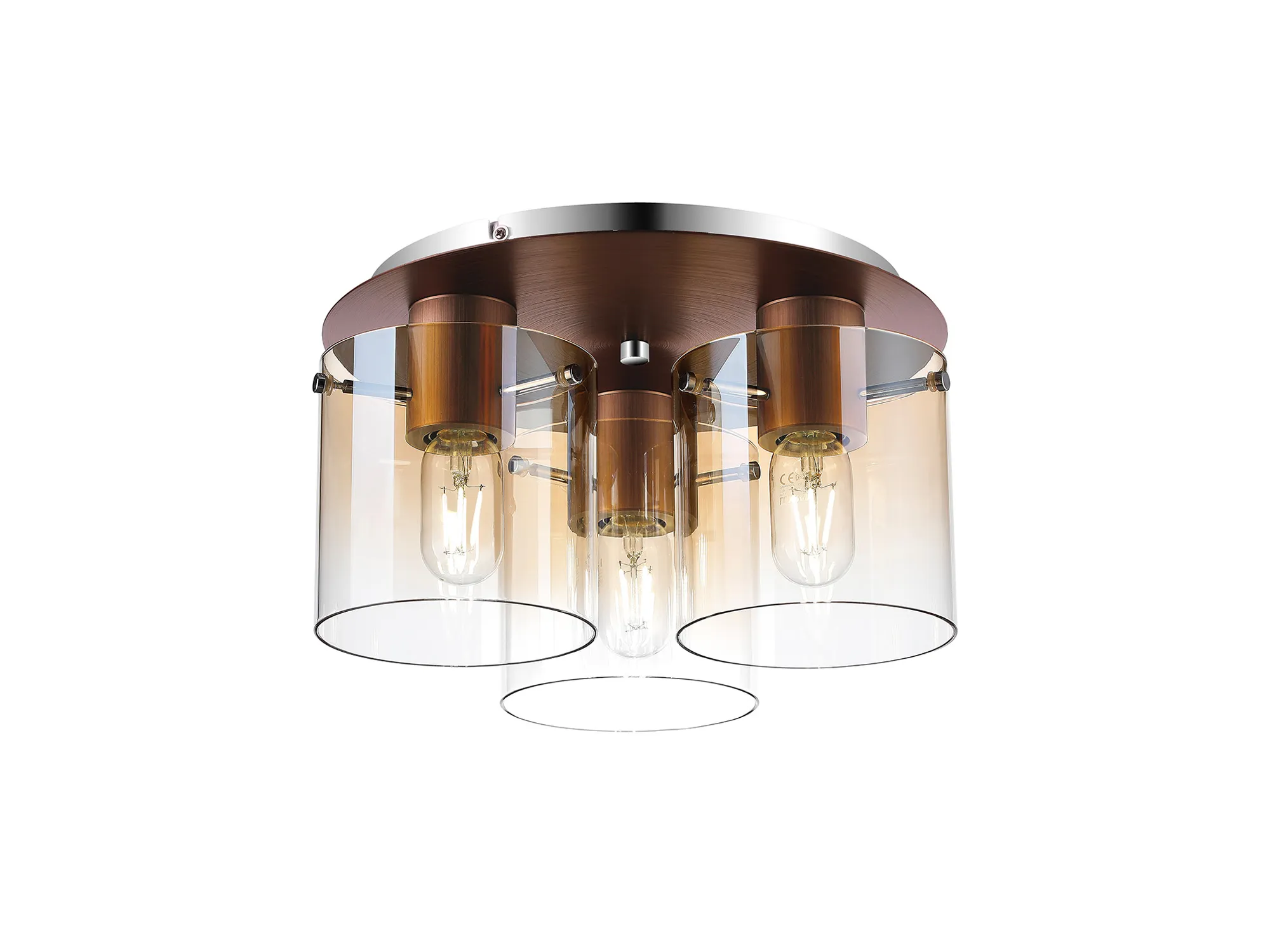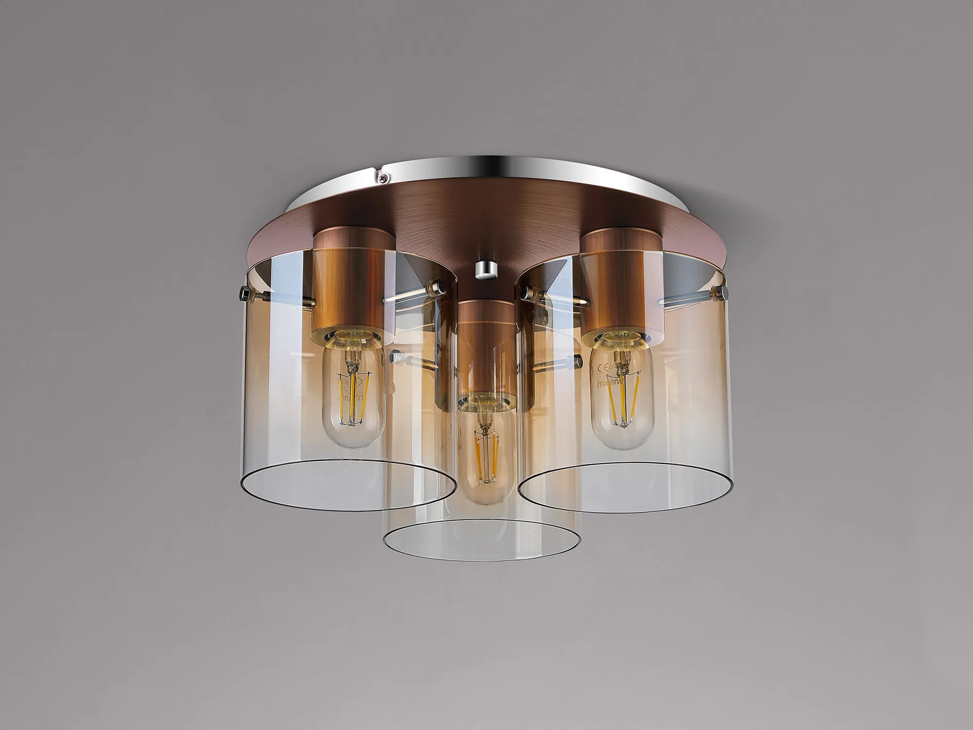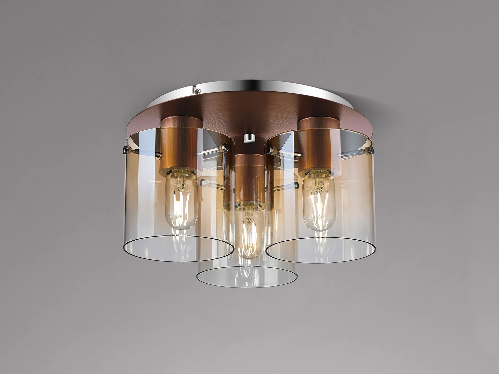 OTHER Mangere Round Ceiling Flush, 3 Light Flush Fitting, Mocha/Amber Fade Glass