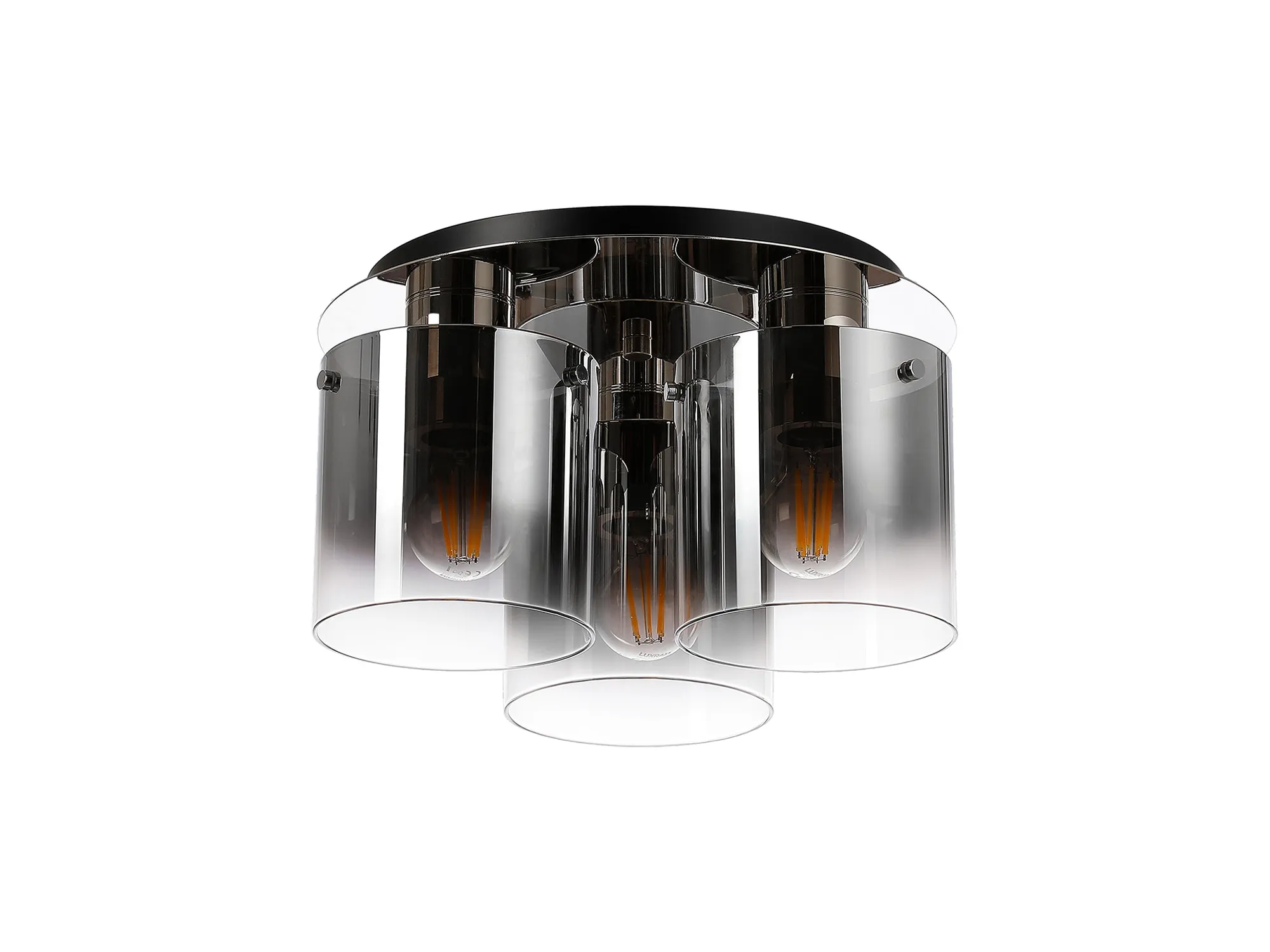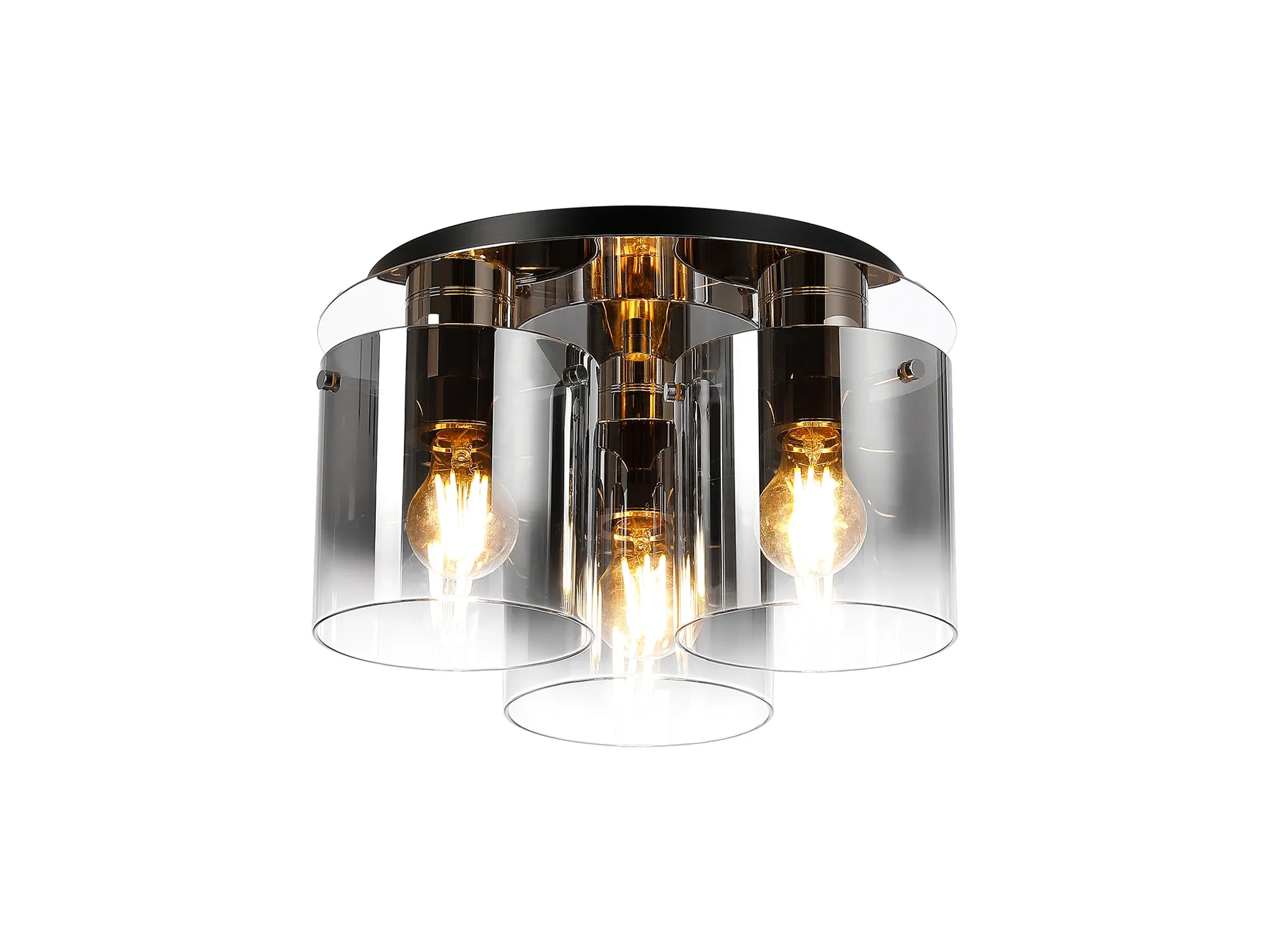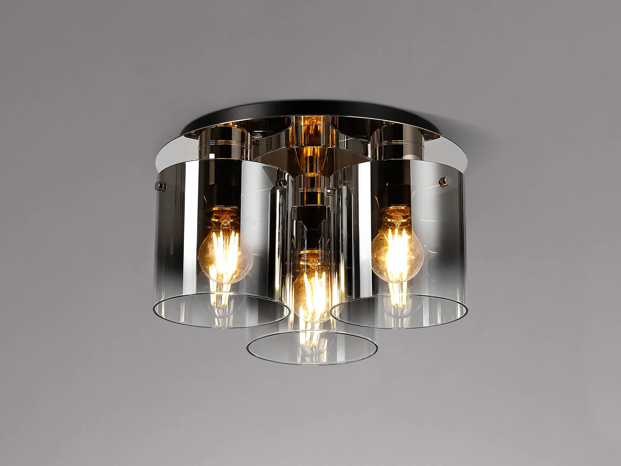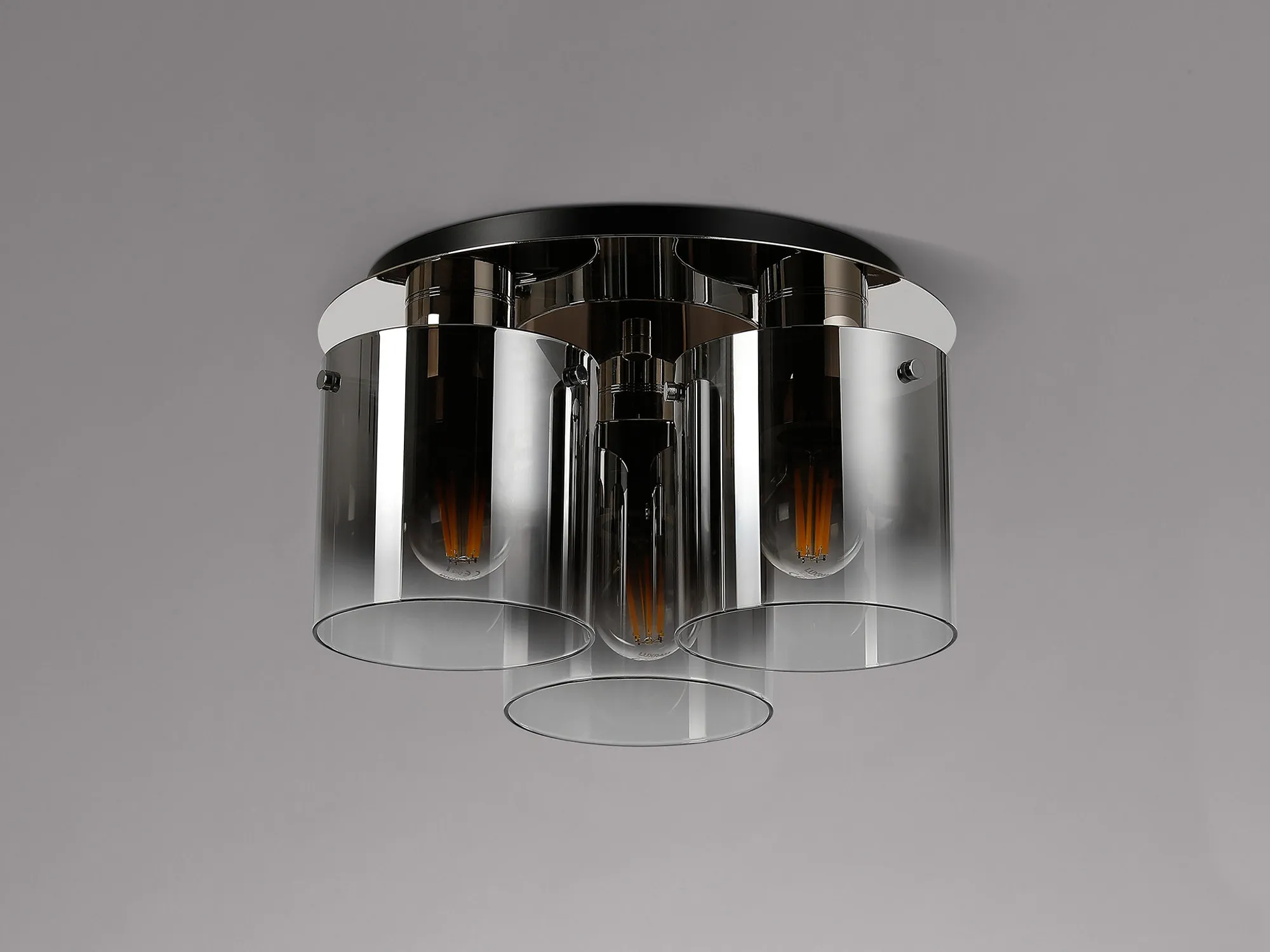 Mangere Round Ceiling Flush, 1 Light Flush Fitting E27, Polished Nickel/Black/Smoke Fade Glass