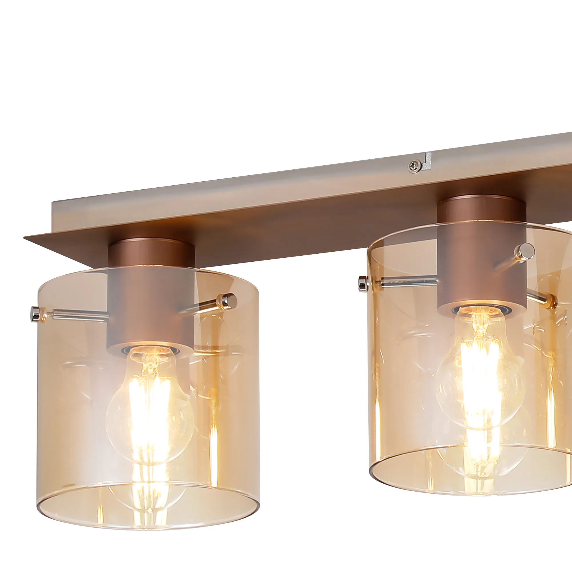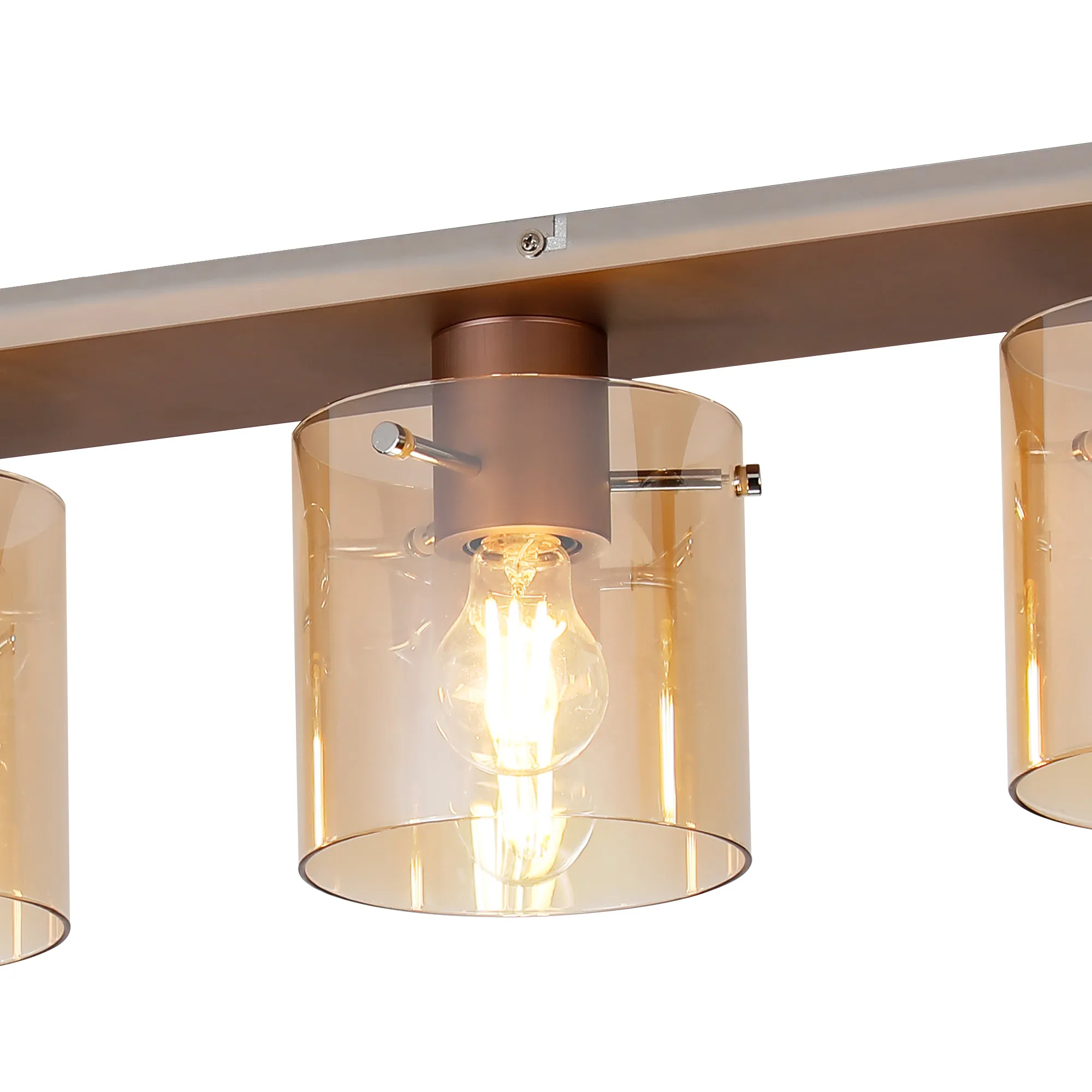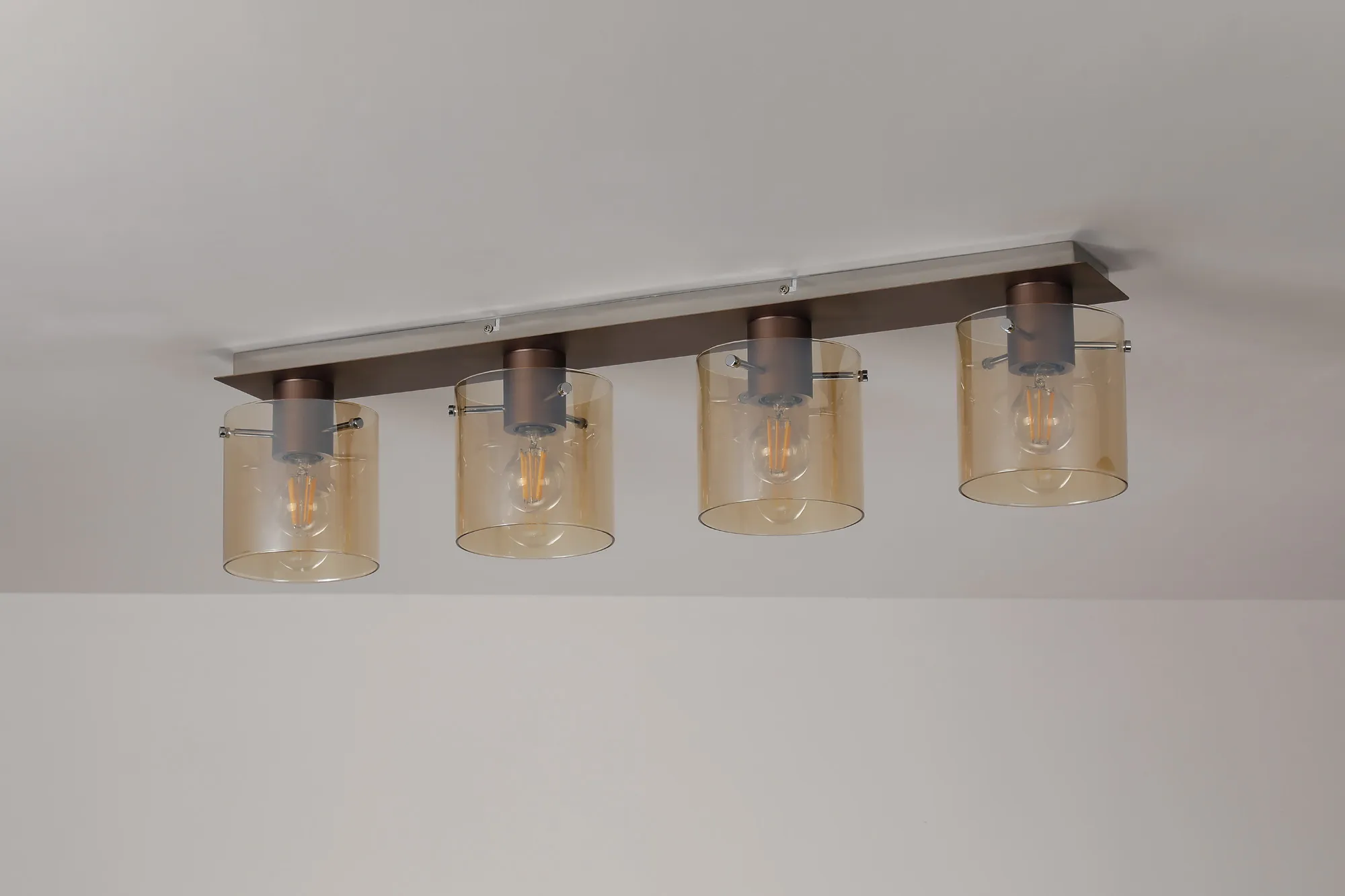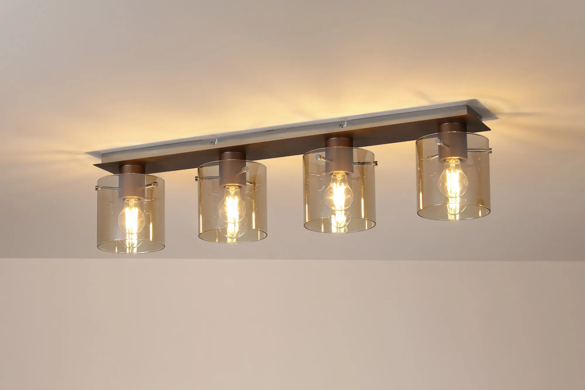OTHER Mangere Linear Ceiling Flush, 4 Light Flush Fitting, Mocha/Amber Glass