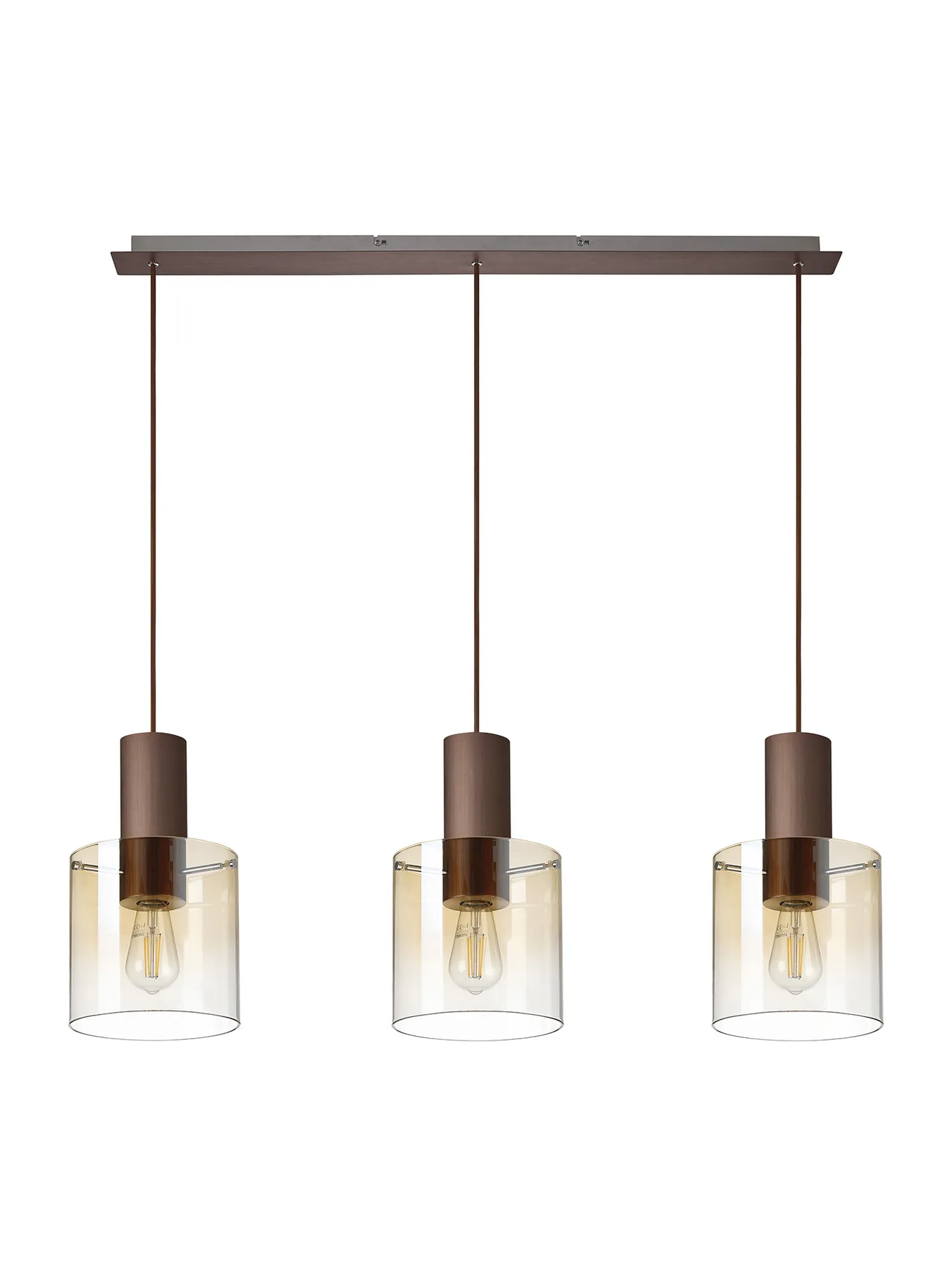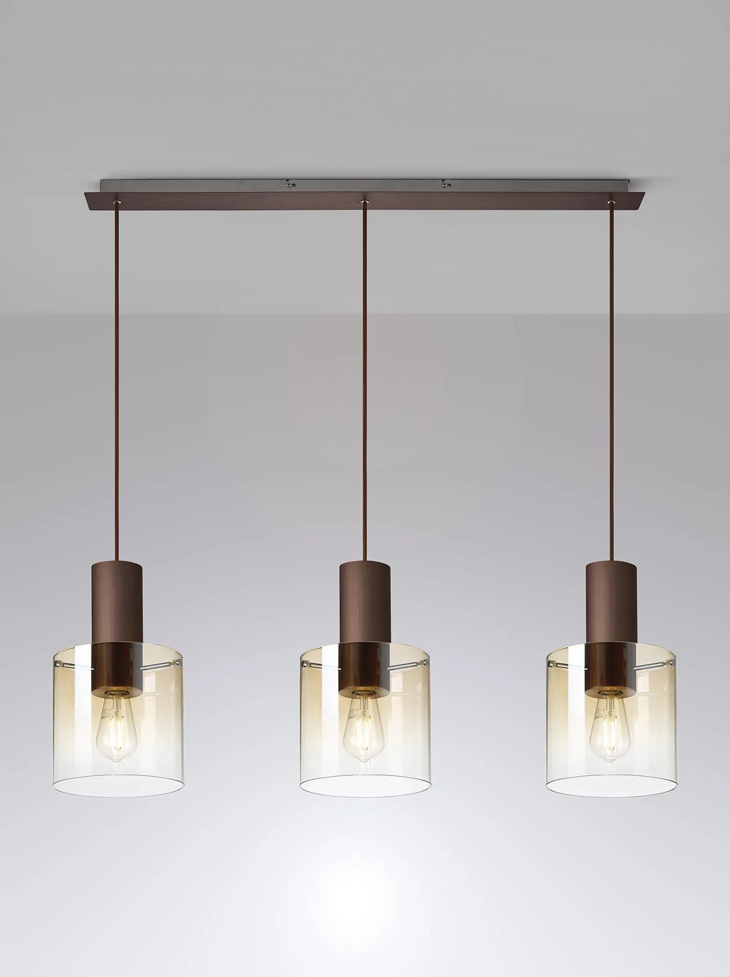 OTHER Mangere Linear Pendant, 3 Light Adjustable E27, Mocha/Amber Fade Glass