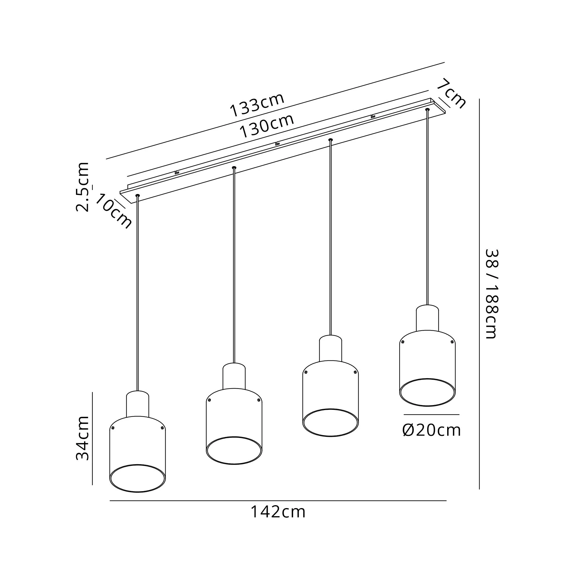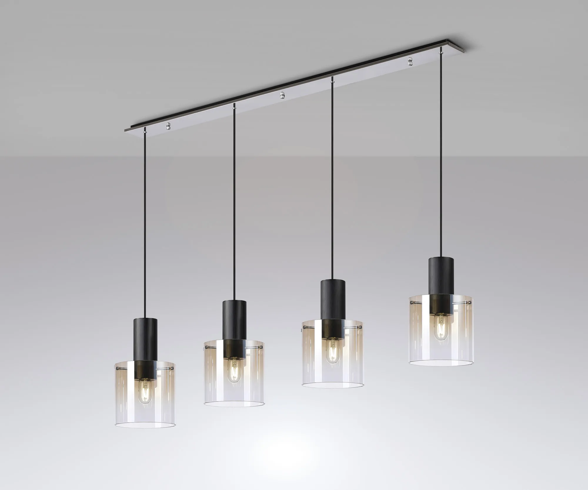 OTHER Mangere Linear Pendant, 4 Light Adjustable E27, Black/Polished Chrome/Amber Fade Glass