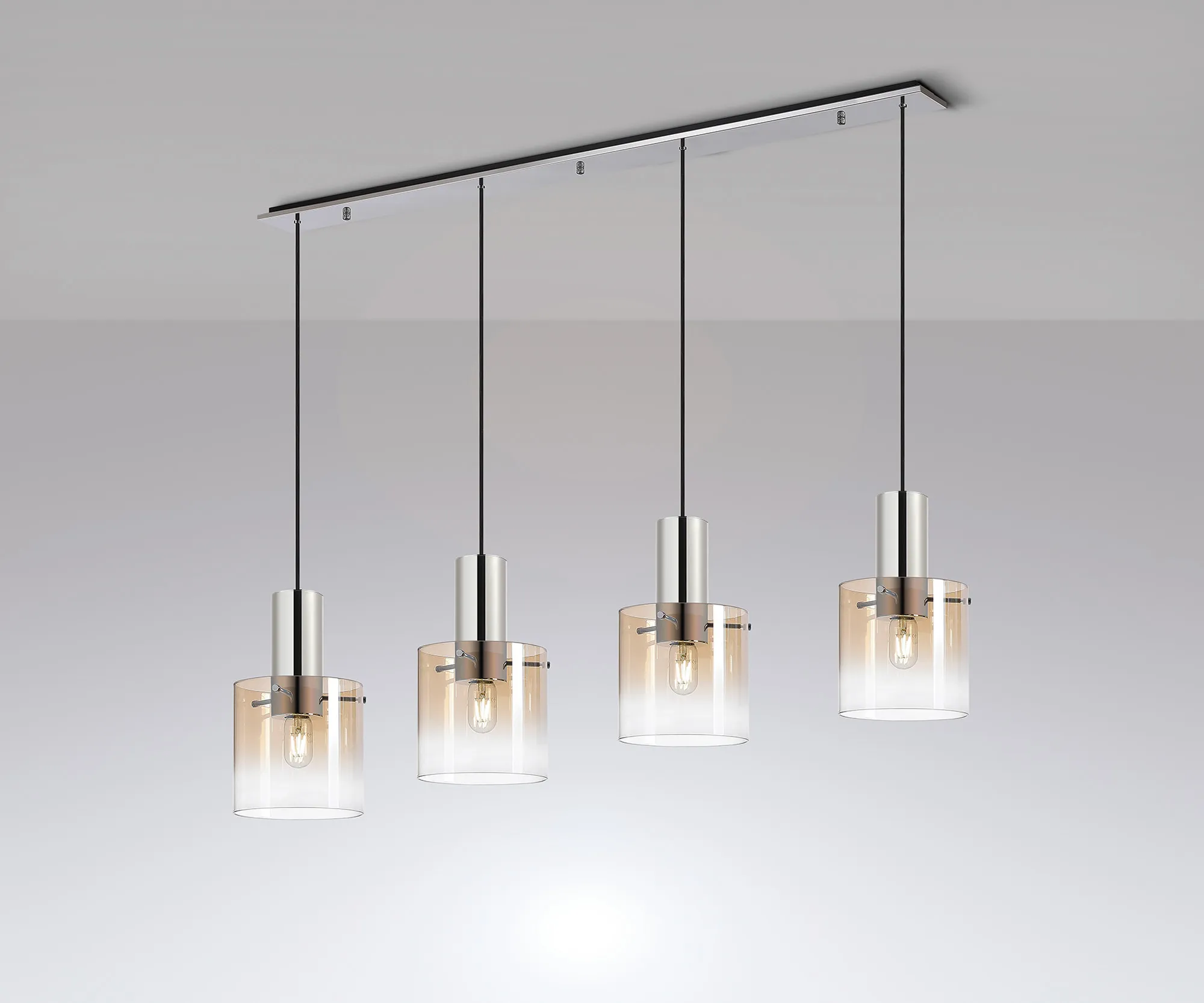 True to our commitment to distinctive and standout design, the Mangere collection celebrates the beauty of the ombré effect through bold, eye-catching materials and refined finishes. At its core, Mangere features substantial smoked-to-black glass cylinders that elegantly encase the E27 lamp holders, creating a captivating gradient that enhances the light and adds depth to any space. Following its initial success, the Mangere range has been thoughtfully expanded to include a wider selection of ceiling lights, pendants, wall lights, table lamps, and floor lamps, offering versatile solutions for both residential and commercial interiors. Now available in an extended palette of finishes—including Mocha, Polished Nickel, and fully Amber, Faded Amber, or Iridescent glass—the collection allows for even more personalisation and visual impact. In addition, newly introduced curved glass shades in Blue/Clear Fading, Smoked/Clear Fading, and Amber/Clear Fading provide a softer, more organic twist on Mangere’s signature aesthetic. Whether used as a dramatic feature or part of a coordinated lighting scheme, Mangere offers a perfect blend of modern sophistication and expressive design.