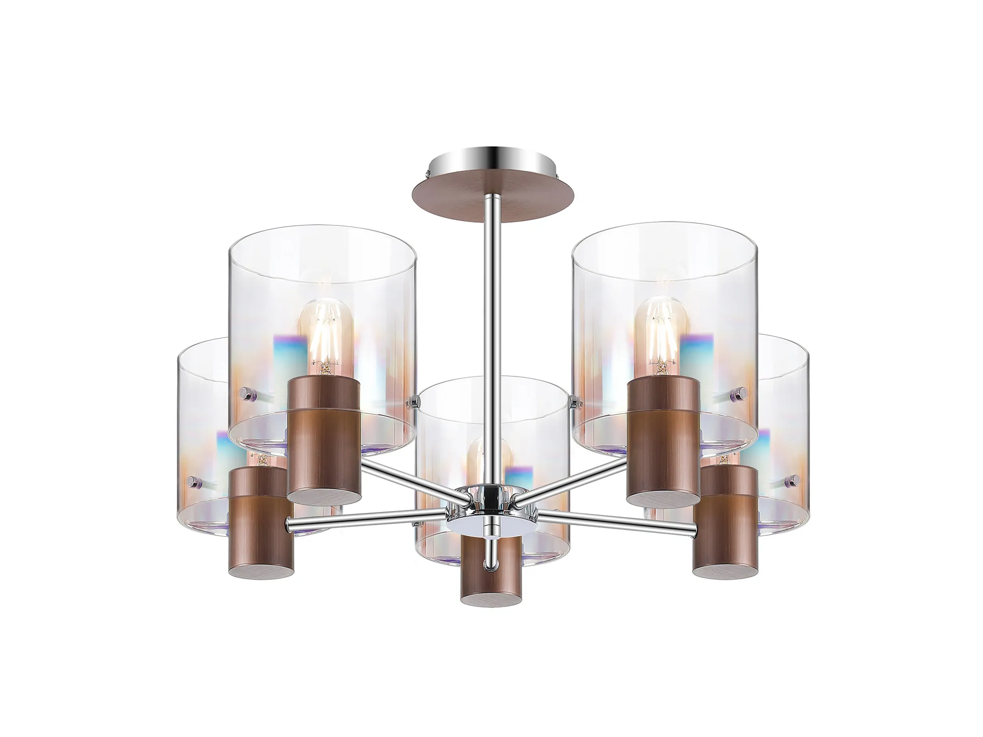 Mangere 20cm Single Pendant, 1 Light Adjustable E27, Mocha/Iridescent Fade Glass