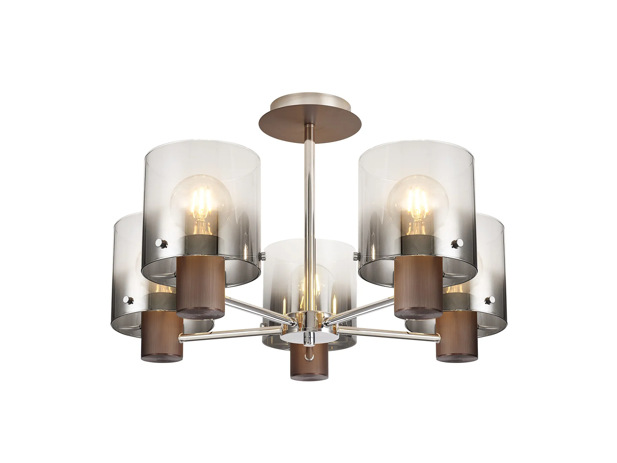 True to our commitment to distinctive and standout design, the Mangere collection celebrates the beauty of the ombré effect through bold, eye-catching materials and refined finishes. At its core, Mangere features substantial smoked-to-black glass cylinders that elegantly encase the E27 lamp holders, creating a captivating gradient that enhances the light and adds depth to any space. Following its initial success, the Mangere range has been thoughtfully expanded to include a wider selection of ceiling lights, pendants, wall lights, table lamps, and floor lamps, offering versatile solutions for both residential and commercial interiors. Now available in an extended palette of finishes—including Mocha, Polished Nickel, and fully Amber, Faded Amber, or Iridescent glass—the collection allows for even more personalisation and visual impact. In addition, newly introduced curved glass shades in Blue/Clear Fading, Smoked/Clear Fading, and Amber/Clear Fading provide a softer, more organic twist on Mangere’s signature aesthetic. Whether used as a dramatic feature or part of a coordinated lighting scheme, Mangere offers a perfect blend of modern sophistication and expressive design.