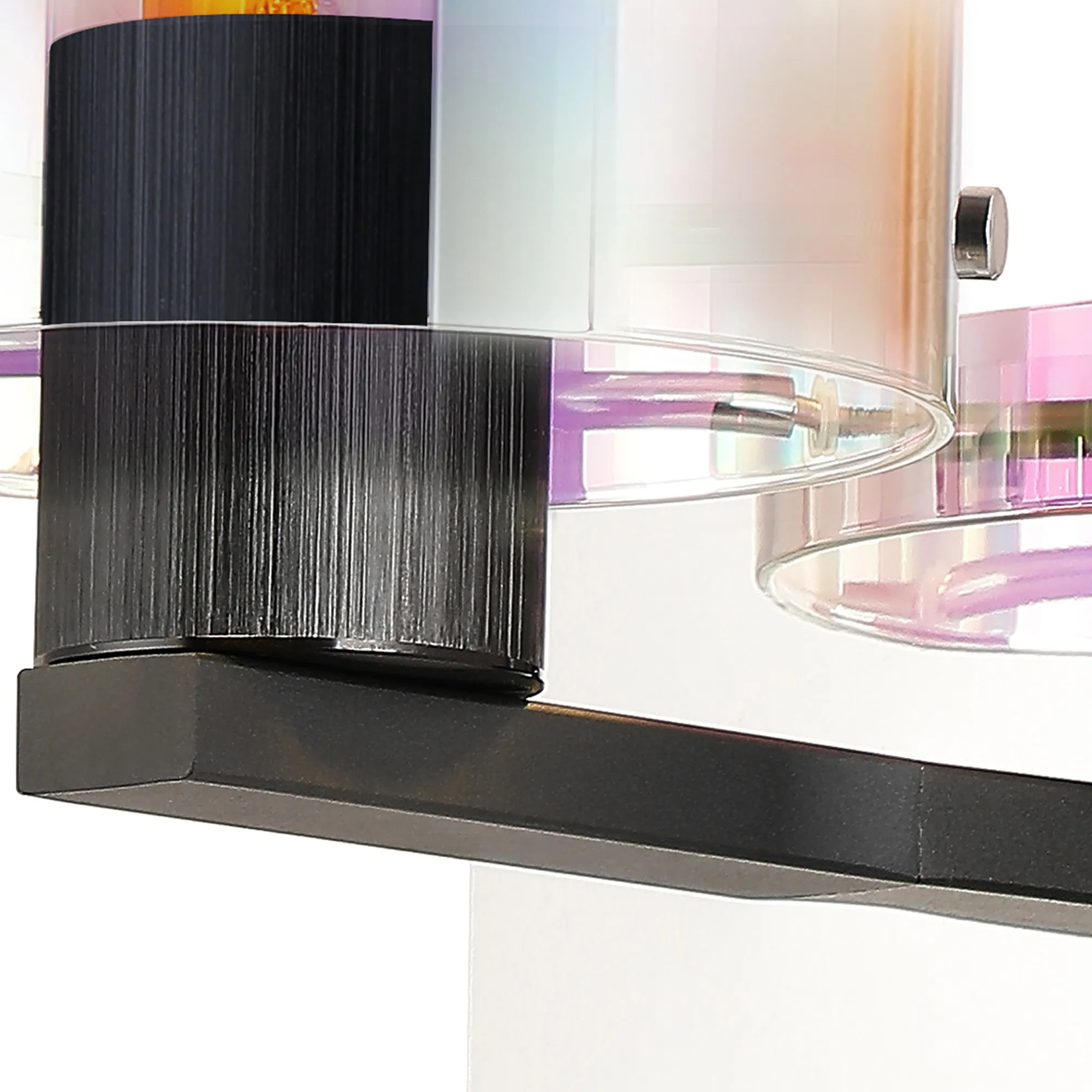 Mangere Round Ceiling Flush, 1 Light Flush Fitting E27, Black/Iridescent Fade Glass