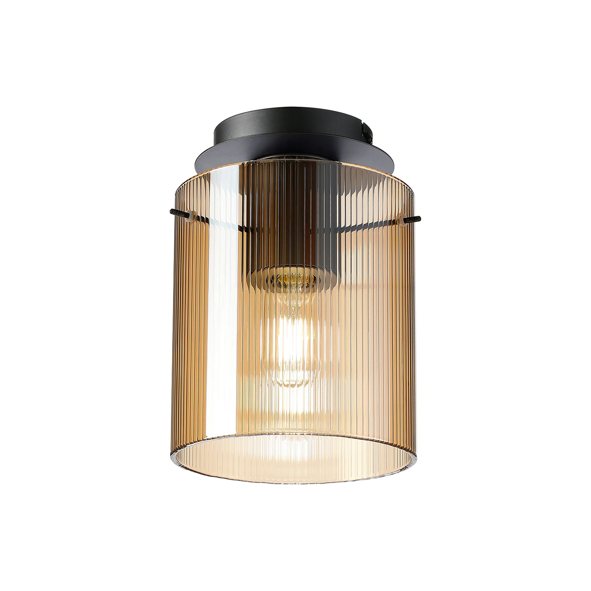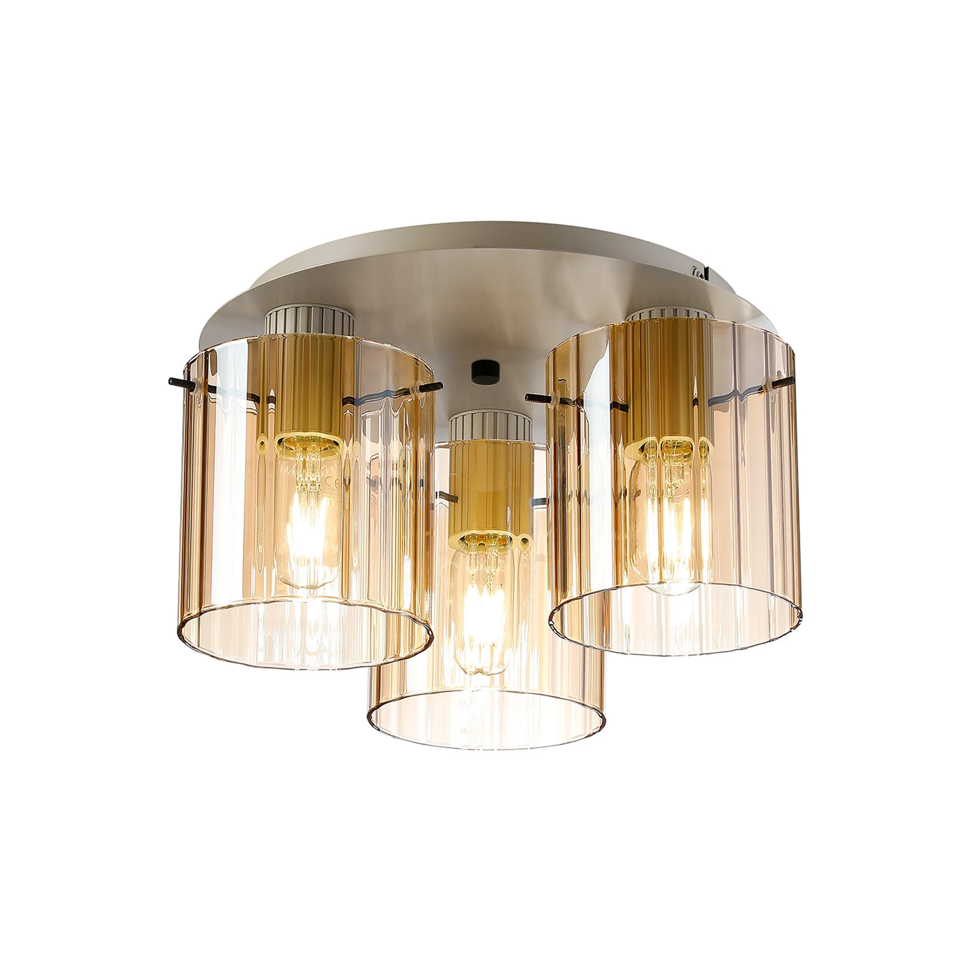 Castlegar Round Ceiling Flush, 3 Light Flush Fitting E27, Beige Stone/Amber Narrow Line Glass