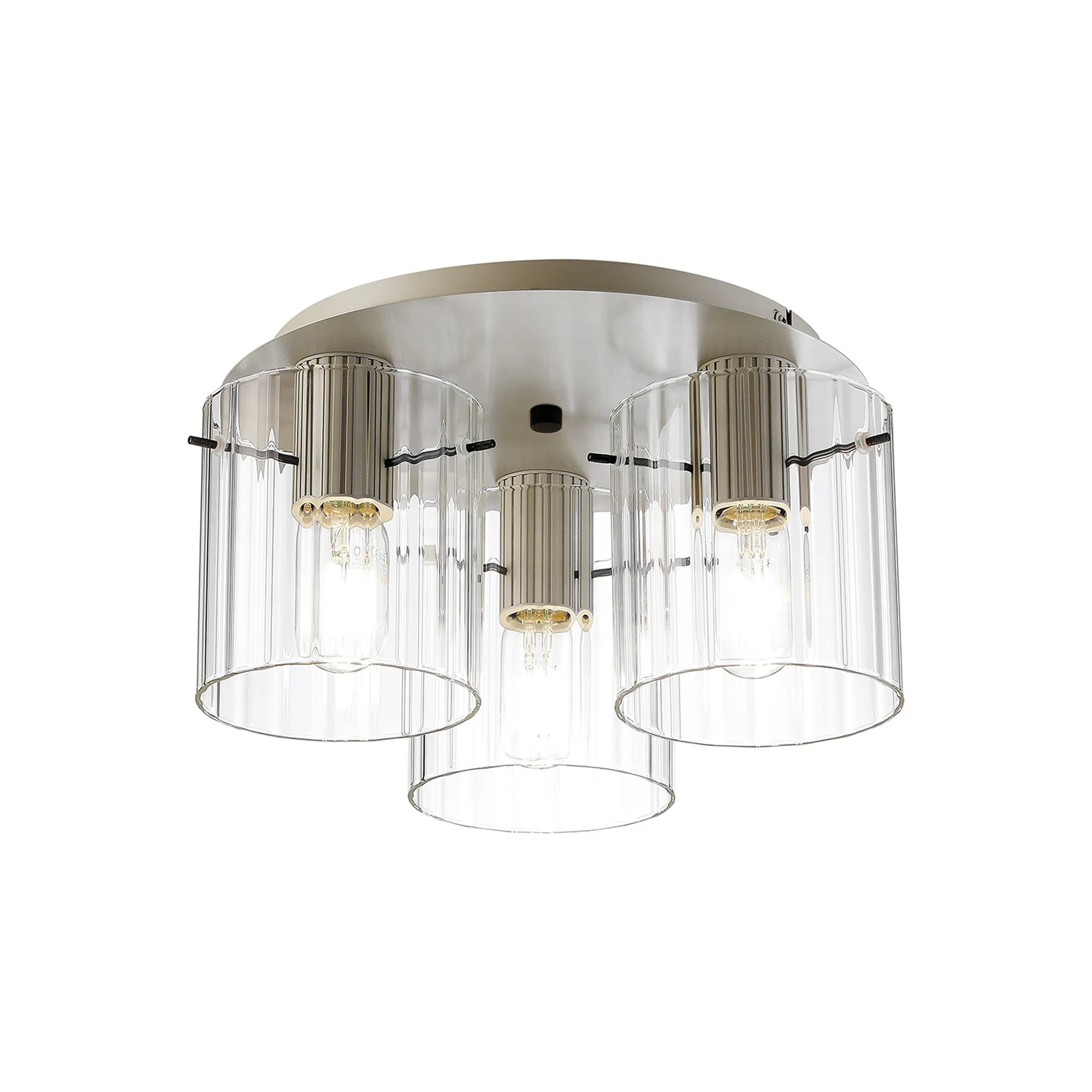Castlegar Round Ceiling Flush, 3 Light Flush Fitting E27, Beige Stone/Clear Narrow Line Glass