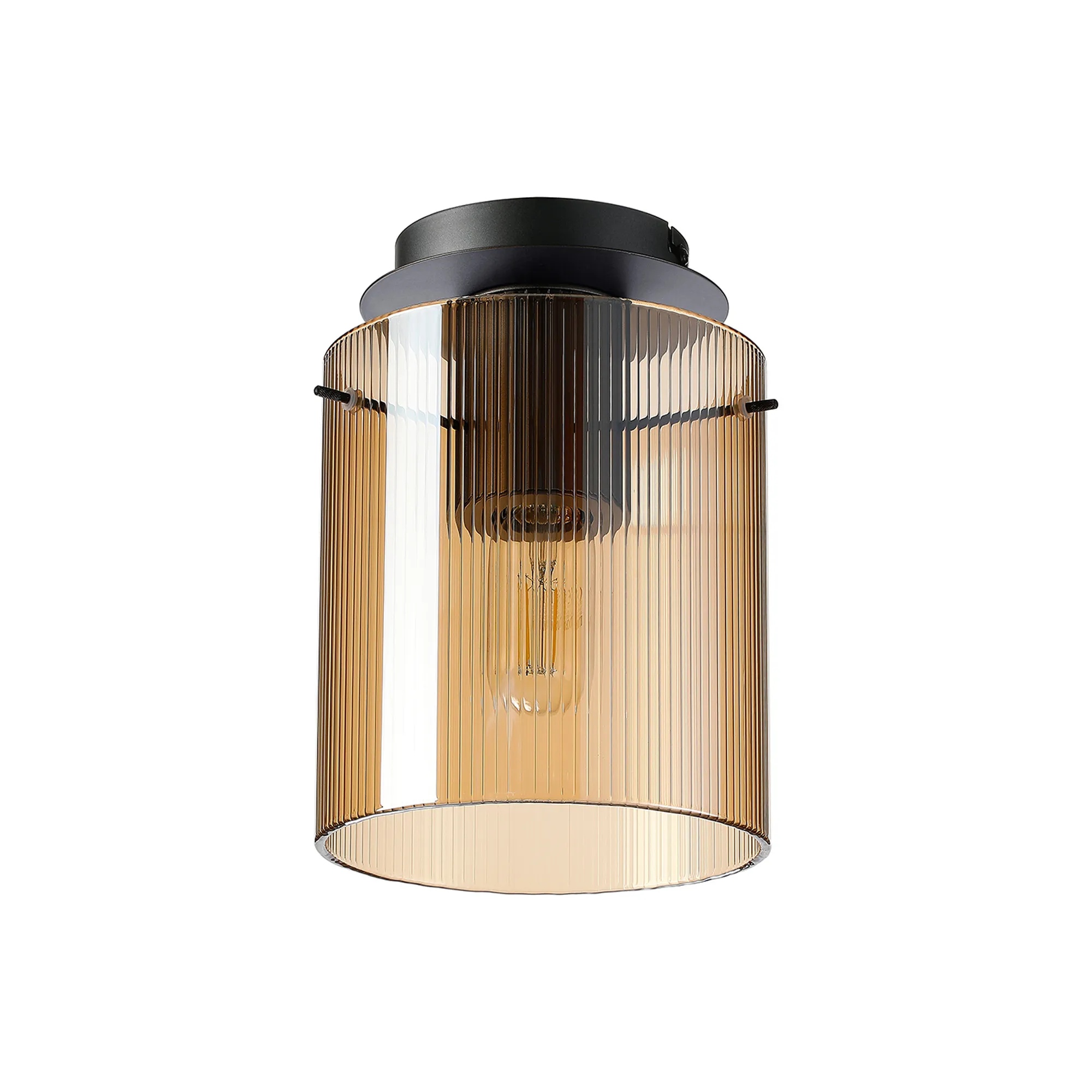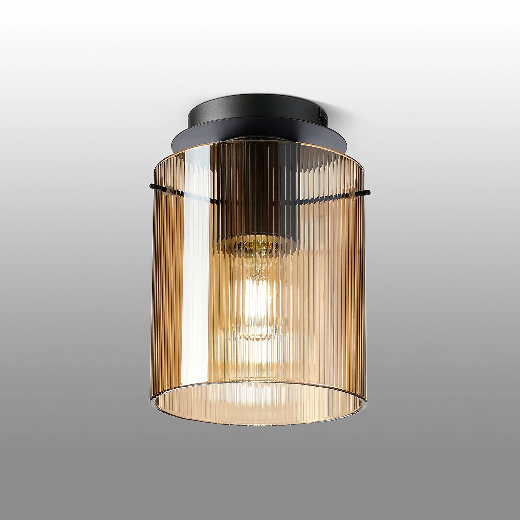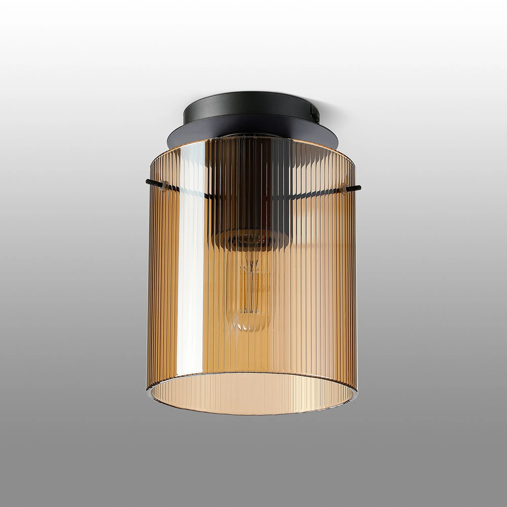 OTHER Castlegar Round Ceiling Flush, 1 Light Flush Fitting E27, Dark Grey/Amber Narrow Line Glass