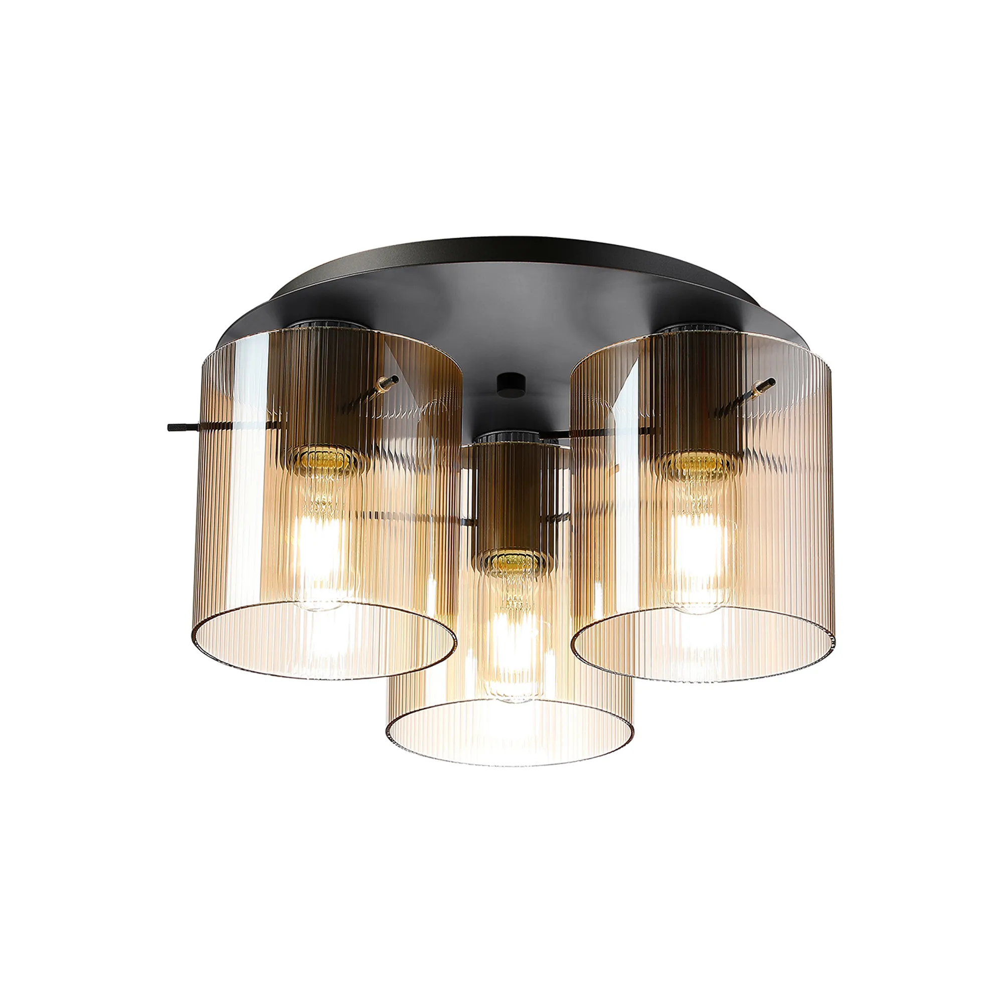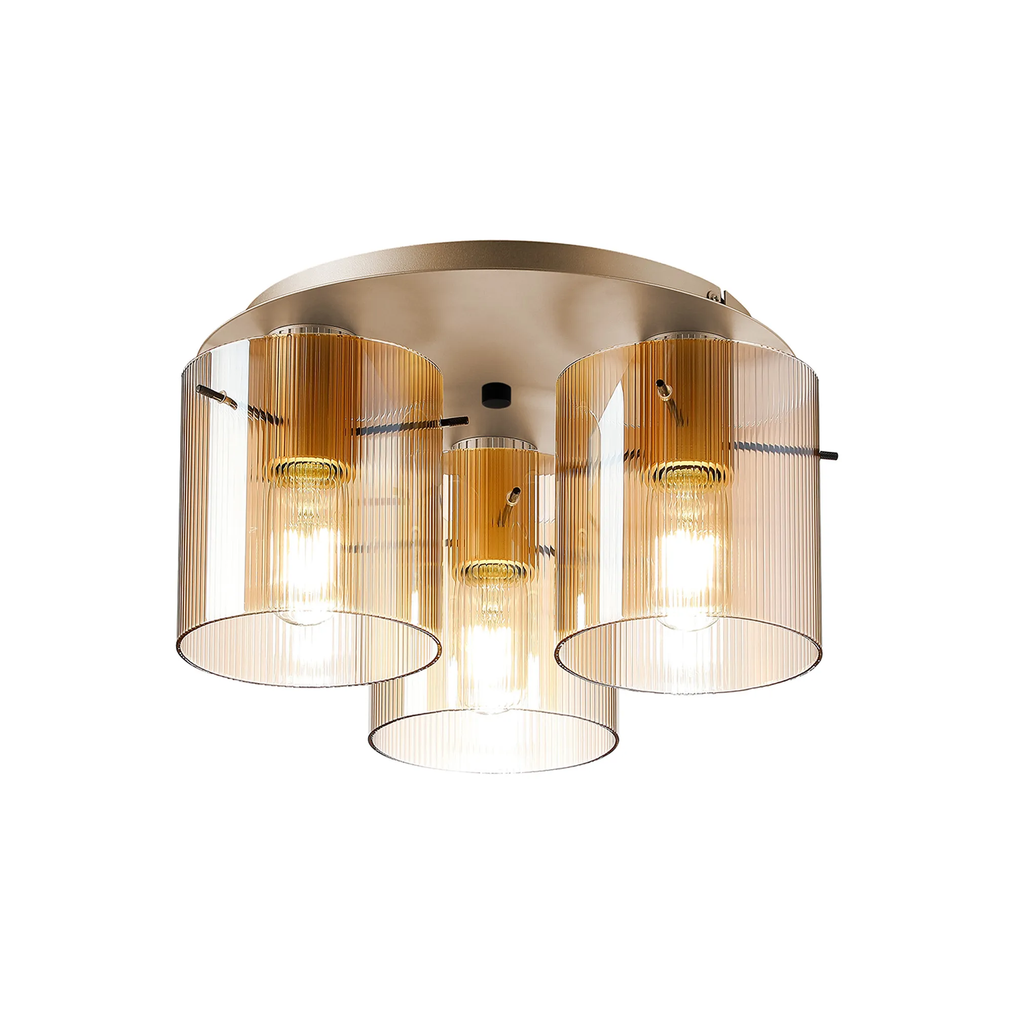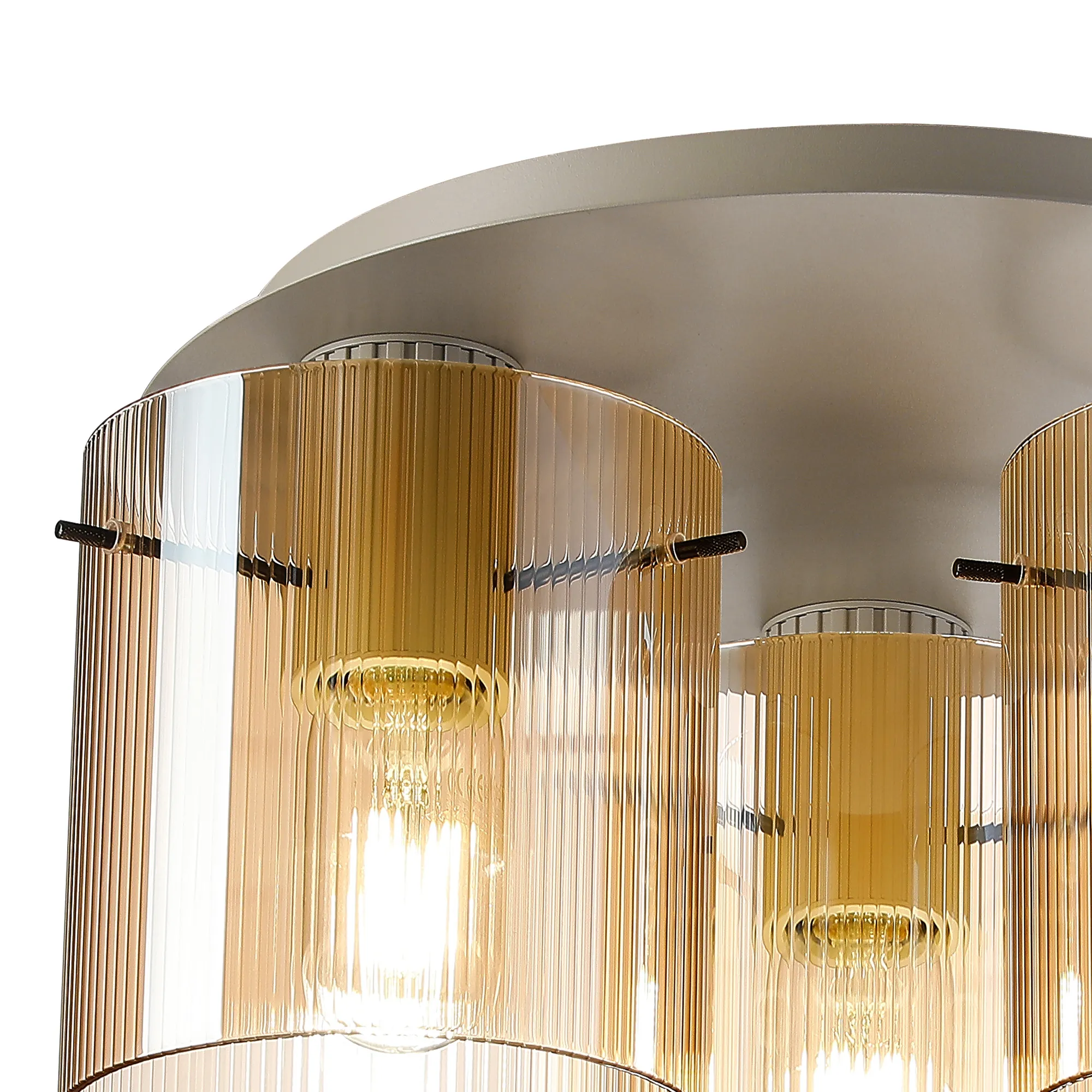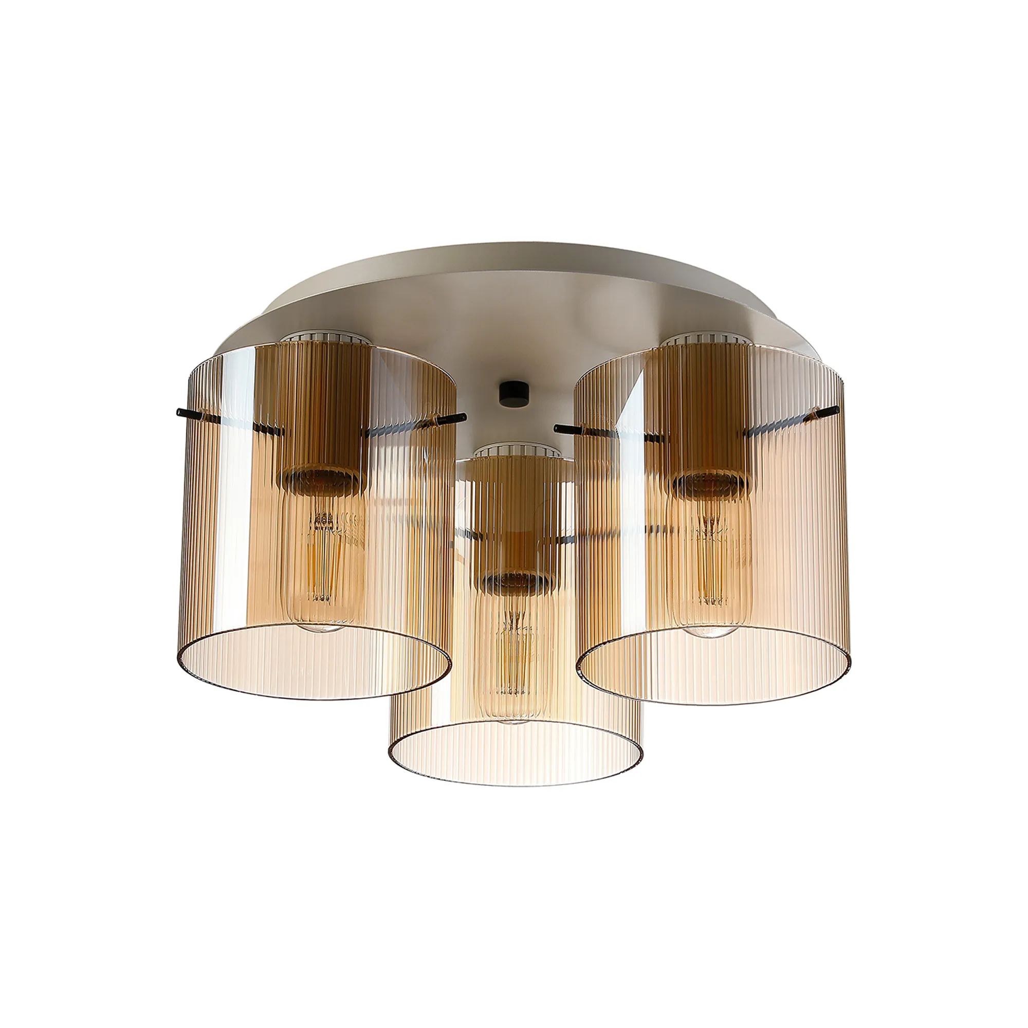 OTHER Castlegar Round Ceiling Flush, 3 Light Flush Fitting E27, Beige Stone/Amber Narrow Line Glass