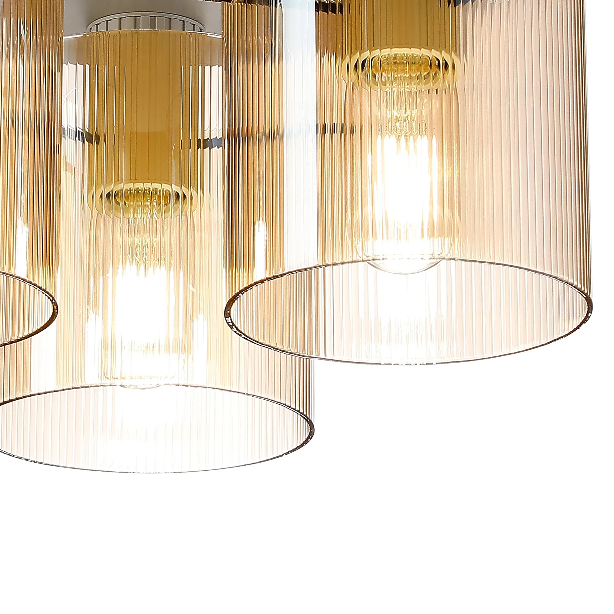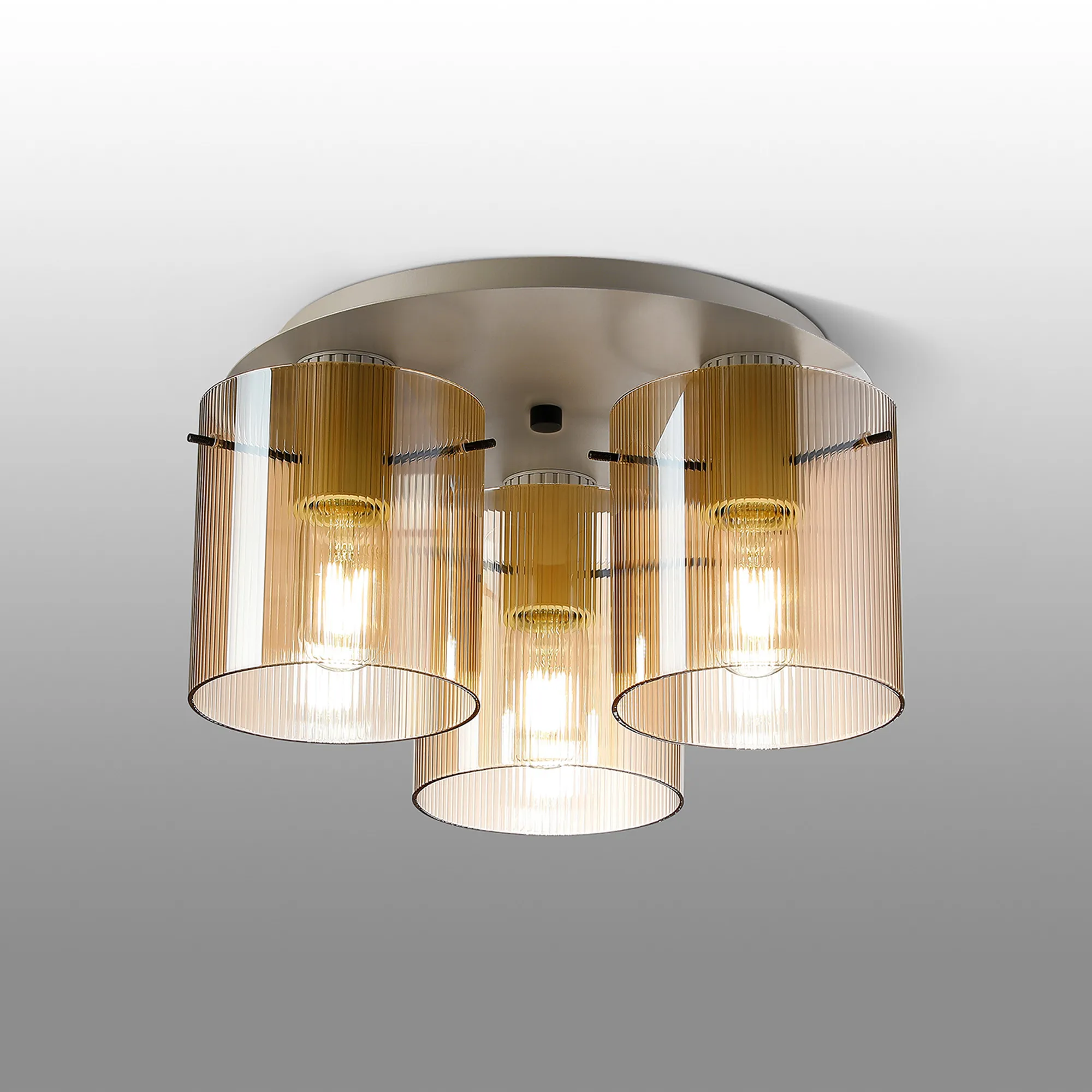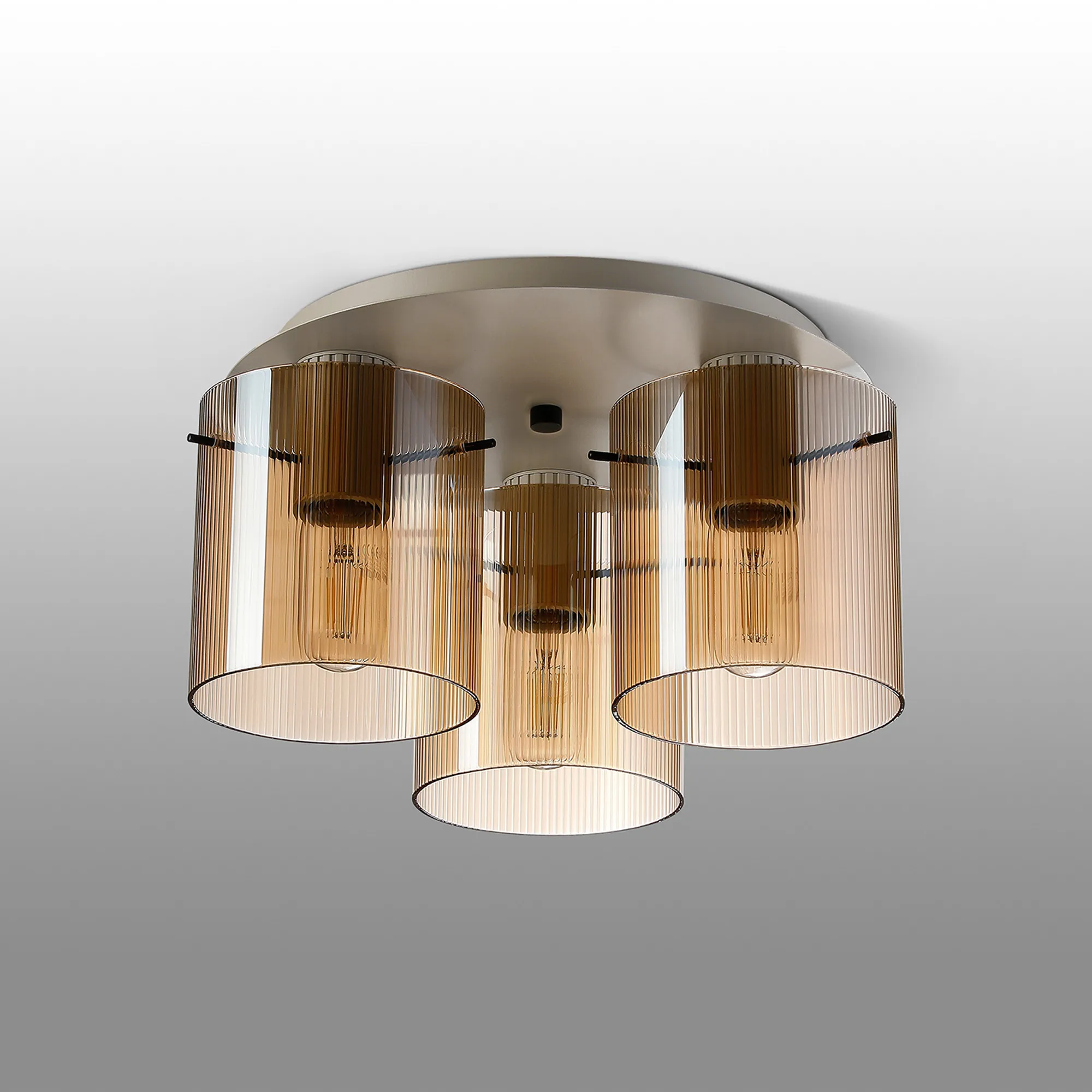 OTHER Castlegar Round Ceiling Flush, 3 Light Flush Fitting E27, Beige Stone/Amber Narrow Line Glass