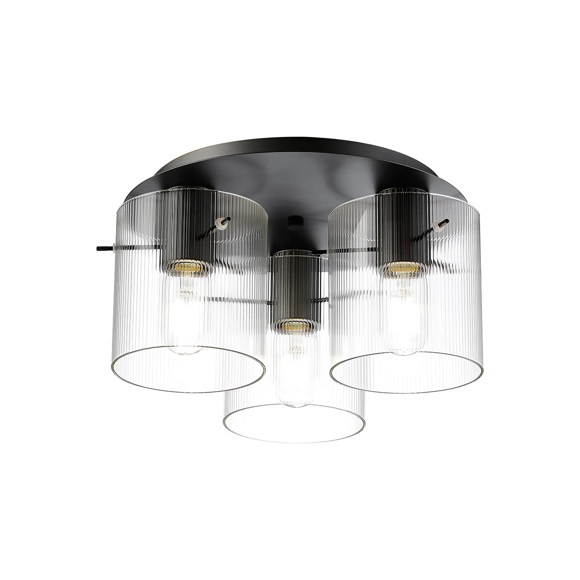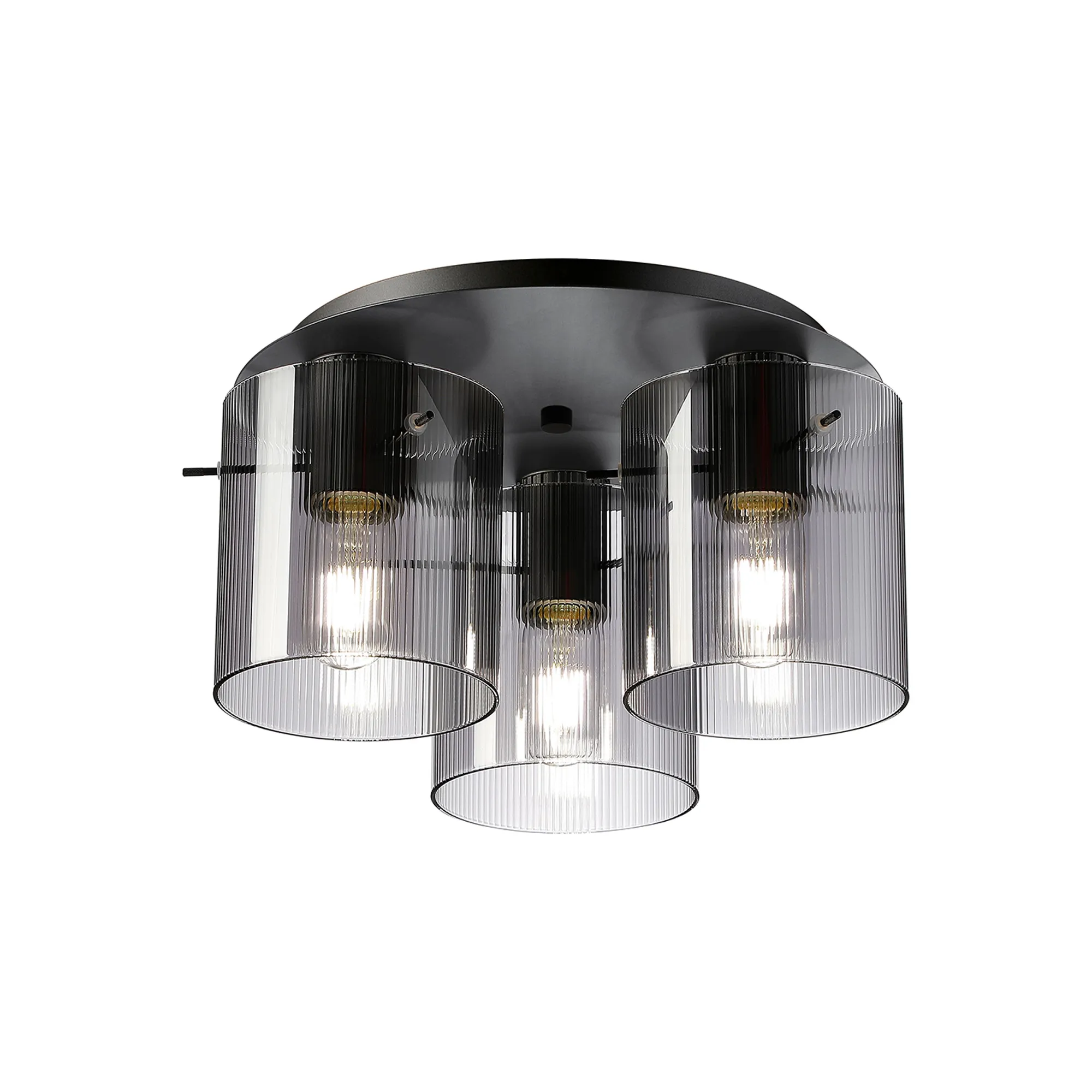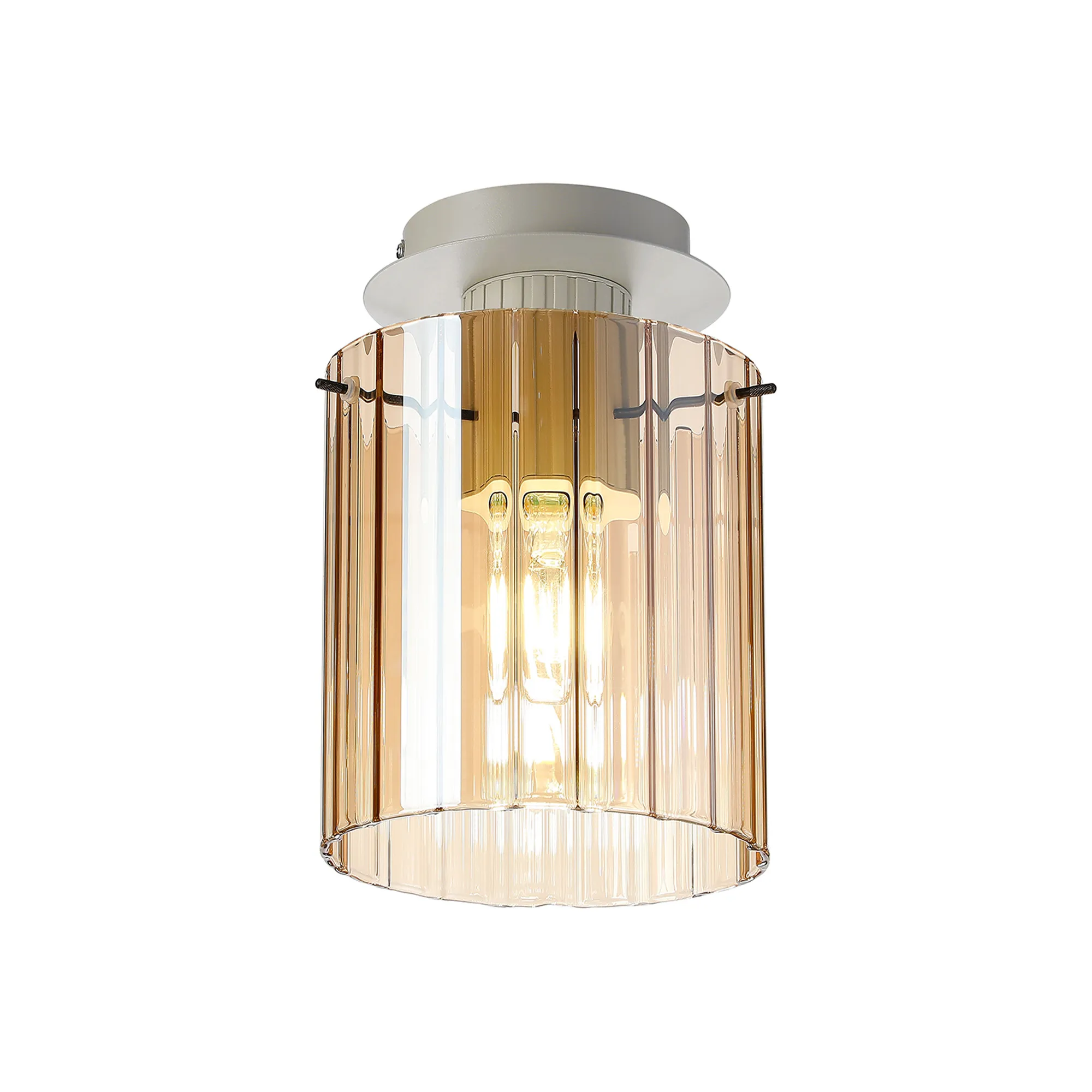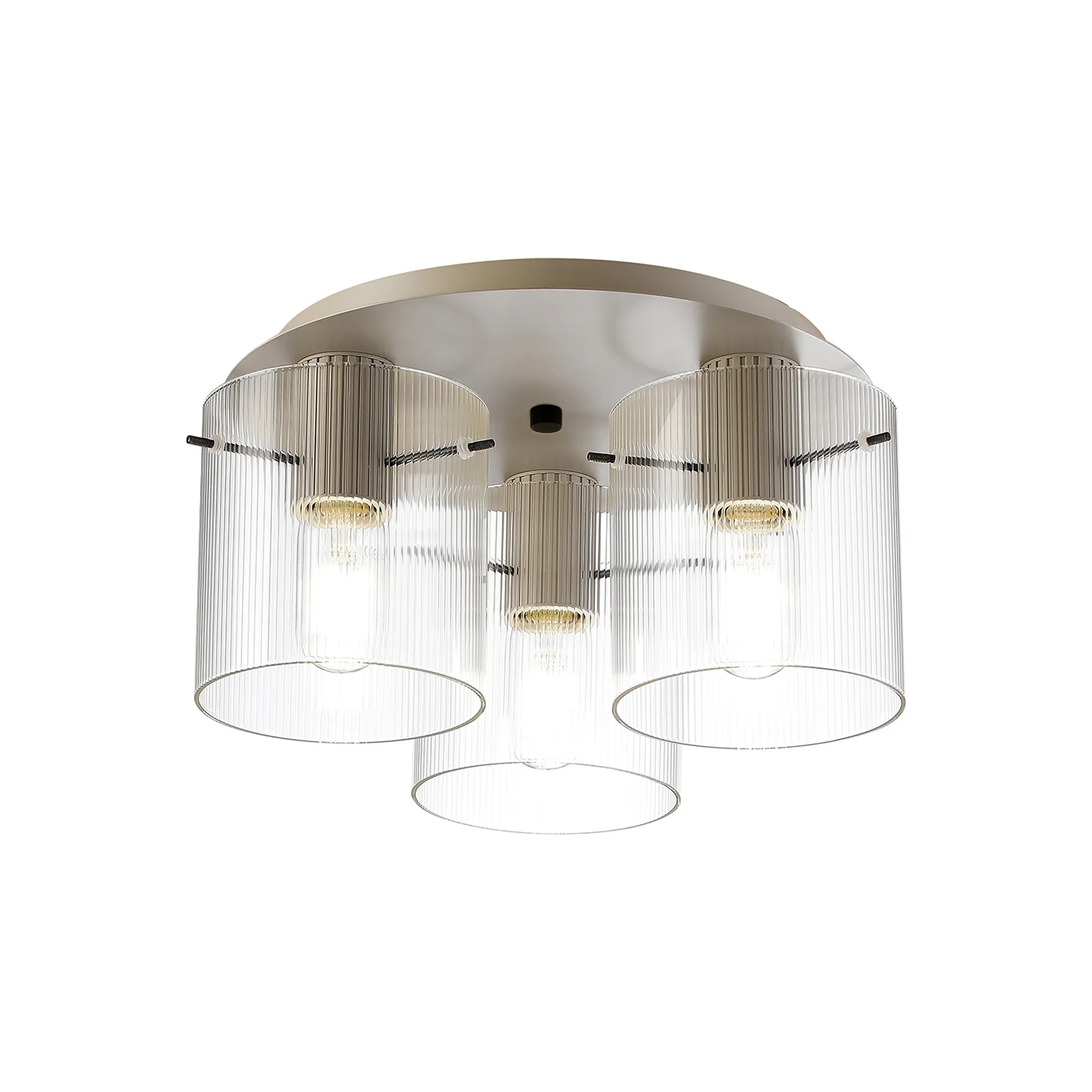 OTHER Castlegar Round Ceiling Flush, 3 Light Flush Fitting E27, Beige Stone/Amber Narrow Line Glass
