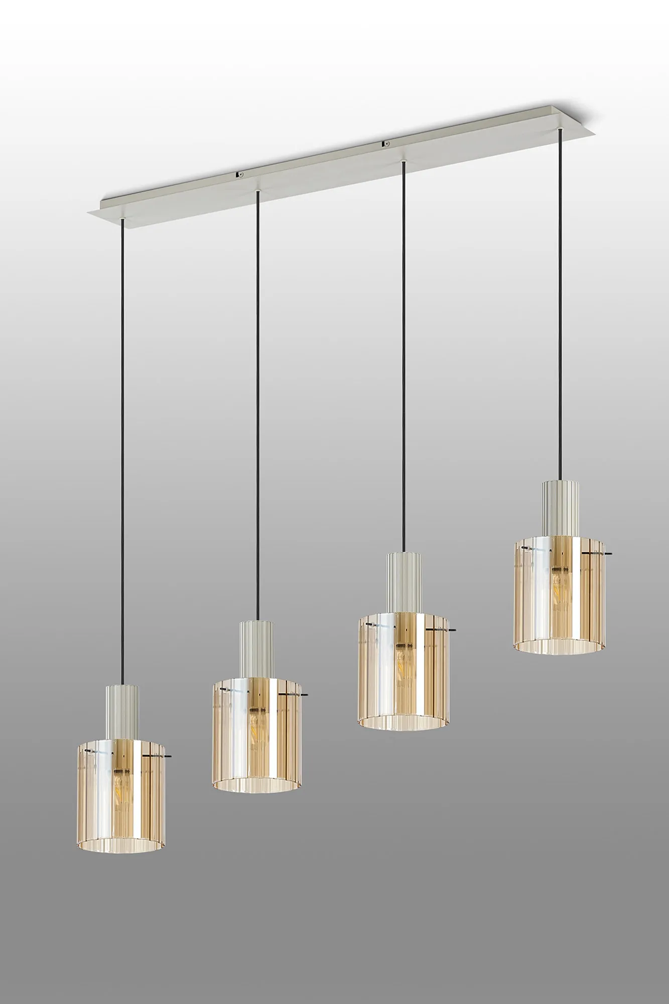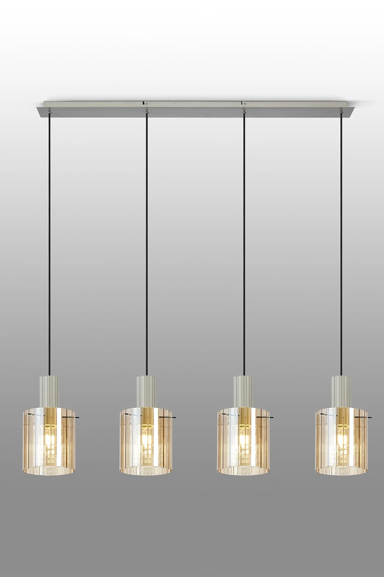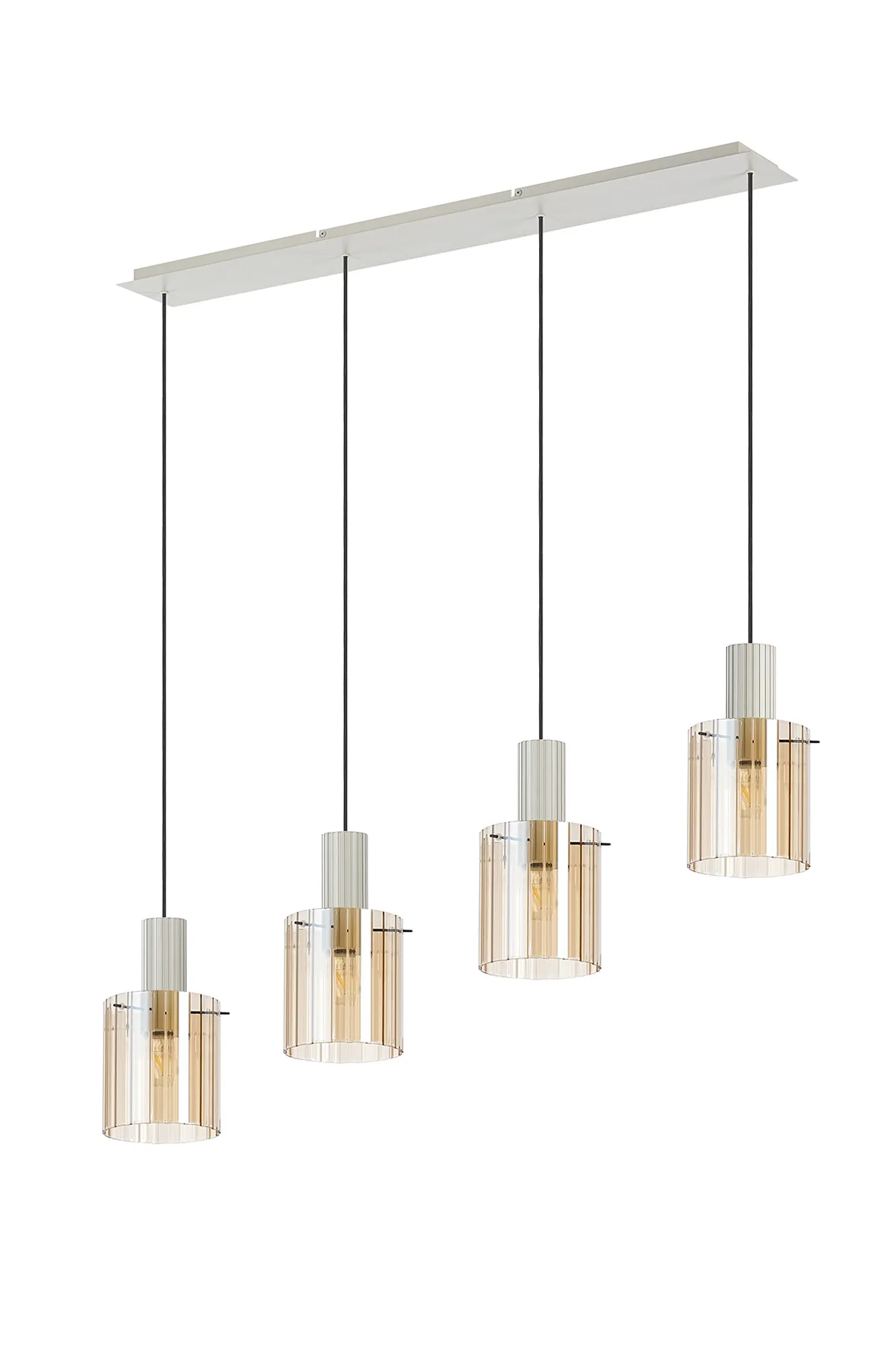 OTHER Castlegar Linear Pendant, 4 Light Adjustable E27, Beige Stone/Amber Wide Line Glass