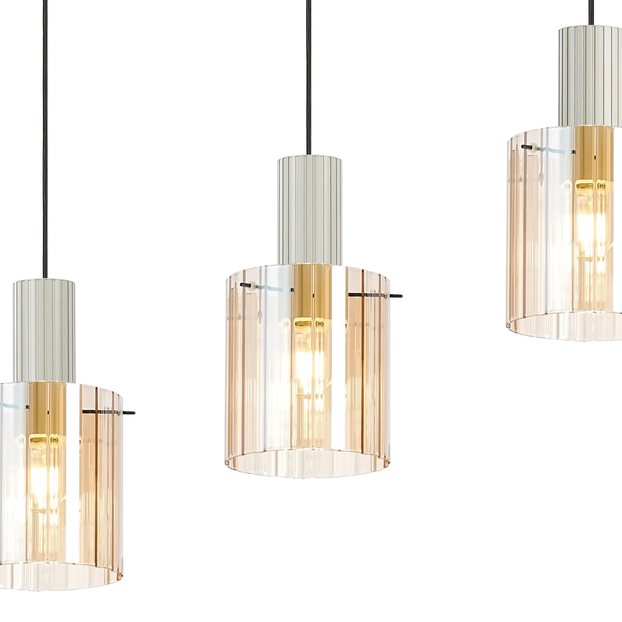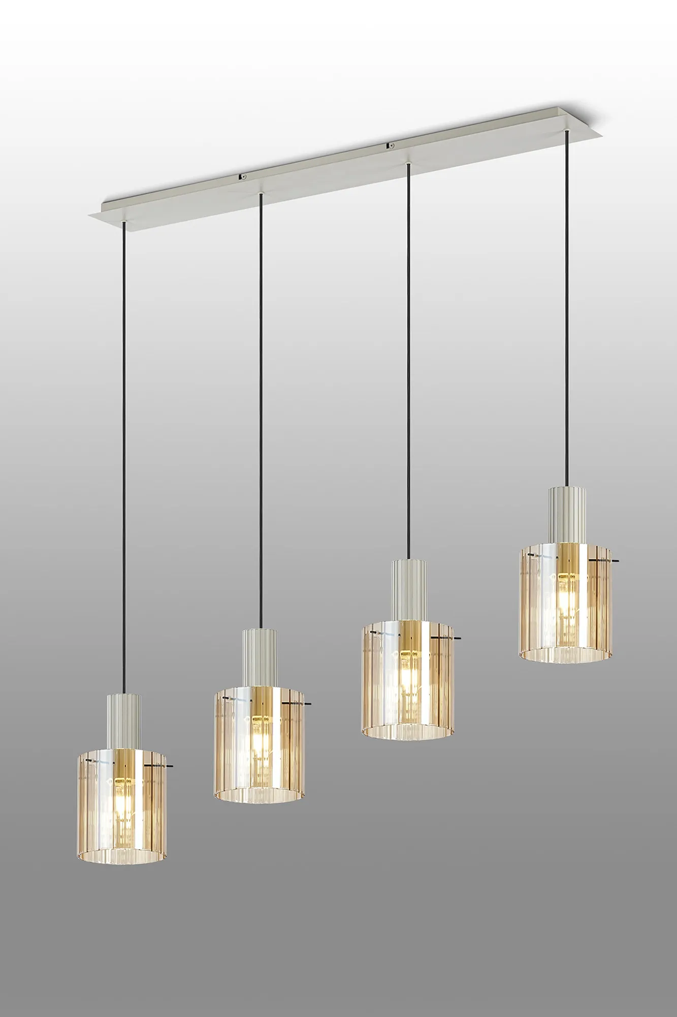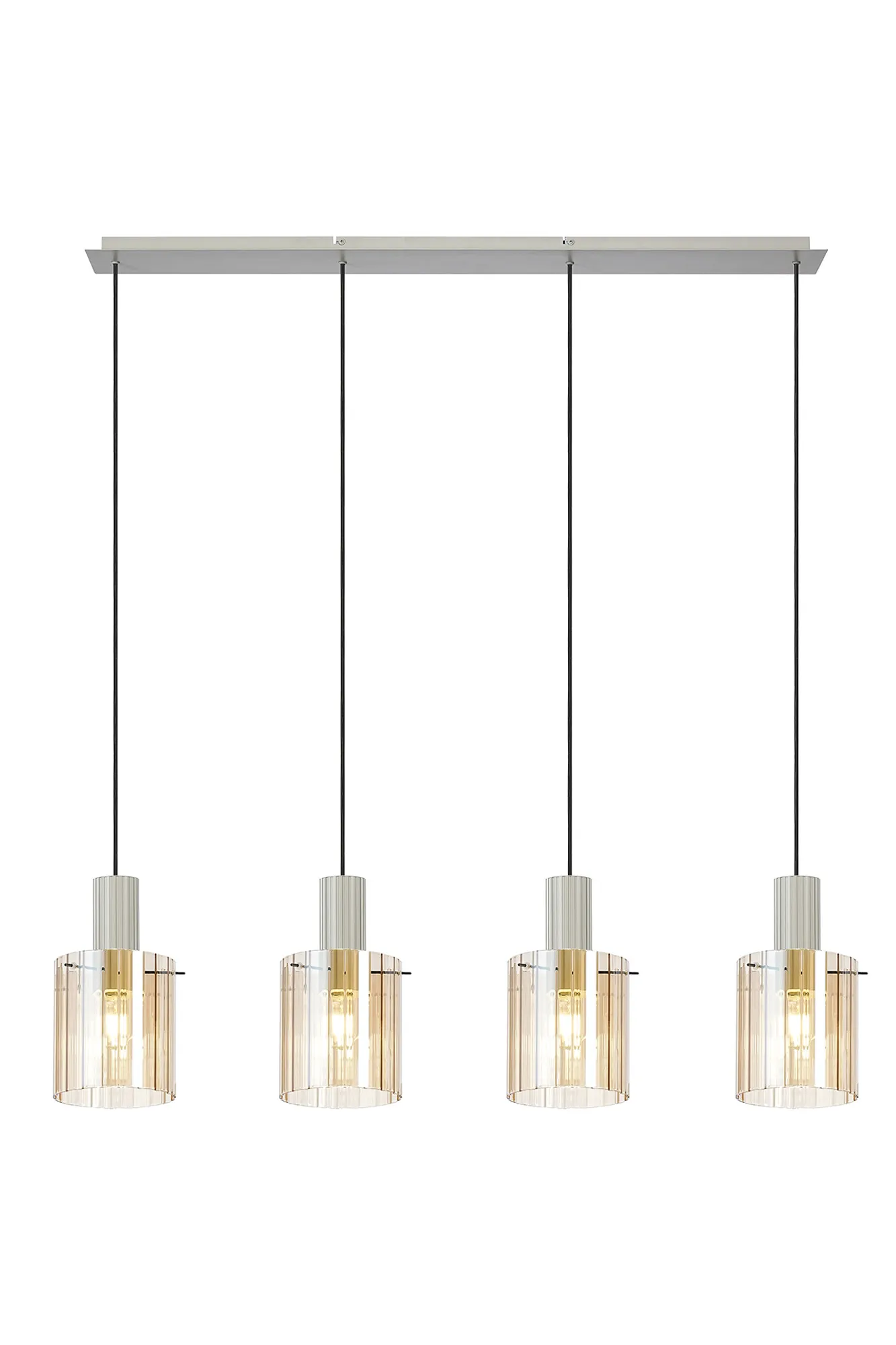 OTHER Castlegar Linear Pendant, 4 Light Adjustable E27, Beige Stone/Amber Wide Line Glass