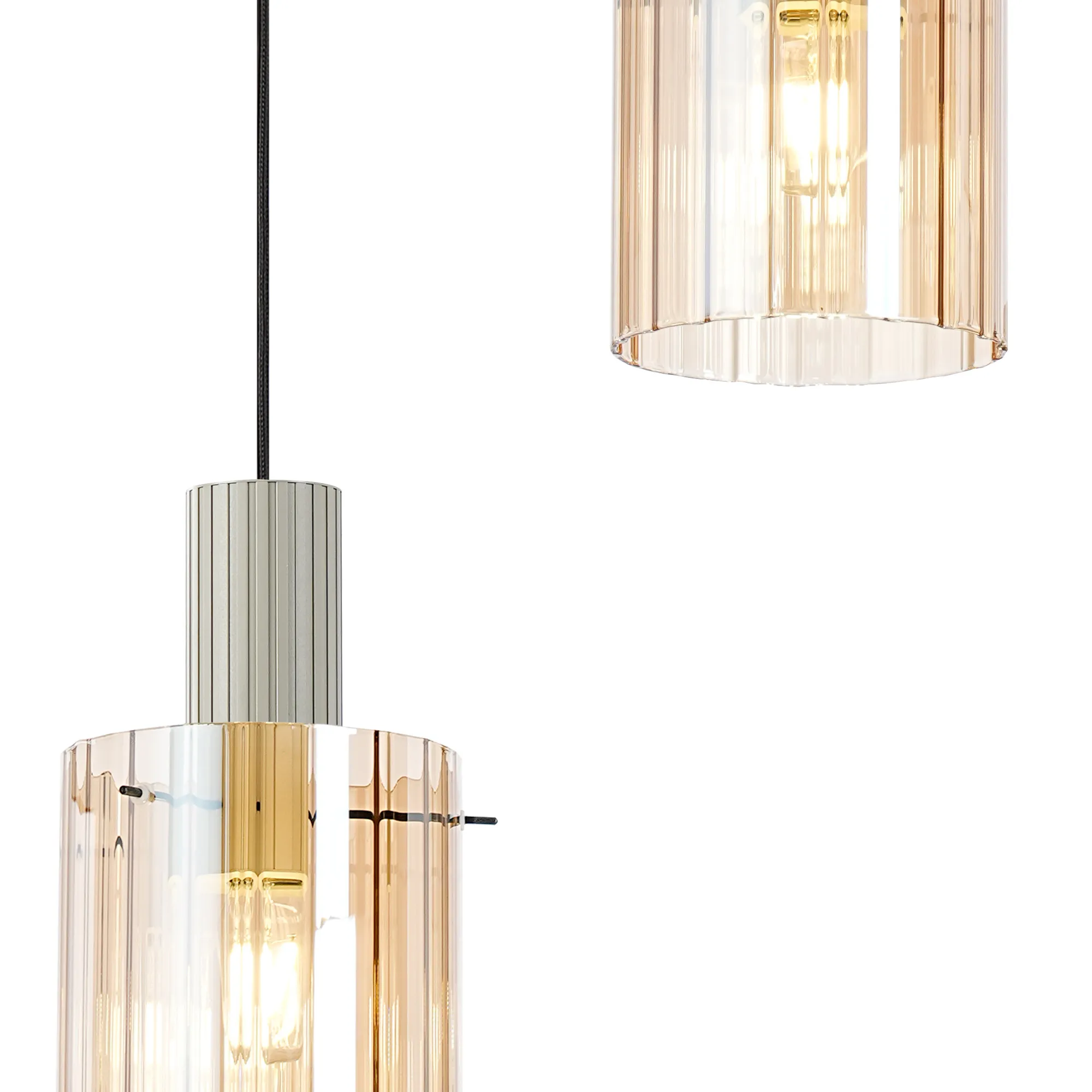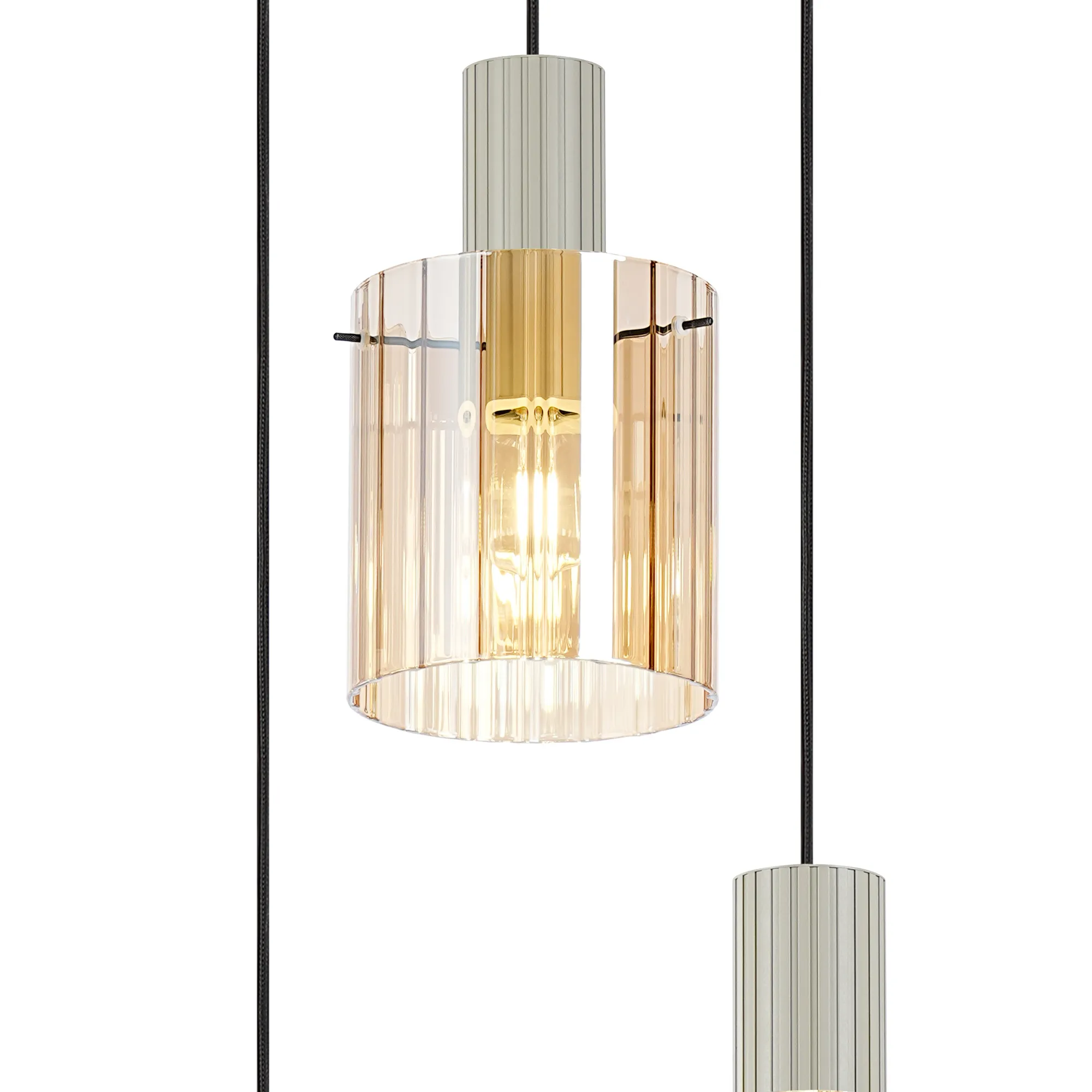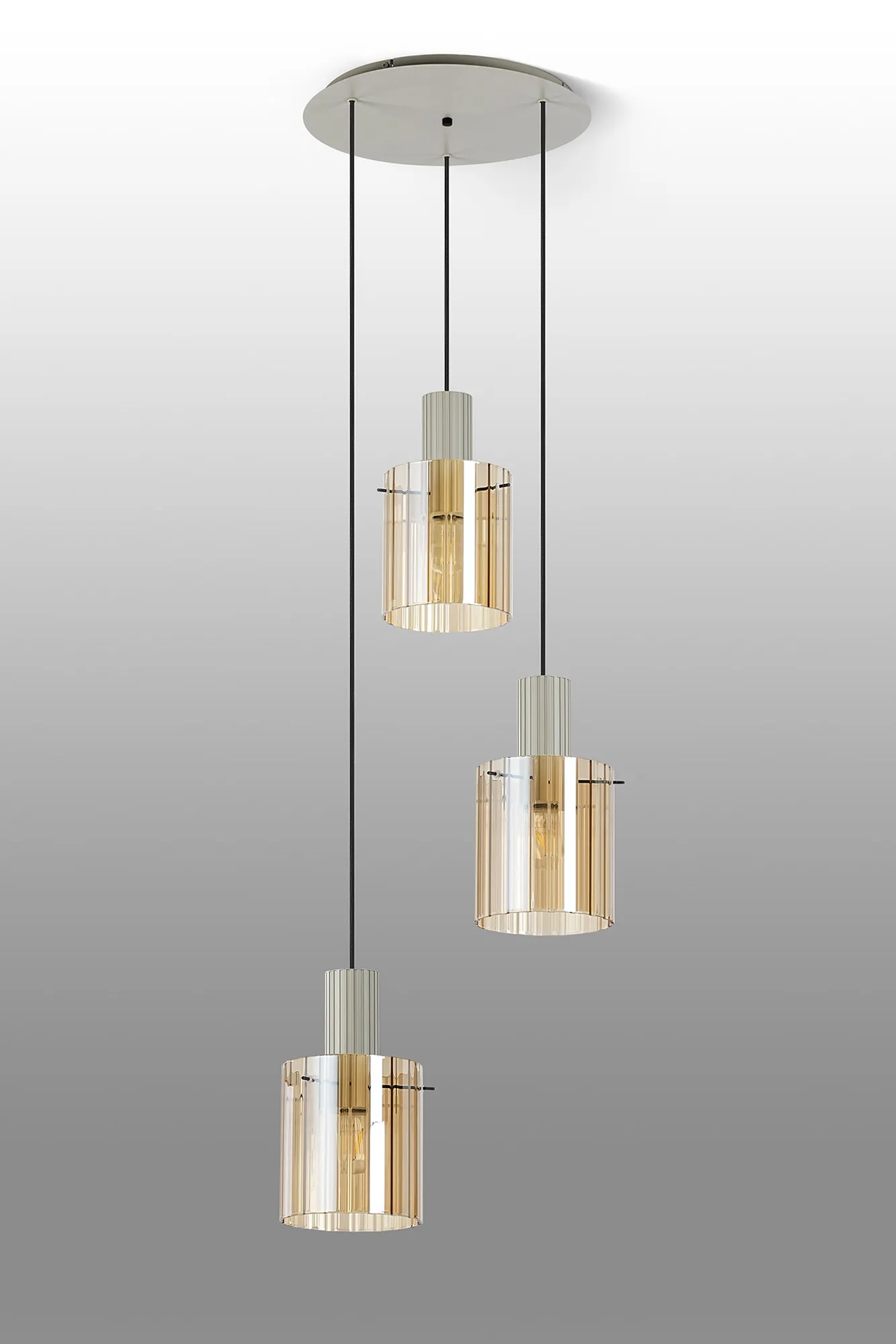 OTHER Castlegar Round Pendant, 3 Light Adjustable E27, Beige Stone/Amber Wide Line Glass