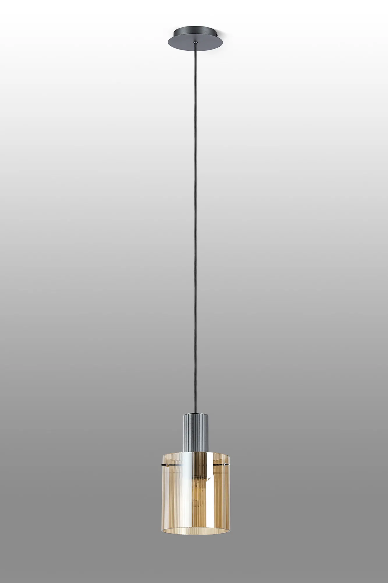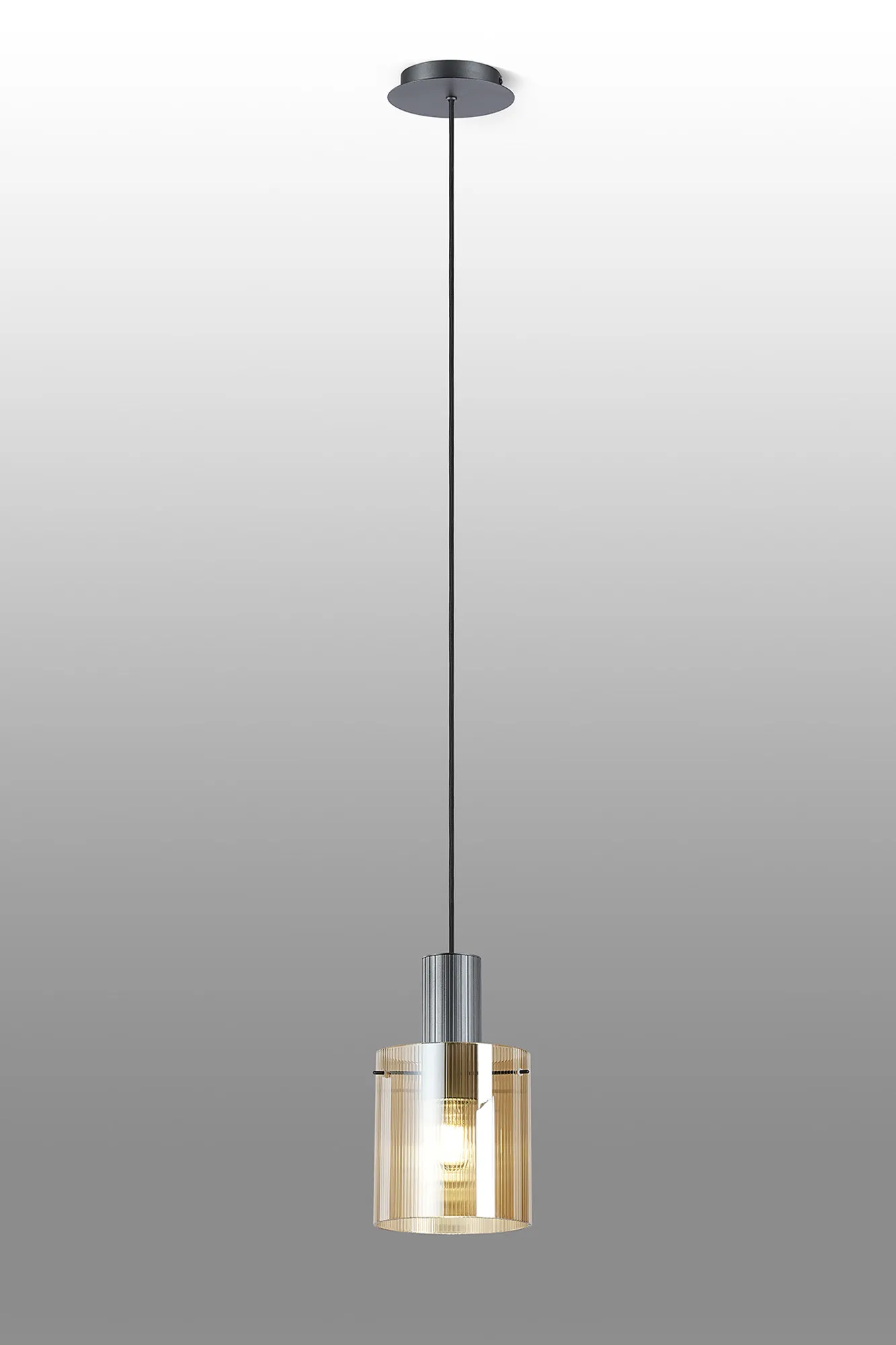 OTHER Castlegar Single Pendant, 1 Light Adjustable E27, Dark Grey/Amber Narrow Line Glass