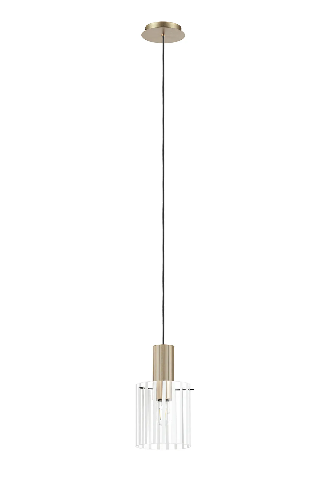 Castlegar Single Switched Wall Lamp, 1 Light, E27, Light Gold/Frosted/Clear Wide Line Glass