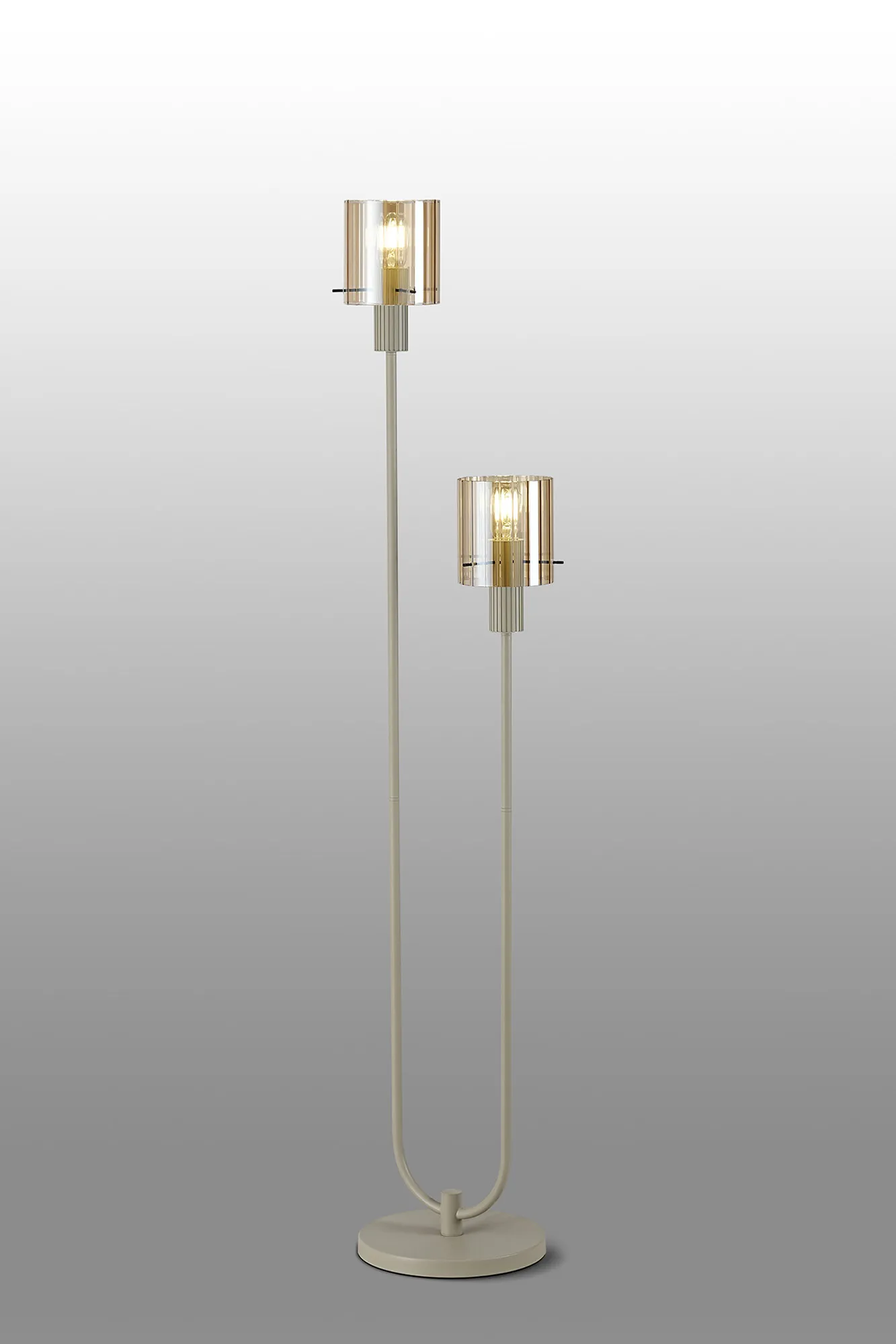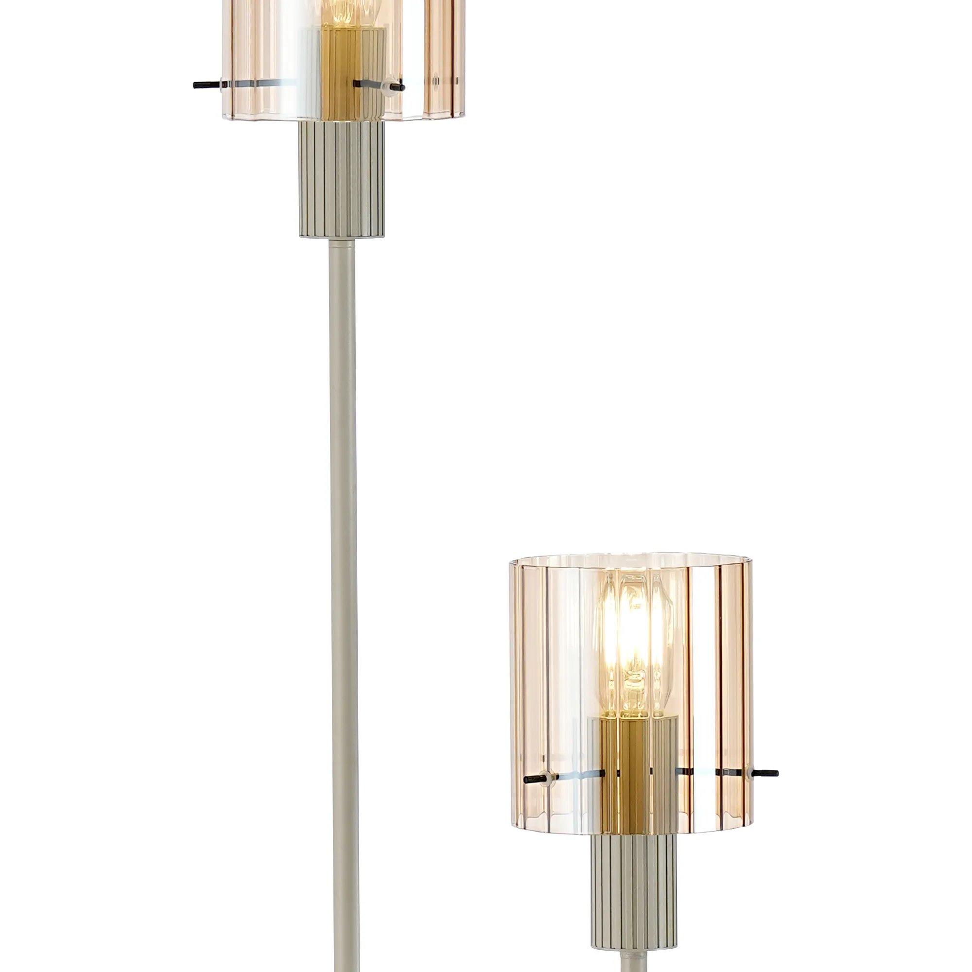 OTHER Castlegar Stepped Floor Lamp, 2 Light E27, Beige Stone/Amber Wide Line Glass